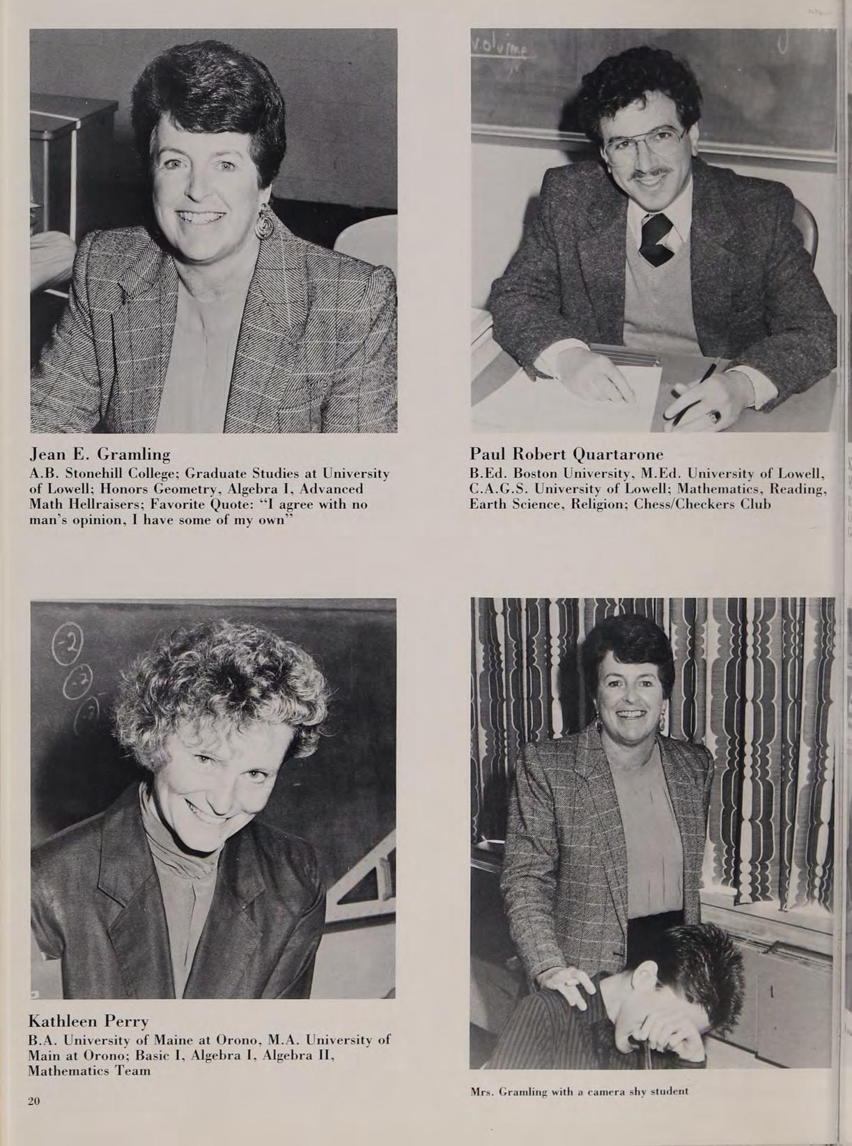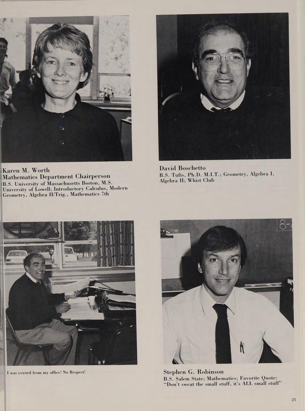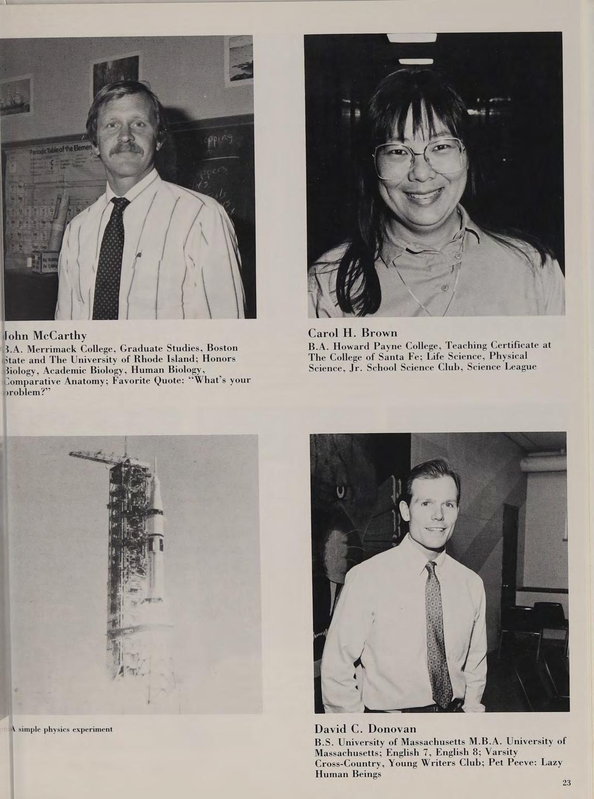 3.4. Merrimack College, Graduate Studies, Boston State and The University of Rhode Island; Honors Biology, Academic Biology, Human Biology, Comparative Anatomy; Favorite Quote: ““What’s your problem?”