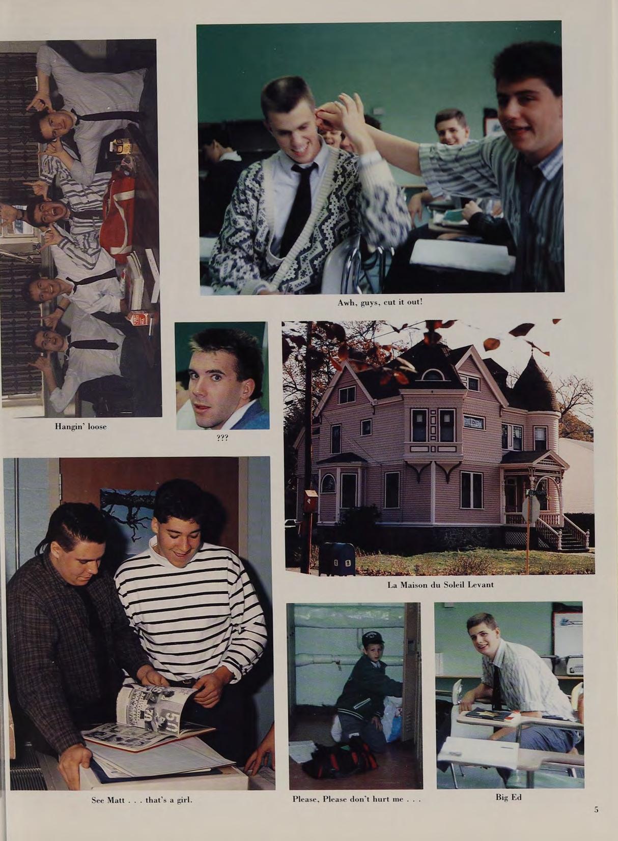 emembers good times with: JW, BD, DL, MBD, EC, JS, JS, JC, RC, NR, TP, SP, HP, NG, Forays into Boston vith KM — “Mike, we’re going to die!”’, “I hear ya, guy,” *r. Flynn’s Judeo-Christian History Class, Mr. Sulsivan’s Algebra I, Fr. H’s Heater — “No, that was SUPPOSED to happen,”Noe Marcos Cos, French according ‘o Brian Murphy, Missions with Holmes (Pushing the 5treet Machine down Rte. 28!), Thanks to MN and SRP or being there, and of course to MAW for being a true oriend, Love You. Thanks also to Mom & Dad for puting up with me (About that car on your front lawn. Bnd to Chris, even though you started it first.