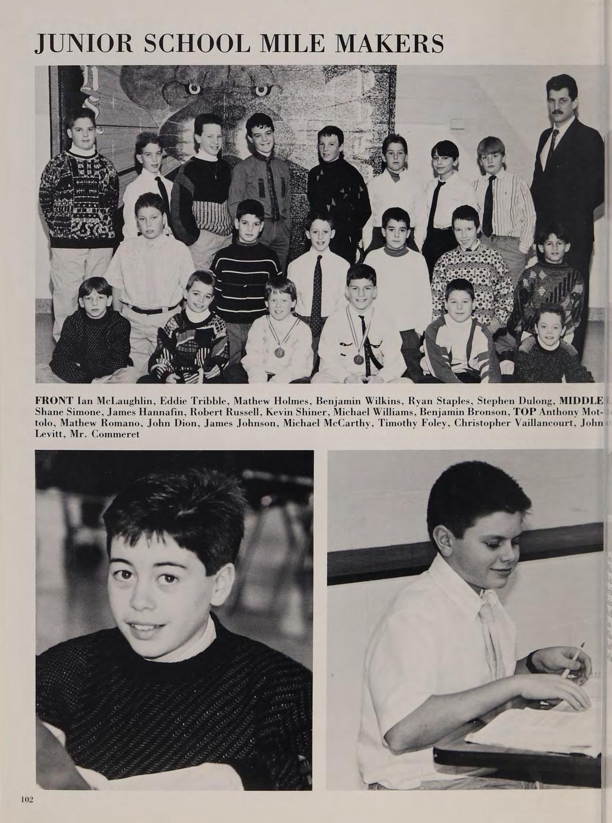 Me Remembers — Good times with Johnny C., J-Bird, Bill, SE, Chougar, Barrel, Bishop, KM, Rallo, Harroids, MP, RM, RS. Waterville Ski Trip, Mrs. Tilley’s class in general, Maine Hockey Trip, Div. II State Champs 88-89, Hat Trick against Bishop Fenwick, St. Mary’s Game 2312 3 touchdowns, Marian Thanksgiving scored first touchdown, New York trip to Princeton/Army, A.S.P.B. with Cougar, Pete’s house at 3 a.m., Favorite Groups — Vanilla Ice, Hammer, N.W.A., Eazy-E, Public Enemy, Thanks to all my teachers, Mr. Moran, and Dr. Gifune. Special thanks to Mr. McAdams and Mom and Dad! I Love You.