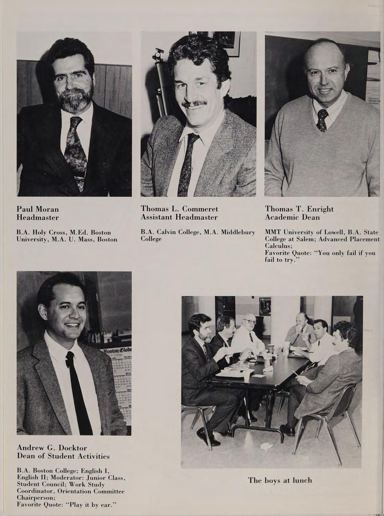 Thomas T. Enright Headmaster Assistant Headmaster Academic Dean