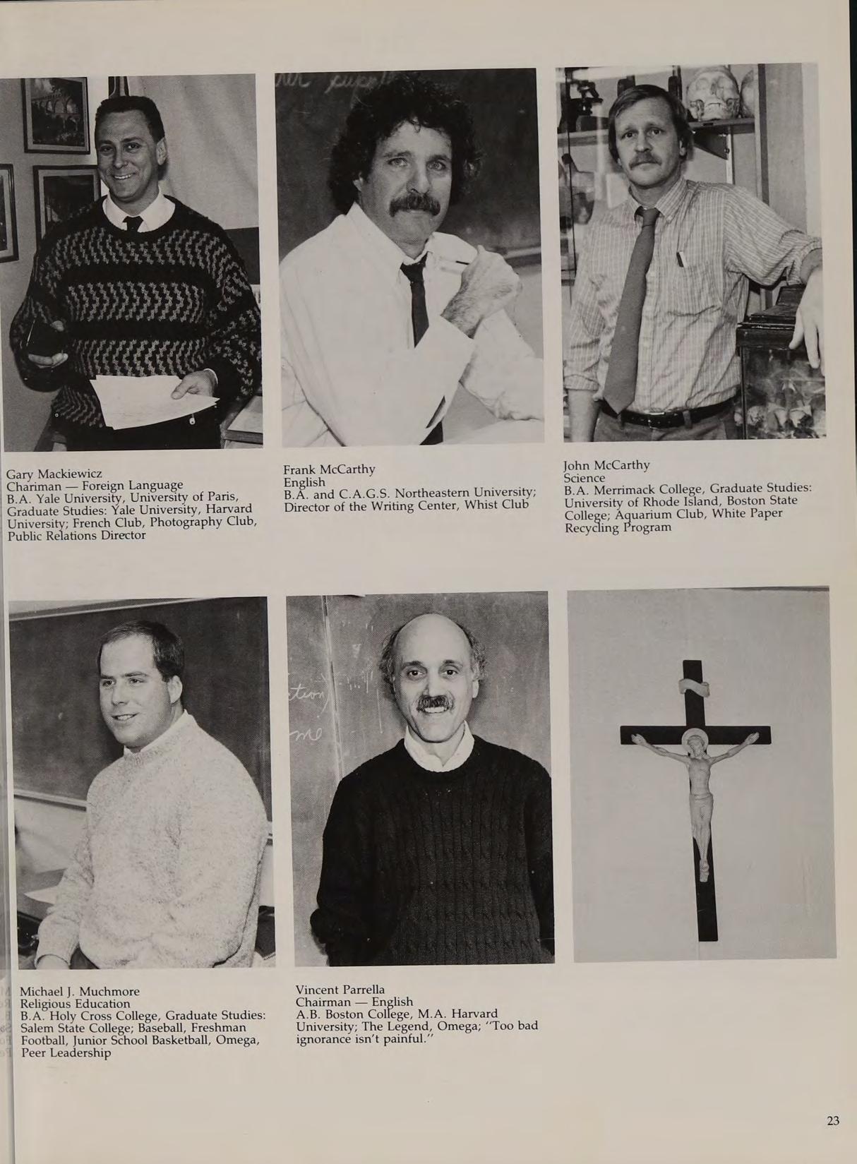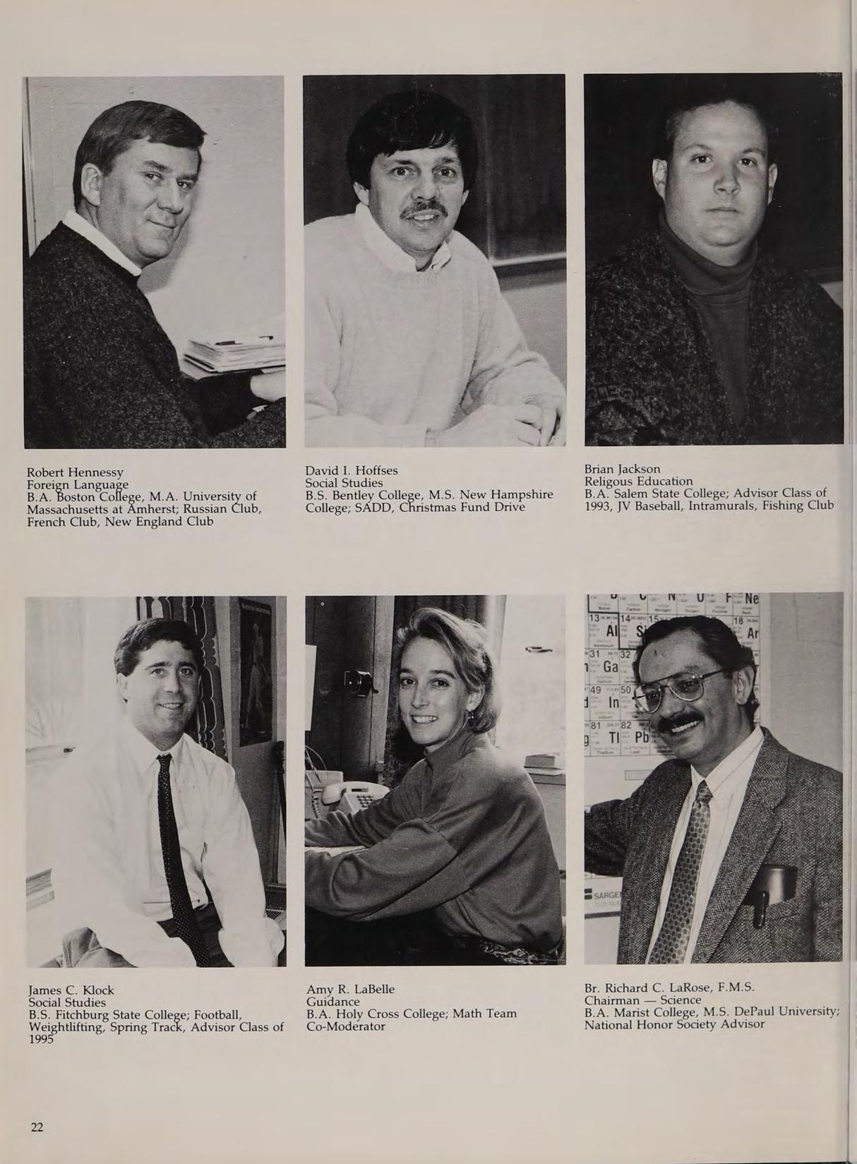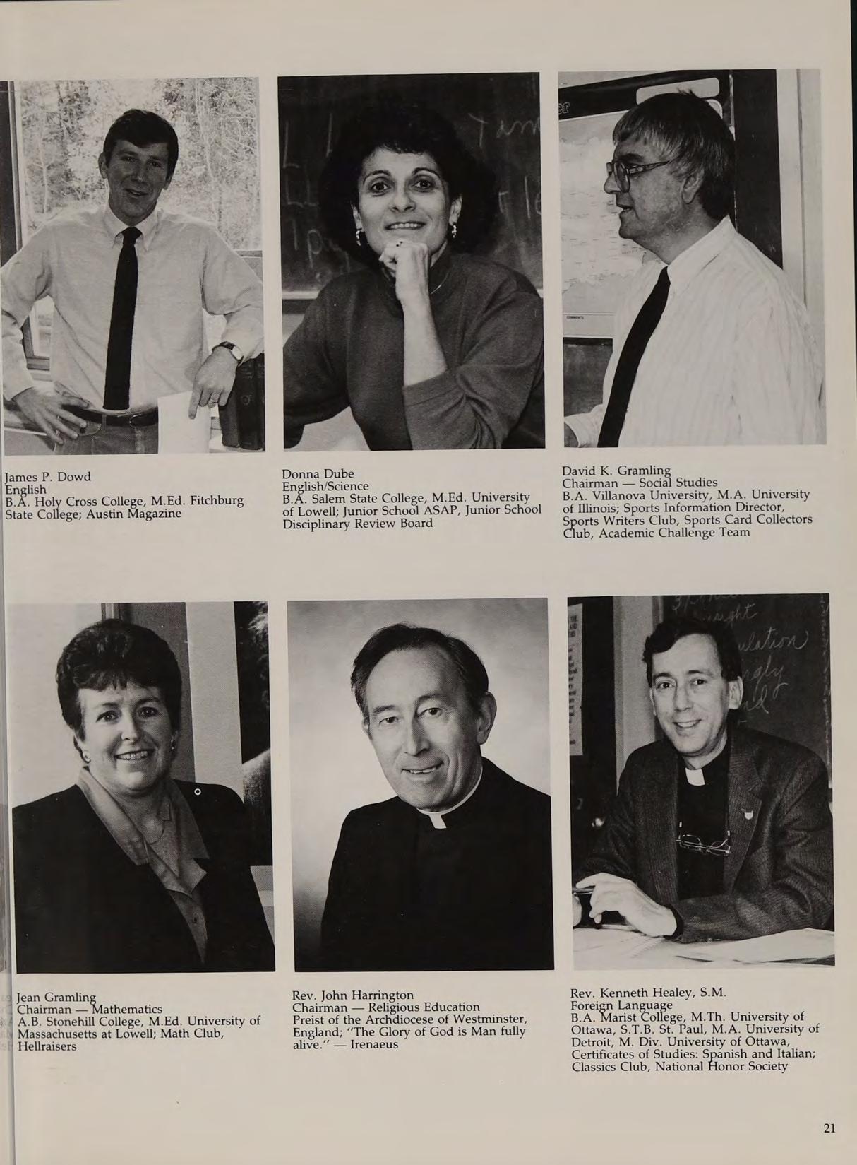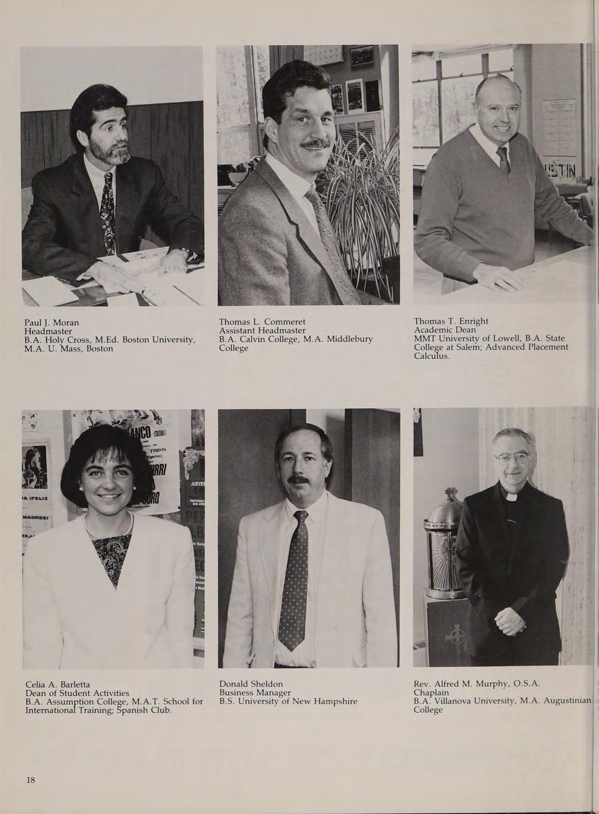 A.B. St. Michael’s College, M.A. Salem State College Graduate School: Student Council, College; Ski Team. Advisor Class of 1992.