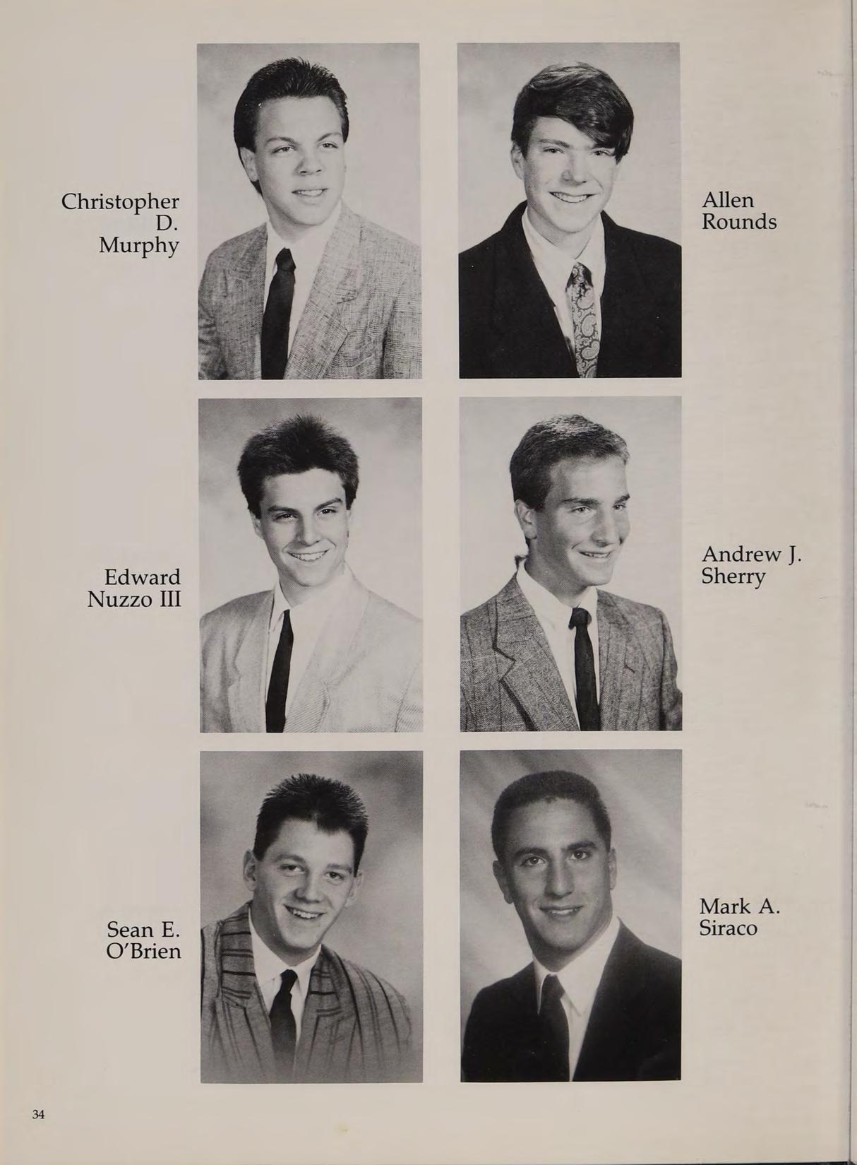 FRONT ROW: Allen Rounds, Jay Gill, Tom Hogan, Josh Teixeira, Marc Griffin, Pat Flaherty, John pee Mike Erickson. BACK ROW: Devang d, Shah, Tim McGilvreay, Tim Regan, Rich Commerford, Pete Crupi, Mark Driscoll, Joe Torra, Dan Fitzgera ason Strunk, Jon O’Brien, Eric Seuss, Chuck Sillari, Brian Sensale, Mr. Hennessy. } i