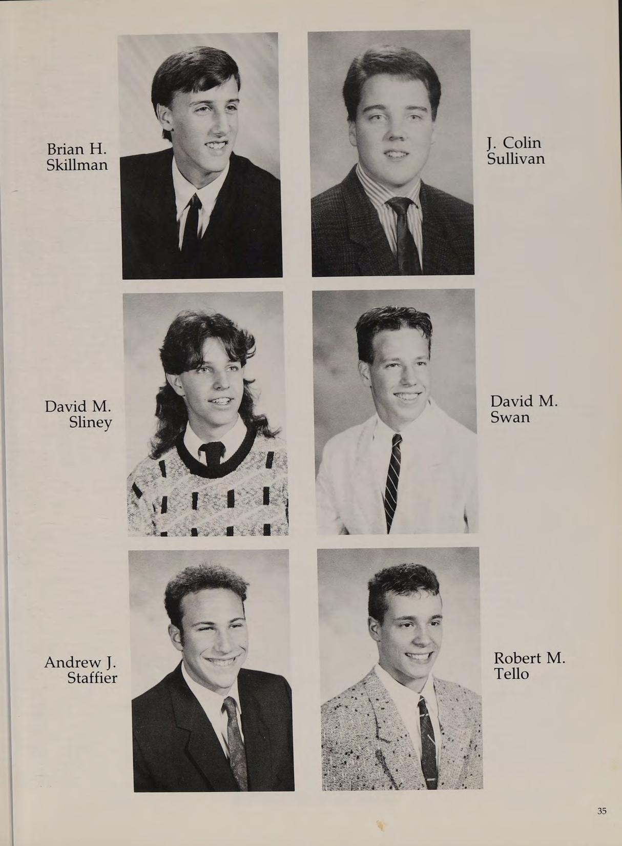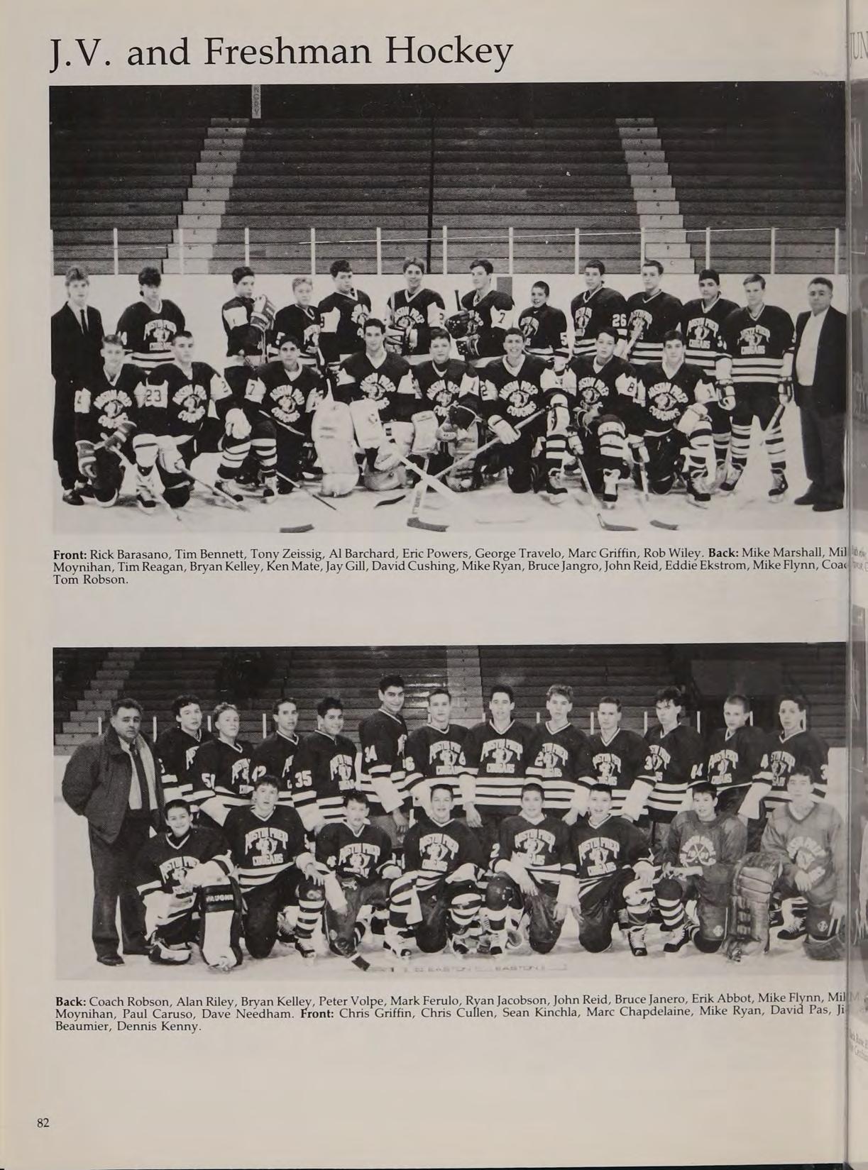 Front: Rick Barasano, Tim Bennett, Tony Zeissig, Al Barchard, Eric Powers, George Travelo, Marc Griffin, Rob Wiley. Back: Mike Marshall, Mil) %y Moynihan, Tim Reagan, Bryan Kelley, Ken Mate, Jay Gill, David Cushing, Mike Ryan, Bruce Jangro, John Reid, Eddie Ekstrom, Mike Flynn, Coac Tom Robson.