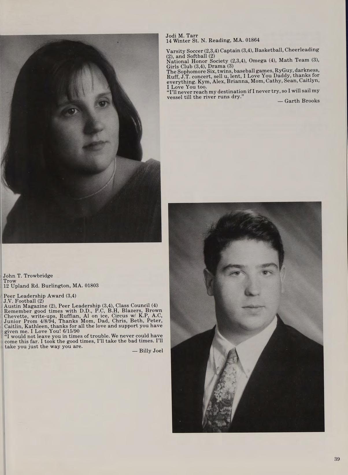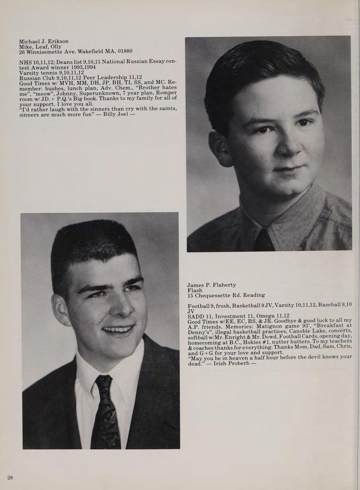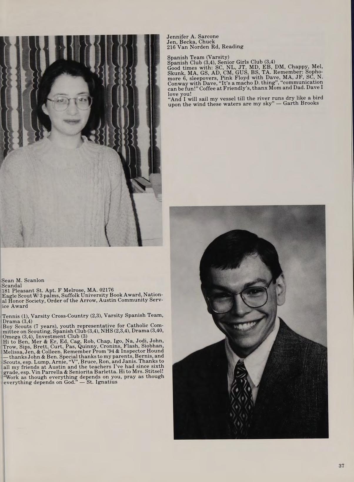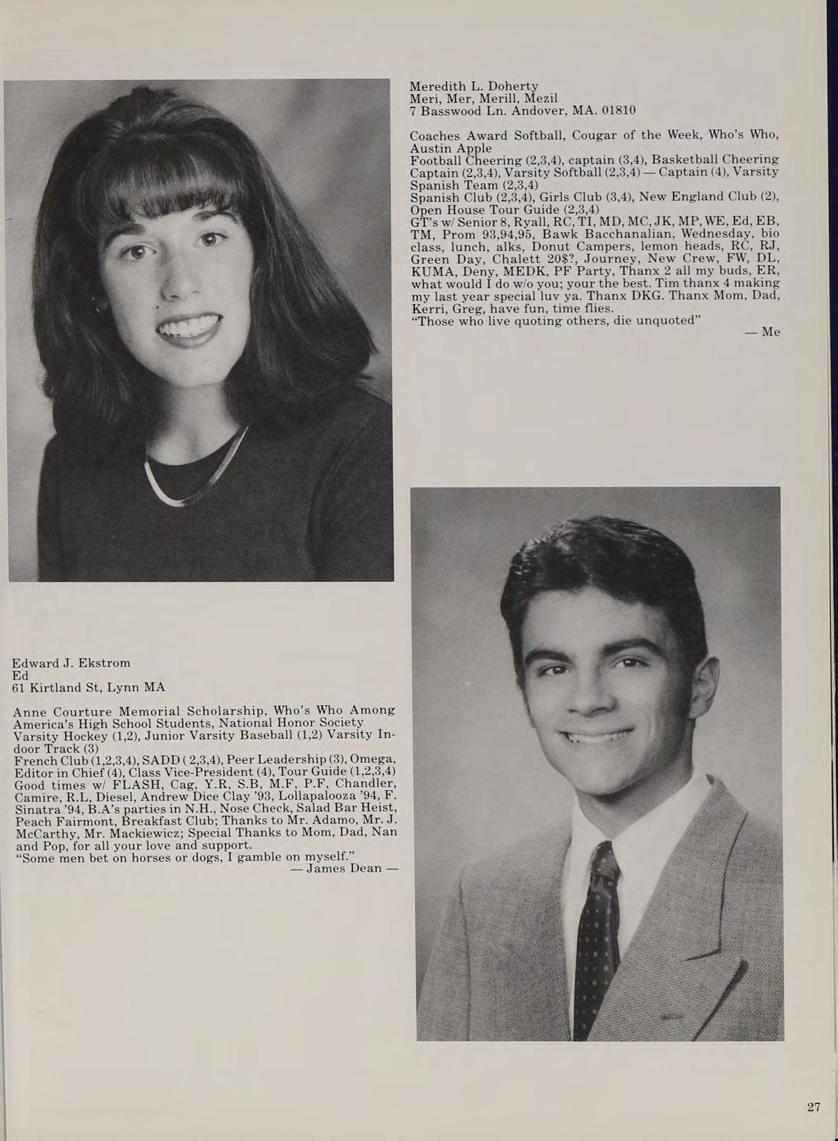 Good Times with: MC, TI, MK, MD, TM, GD, KO, BT, JB, fil, HE, MP, NL, TC, RJ, MF, SD, SS and all my buds. Bickford’s Runs, Lemonheads, Green Day Riot, Pulled Over w/AG, Dazed and Confused/Slater, Golfball Stealth Mission w/TM & MK, Blazers Games, KO’s Birthday, BT’s Room = Eye of The Storm + Strob Light/Woah!, Sully’s Barn, Prom 94,95. A Special Thanks to Mr. Enright, Mr. Miller, Mr. Parrella, Ms. Barletta, and all my teachers. I would also like to especially thank my grandparents for always being there and giving me all the support I needed, I would have been lost without you, I Love You!!!