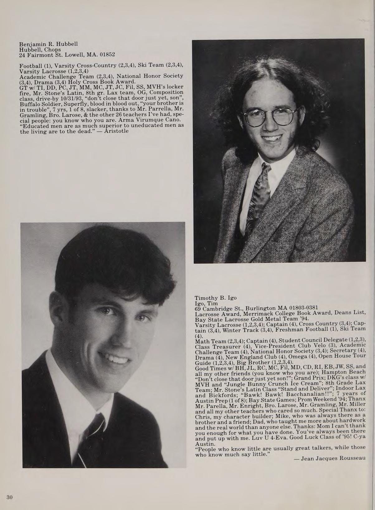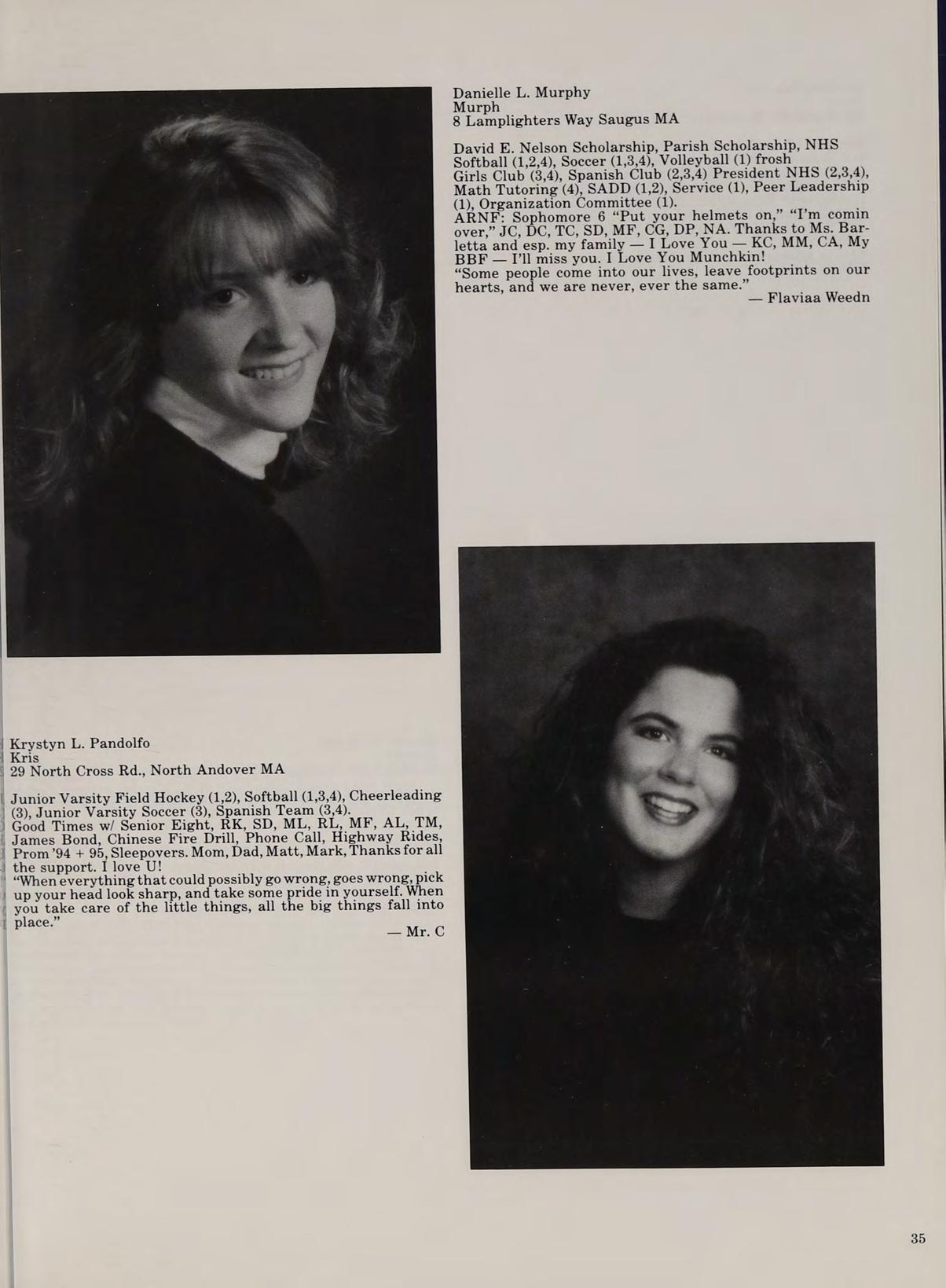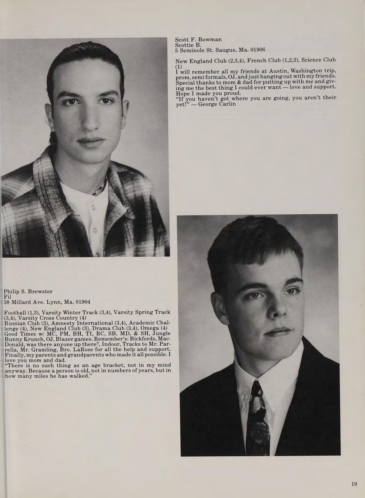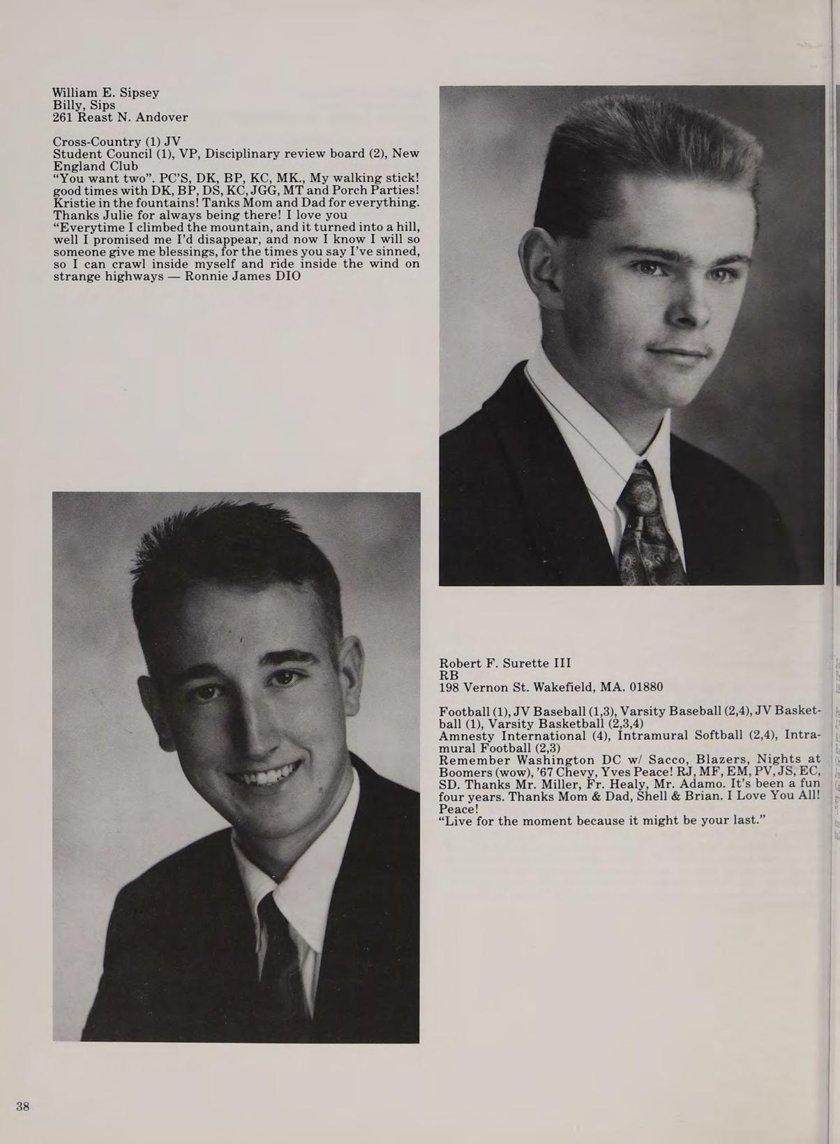 Good Times with: MC, TI, MK, MD, TM, GD, KO, BT, JB, fil, HE, MP, NL, TC, RJ, MF, SD, SS and all my buds. Bickford’s Runs, Lemonheads, Green Day Riot, Pulled Over w/AG, Dazed and Confused/Slater, Golfball Stealth Mission w/TM & MK, Blazers Games, KO’s Birthday, BT’s Room = Eye of The Storm + Strob Light/Woah!, Sully’s Barn, Prom 94,95. A Special Thanks to Mr. Enright, Mr. Miller, Mr. Parrella, Ms. Barletta, and all my teachers. I would also like to especially thank my grandparents for always being there and giving me all the support I needed, I would have been lost without you, I Love You!!!