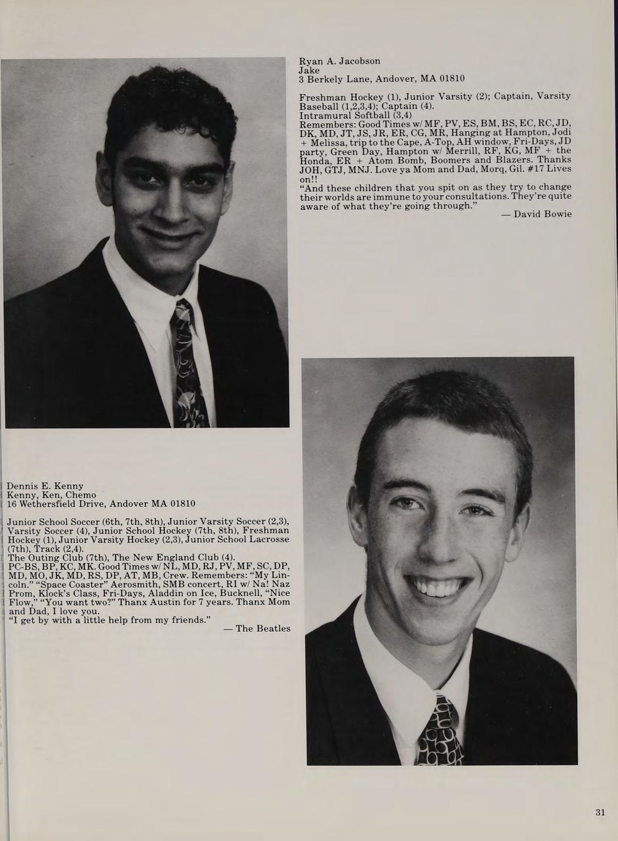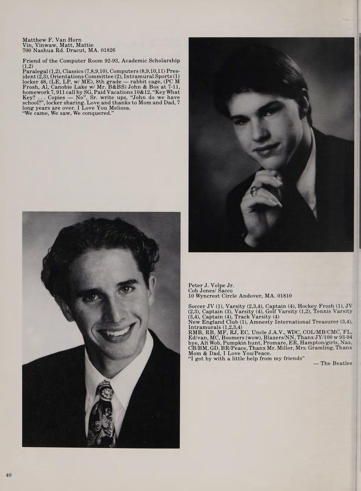 Who’s Who Among American High School Students. Frosh Football, Varsity Football 2, Varsity Golf Team 1,2, Indoor Lacrosse 3,4, Varsity Ski Team 1,2, Varsity Spanish Team 2,3,4.