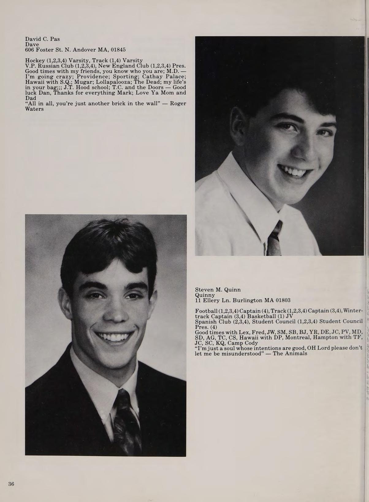 Hockey 4, Track 3,4, Varsity Football 3,4. Spanish Club 3,4, Chess Club 3,4, Amnesty International 3, S.A.D.D. 3,4.