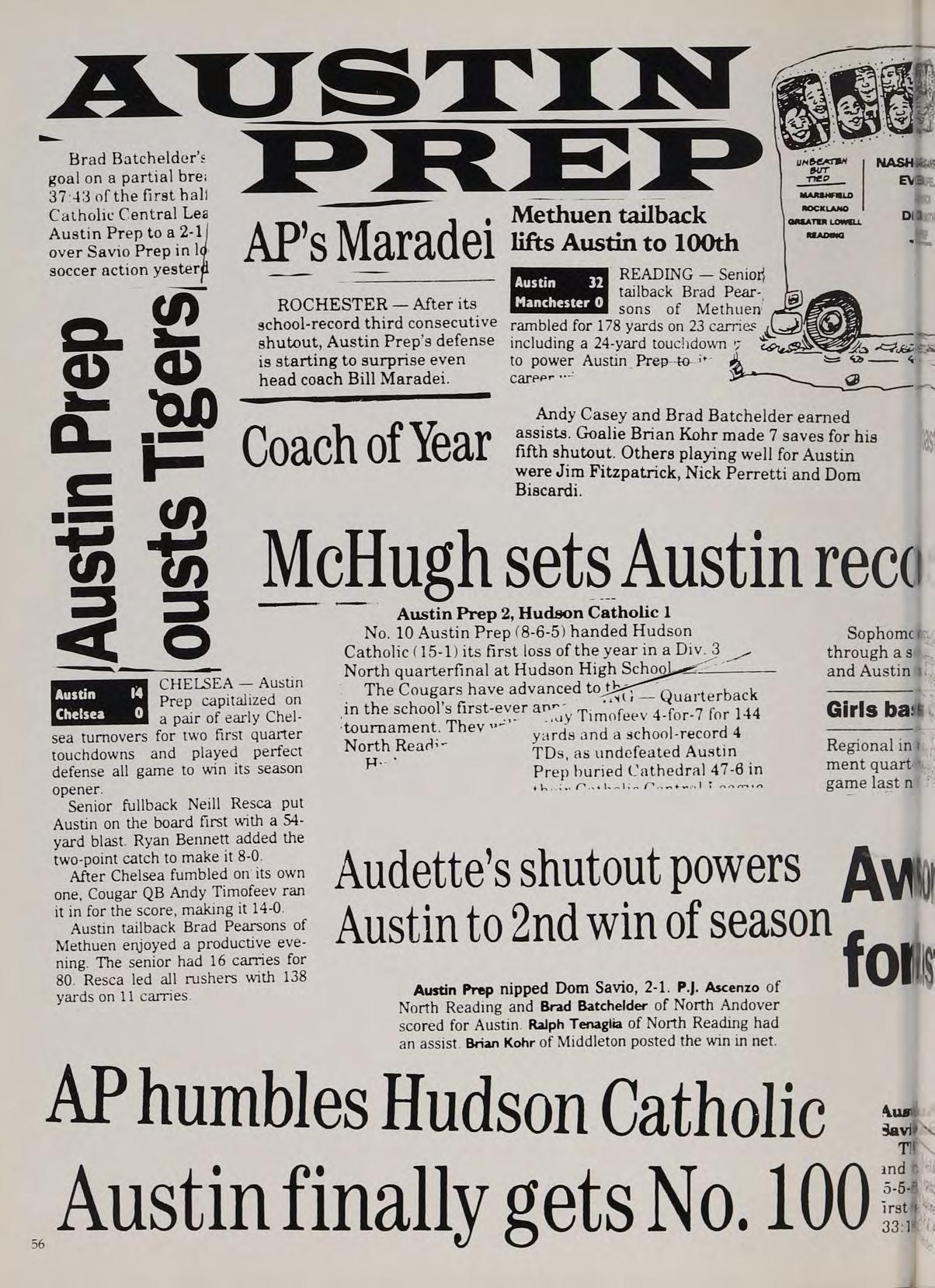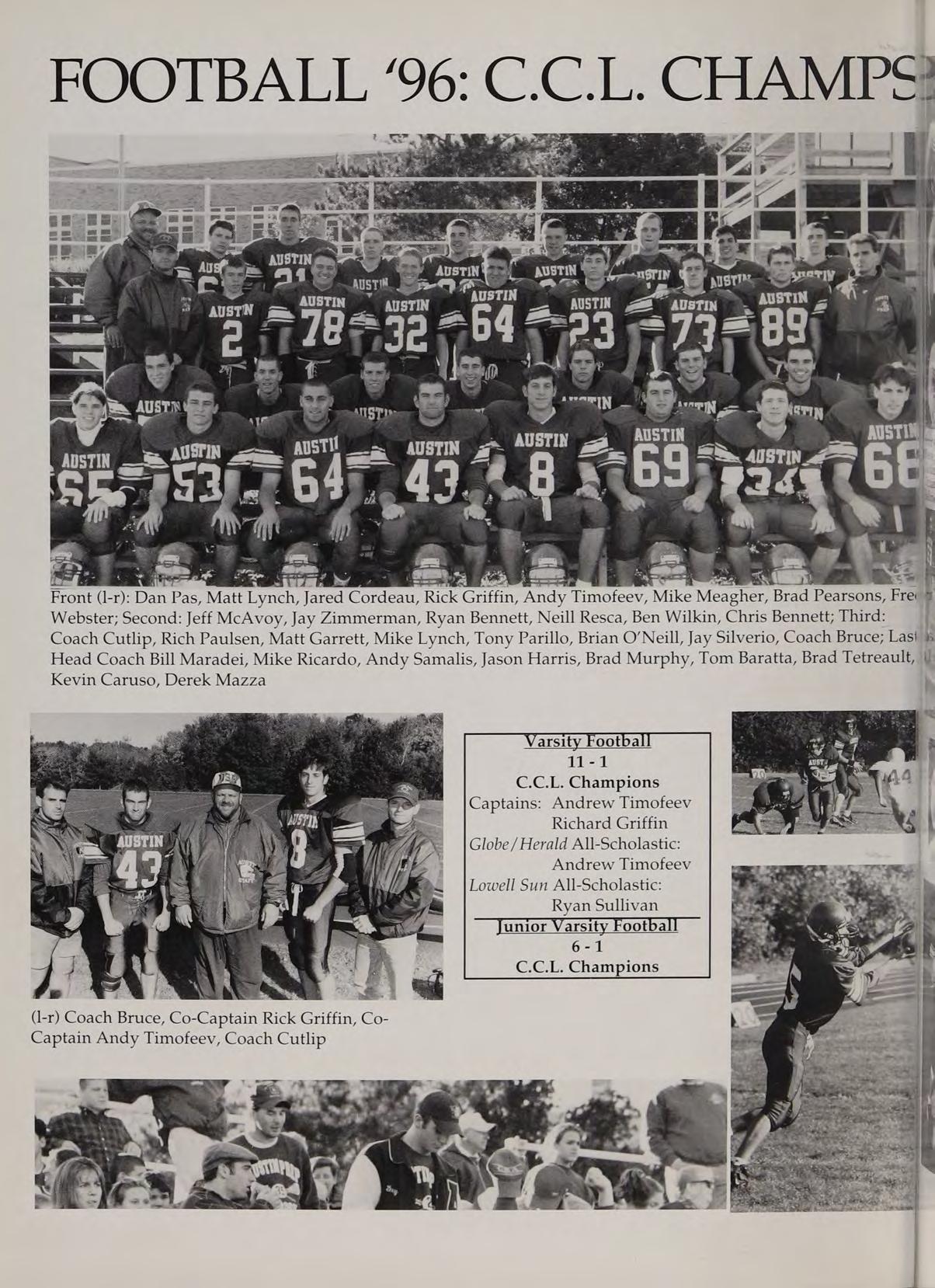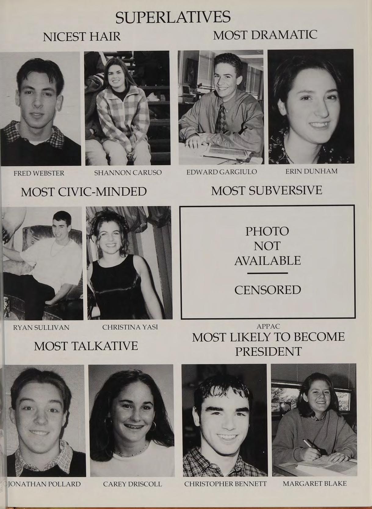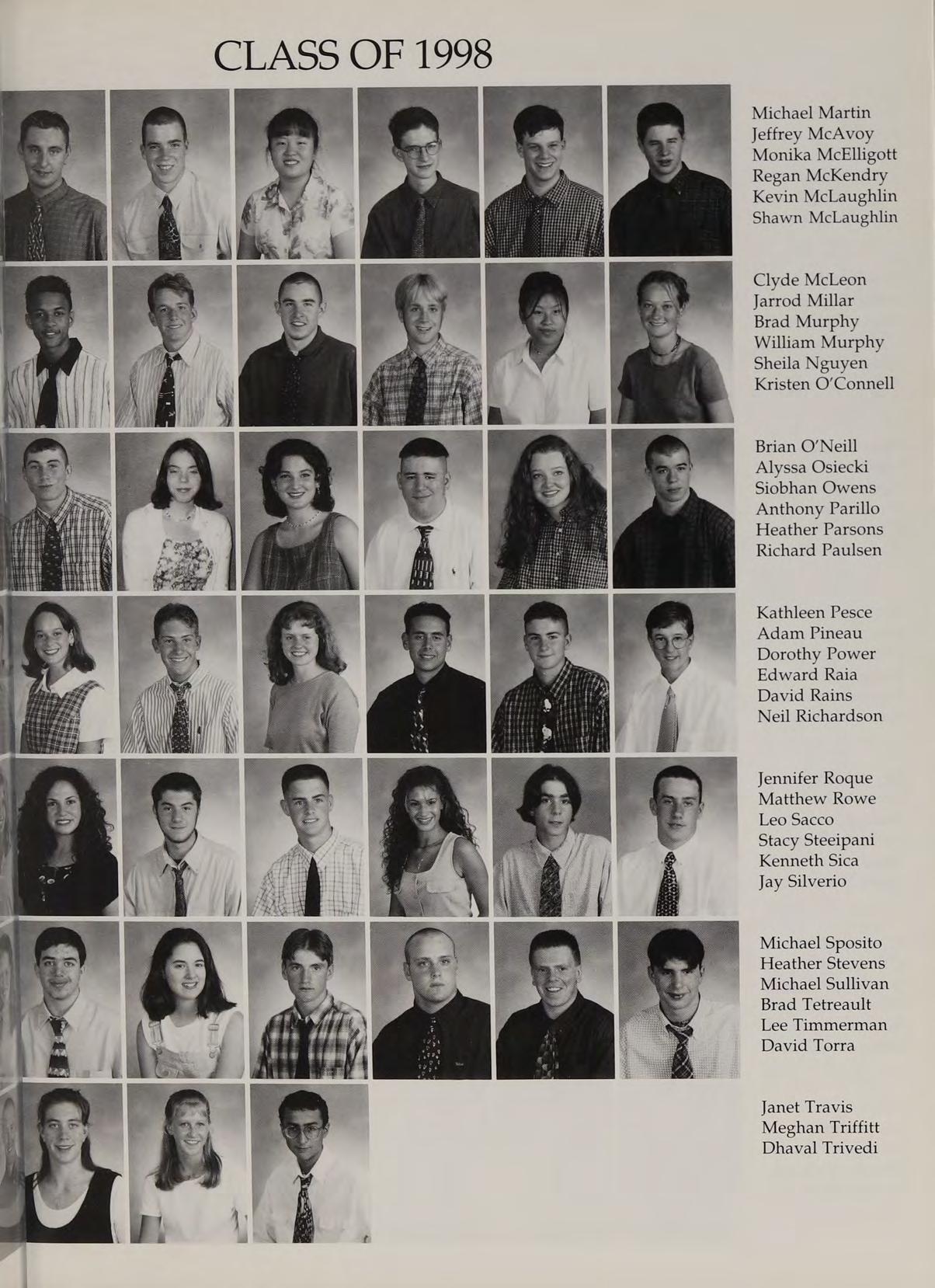 Memories: Good times w/ R.T., J.G., B.B., D.T., A.C. P.A., R.G. F.W., MM., C.B., M.D., D.M., M.L., N.N., K.S., C.D., K.C., J.G., J.T., and all the rest. Best friends w/ Kristen Cavanaugh. Catamounts. Good times w/ Woburn boys: E.S., C.S. and the rest; B- Cruises, Friday night ritual w/ J.G. & R.T.. Sevs cottage, B.B.’s cottage w/ R.T., J.G., D.M., B.B., CH & BB w/Wob boyz. L.L. with D.C., K.D., K.H., T.W. Phat Dog. G.A. house, Pukin in P-lot w/ N.N. Hampton. Prom ‘96, 97. Ice cold Coca-Cola. Power rangers, packin fatty’s. Cabin 13. Mama, I’m comin home. Sullystories. Griff Get the limes. Cirigs House 95. Shutup Wuss! 9-7-96. N.N. we're finally together. Thanx Coach Maradei, Cutlip & Staff. Mom, Dad and 5 wonderful sisters, Thanks & I Love You. S.U.S. N.N.