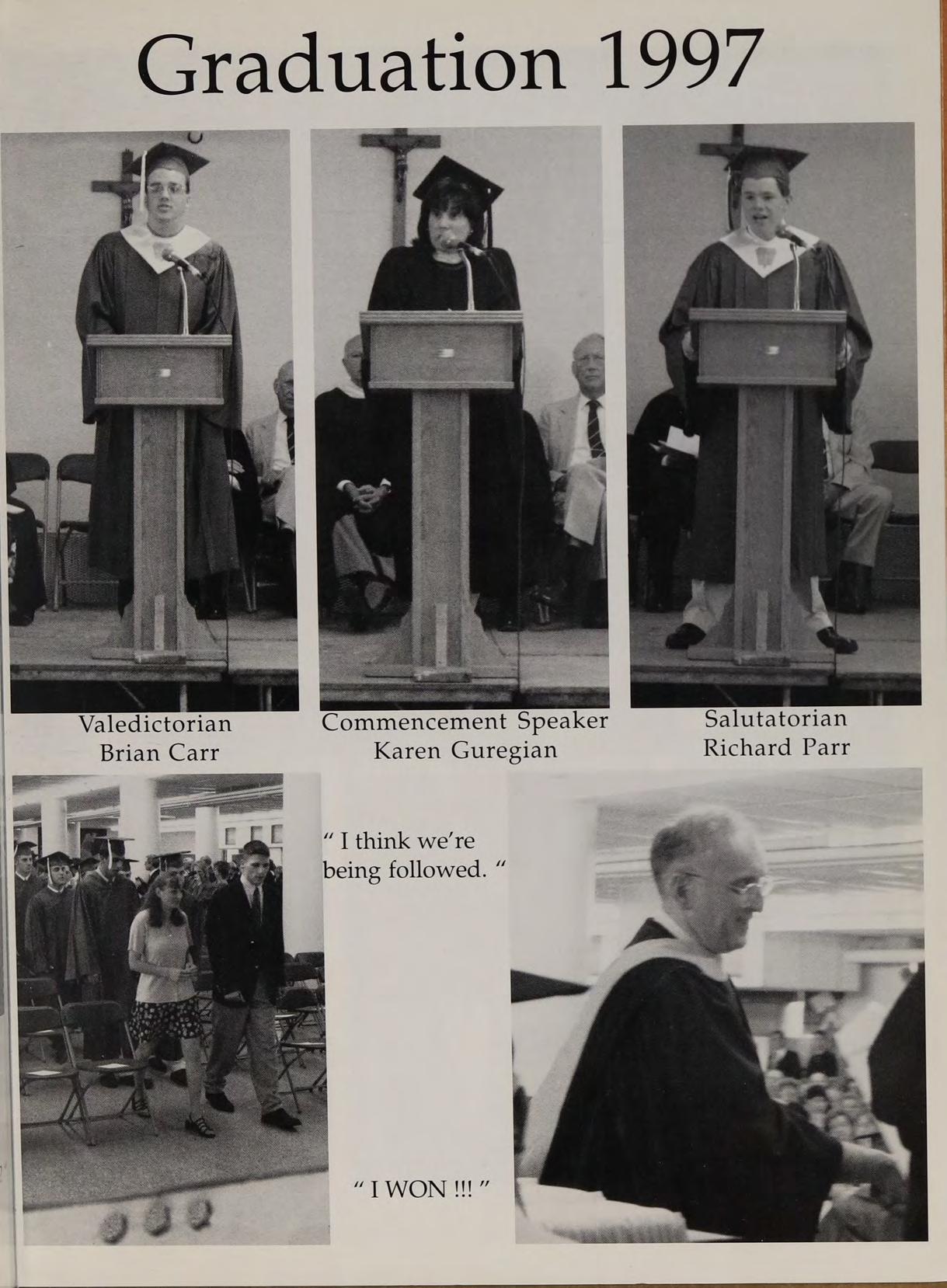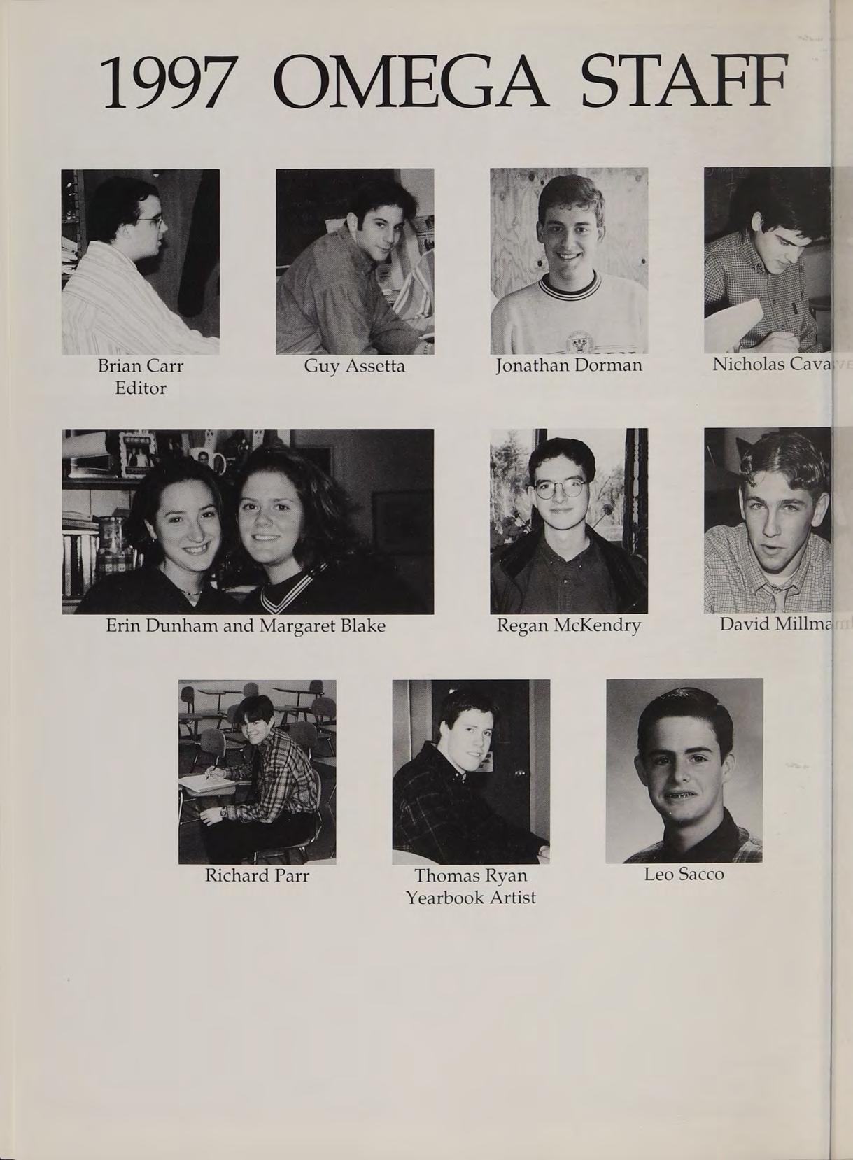 Memories: Sr. yr. w/ Jen, Jess, Carey, Kathy & Nina, D.C. ‘94, semi w/ MLL., rooming w/ S.D., Jen’s obsessions, BF w/ R.B., “I started w/ one”, “take it to the grave” - C.Y., snowbanks, water on the bus - S.D., E.B.H., E.L.H., H.S.C., Wheaton, SAT’s w/ S.S., Shannon’s house, car dances, Europe ‘96, hanging w/ Jen, Guy’s house, secret hiding w/ K.S., Dan’s advice, prom 96, ‘97, Joe’s garage, Jen skiing, entering Canada, MLL. - I won, girls night out, D.M.B. w/ M.M., “How’d we get home?” Thanks to all my teachers, Mom, Dad, & Neah for all your support, Tim BS for making such big shoes to fill, Matt - my character builder, Erin & Pat - enjoy it, time flies. Good luck Class of ‘97! I’ll miss you.