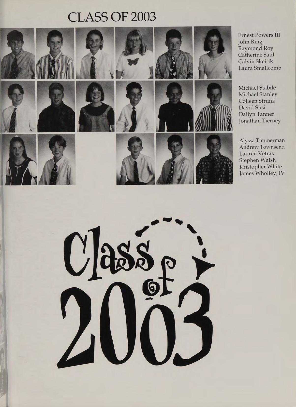 Memories: Ill never forget all that you did for me, Mom and Dad. Thank You. Good thing you always kept me in line, Vanessa. Thanks for everything Lisa, Renee, and Anthony. I'll never forget the concerts with Mary and Michelle. I can’t believe I put up with you for 5 years, Chris. Had fun in Math with M.B., E.D., and J.G. Freeze it! I loved the backseat with Dan ... Sorry Alyssa! Always remember Chris, Mary, Michelle, Mike, Kath, Dan, Dalyssa, Trick, the Smurfs, J.F.K., Harvard’s Shannon, your beautiful stockings, and Petey. I’m really a Terridactyl! That’s for kissing my brother ... and that’s for making me love you.