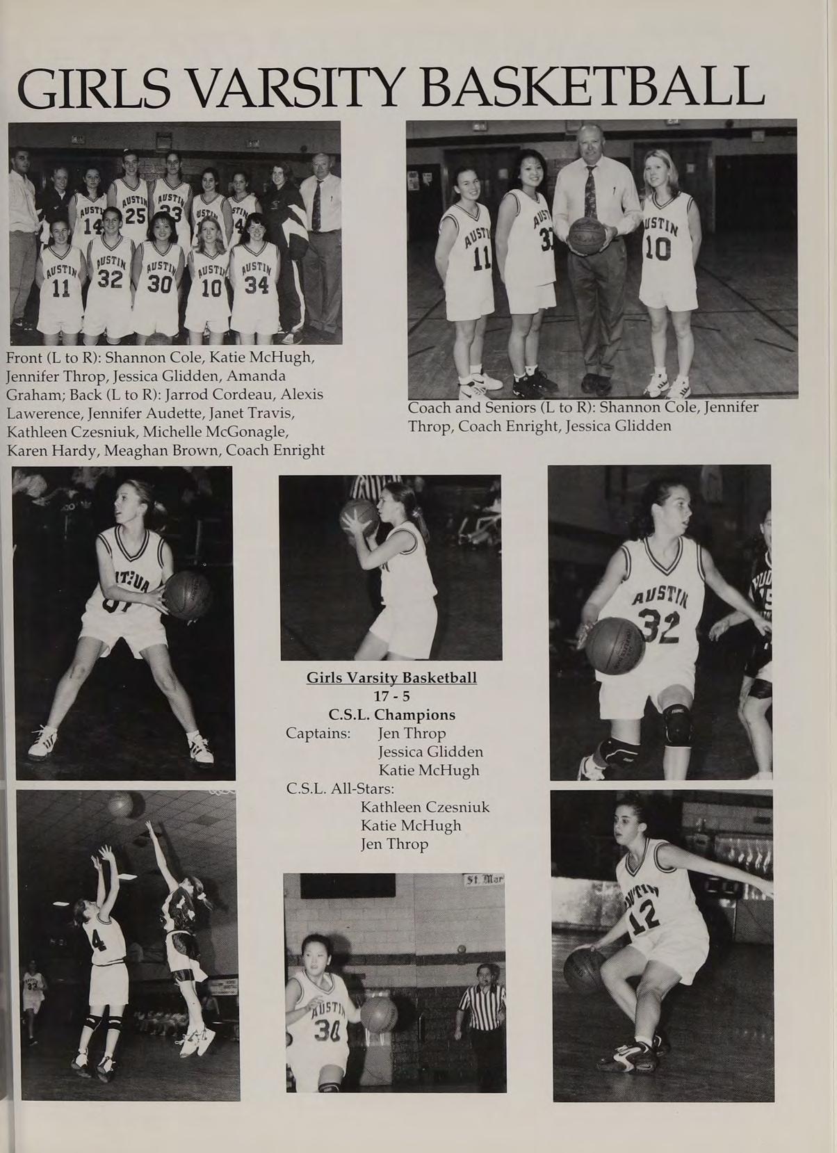 Awards and Activities: Soccer (1, 2, 3, 4), Basketball (1, 2, 3, 4), Softball (1, 2, 3, 4), Academic Challenge (1, 2, 3, 4), NHS, Big Sister (2, 3, 4), Orientation Committee (2, 3, 4), S.A.D.D. (1), French Club (4), Irish Culture Club (4), Cougar of the Week