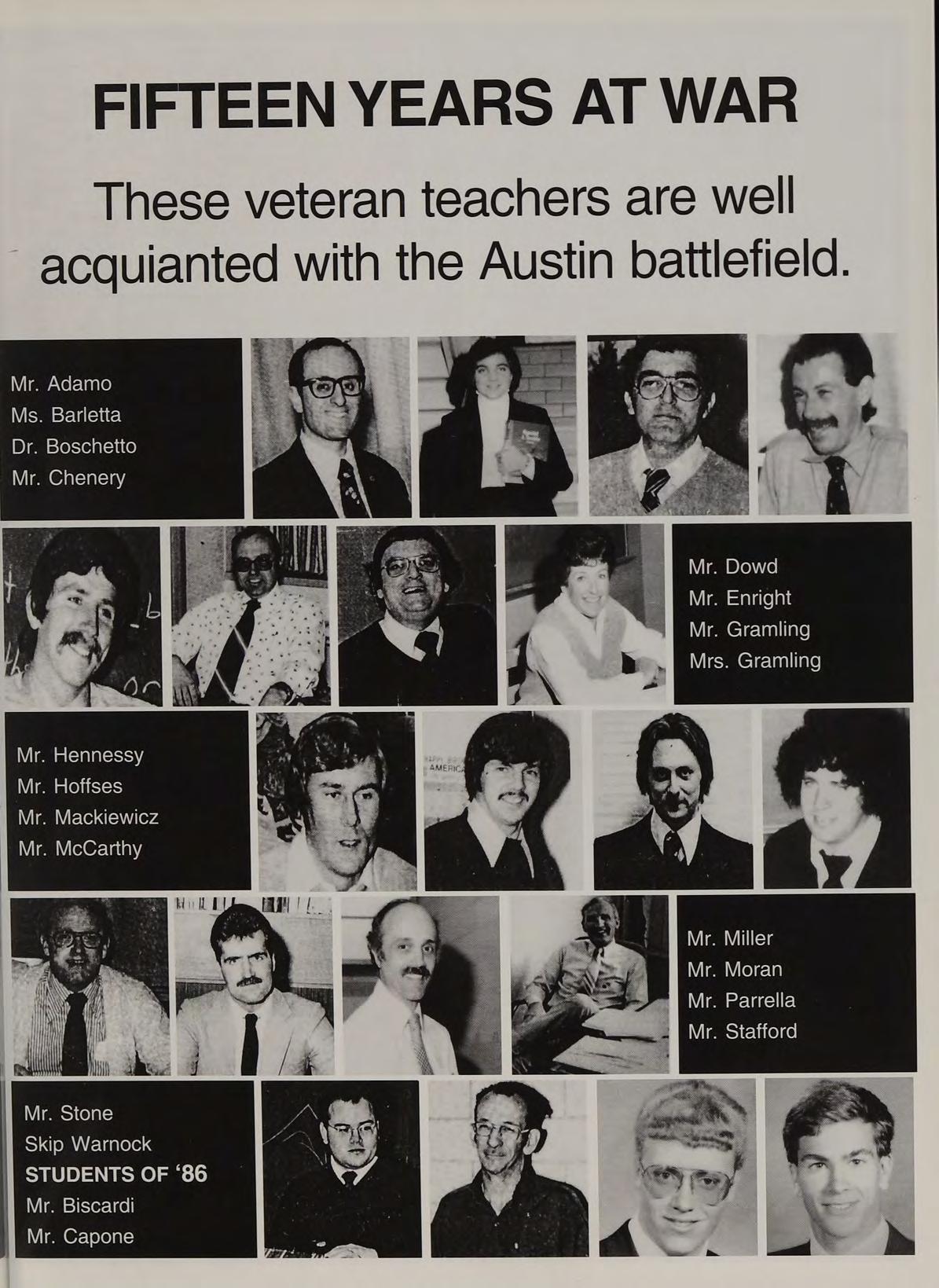 veteran teachers are well acquianted with the Austin battlefield.