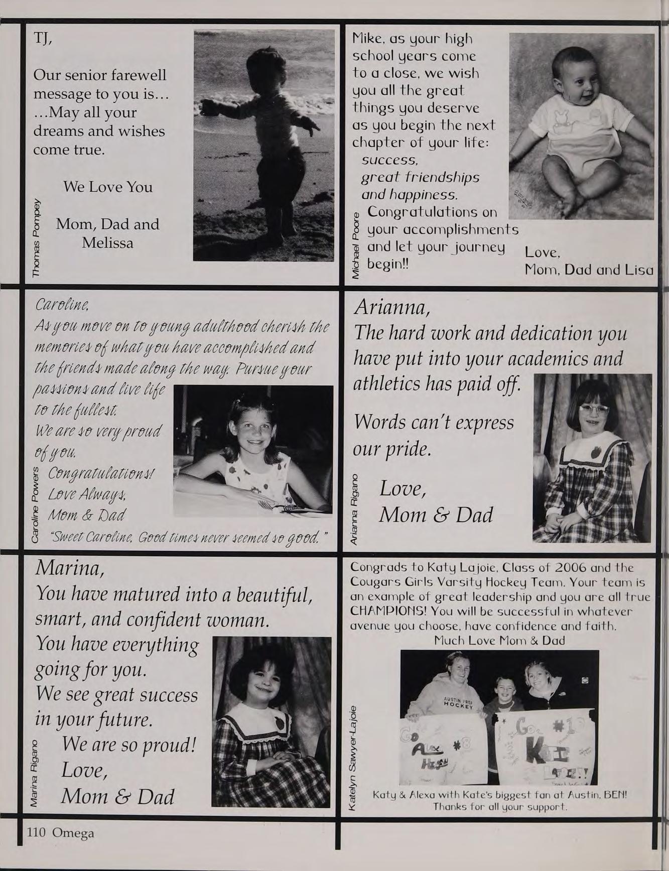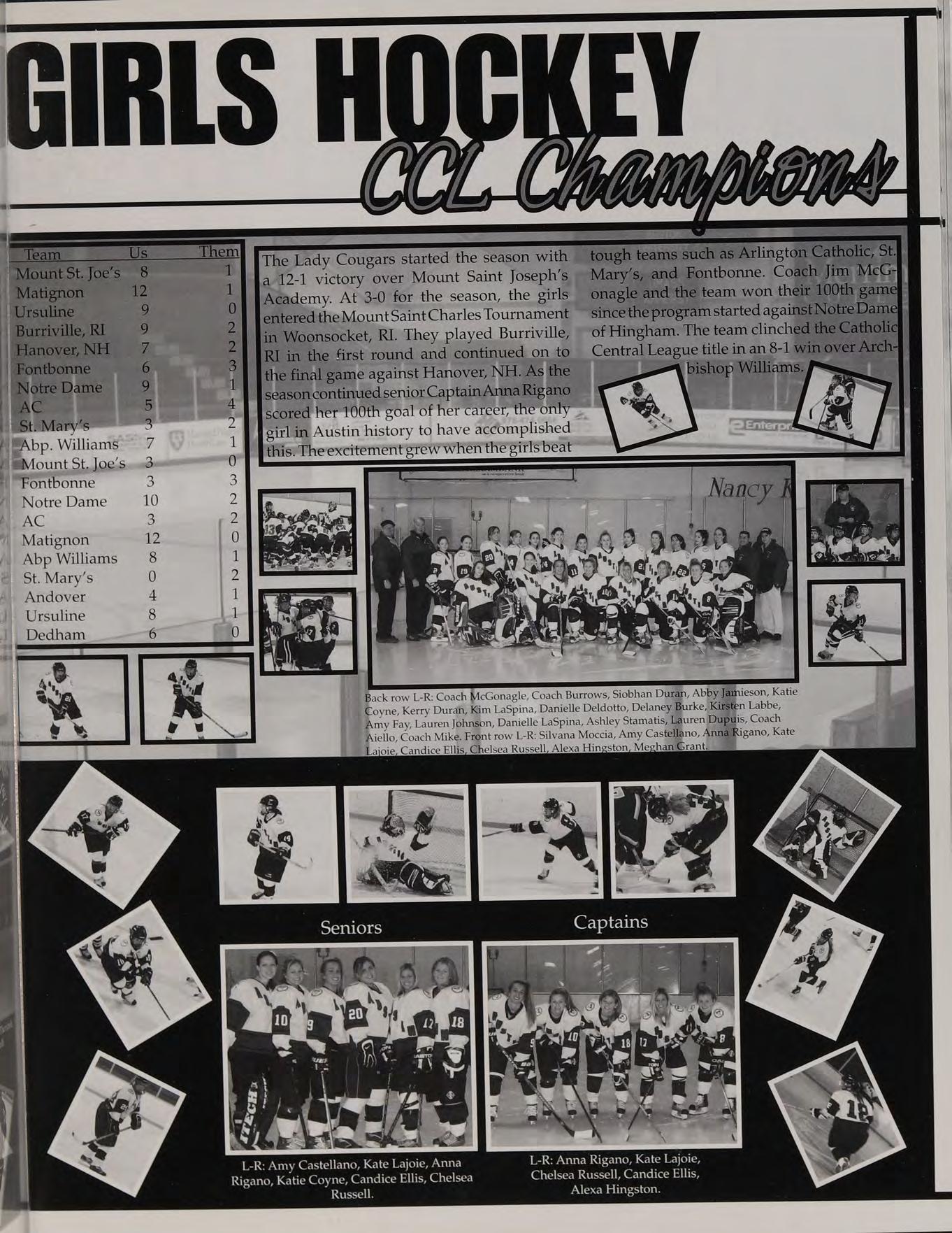Congrads to Katy Lajoie, Class of 2006 and the Cougars Girls Varsity Hockey Team. Your teamis an example of great leadership and you are all true CHAMPIONS! You will be successful in whatever avenue you choose, have confidence and faith. Much Love Mom & Dad
