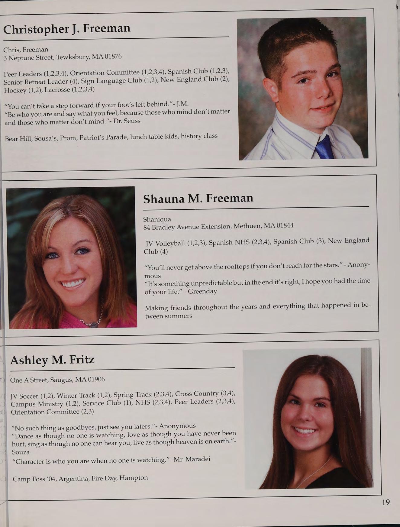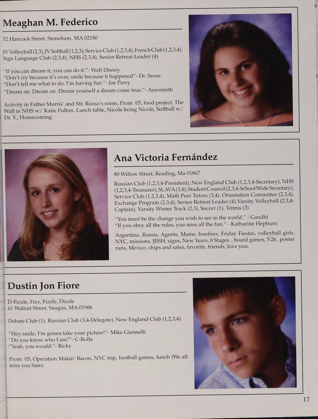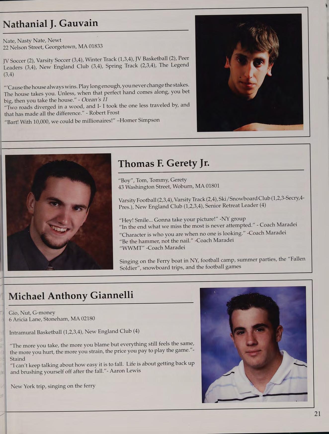 Alison Lynn Audette * Christopher John Praful Bhakta * Emily Kathleen Biberger » sica Lee Brouillard * Tania Buonopane * Erik D. Campos * Amy Elena Castellano Costa * Kaitlyn Elizabeth Coyne ¢ Jesse R. D'Agostino * Ann Elizabeth Dechant JusSteven Michael DiTullio Daralynn F. DouJames Dunn ¢ Ashley M. Eaves * Candice Katherina Falcos * Robert W. Farah ¢ Danierine Margaret Farrell Meaghan M. FedFiore « Kathryn Donnallan Flynn * Joseph Christopher James Freeman ¢ Shauna Marie Fulton ¢ Kerry Anne Galvin ¢ Jonna R. as Francis Gerety * Michael A. Giannelli * Gosselin * Benjamin A. Graham ¢ Gina Ma¢ Evan Mark Guarino * Zachary Coady Elizabeth Hamill Nicholas Michael Hartt ¢ mieson * Marjorie Katsikis Thomas Joseph Lynne Kohler * Katelyn P. Lajoie * Bryan seph Lehmann ¢ Molly E. Maguire * ChristoDonough * Thomas Michael McGrath * Mi¢ Katharine R. McVay * Charles Harry Medeiros ¢ Derrick Tyler Morrison * Kate Lynn Moylan ¢ Lia Marie Nicholl Kevin R. O'Connell * Matthew William O’Leary ¢ Katherine E. O’Neil * Daniel Timothy Owen » Nadia A. Palladino Evan Adams Patten ¢ Anthony R. Pelusi * Catherine Theresa Peterson * Joseph Vincent Pfeifer Edward Riley Pisari Thomas Joseph Pompey * Michael William Poore * Caroline Elizabeth Powers Thomas Edward Prioli Arianna Marie Rigano * Marina Patrice Rigano * Christopher Charles Rollins Chelsea Rae Russell Landon David Shadoff Helen Leone Simkins * David Thomas Smyth * Greg E. Sousa * Joseph Patrick Sullivan * Theresa Bridget Sullivan * Christine Rose Tafone * Darius Richard Theriault Jaclyn Jennifer Todisco « Angela Maria Tucker ¢ Philip Luis Viana * Ashley Nicole West ¢ Caitlin Elizabeth White « Jillian Nicole Wilkie Matthew R. Wilkie Grant Thomas Wilson ¢ Katherine Nell Alfieri Mark Anzalone ¢ Alison Lynn Audette * Christopher John Barbas * David Edward Batchelor * Kunal Praful Bhakta * Emily Kathleen Biberger