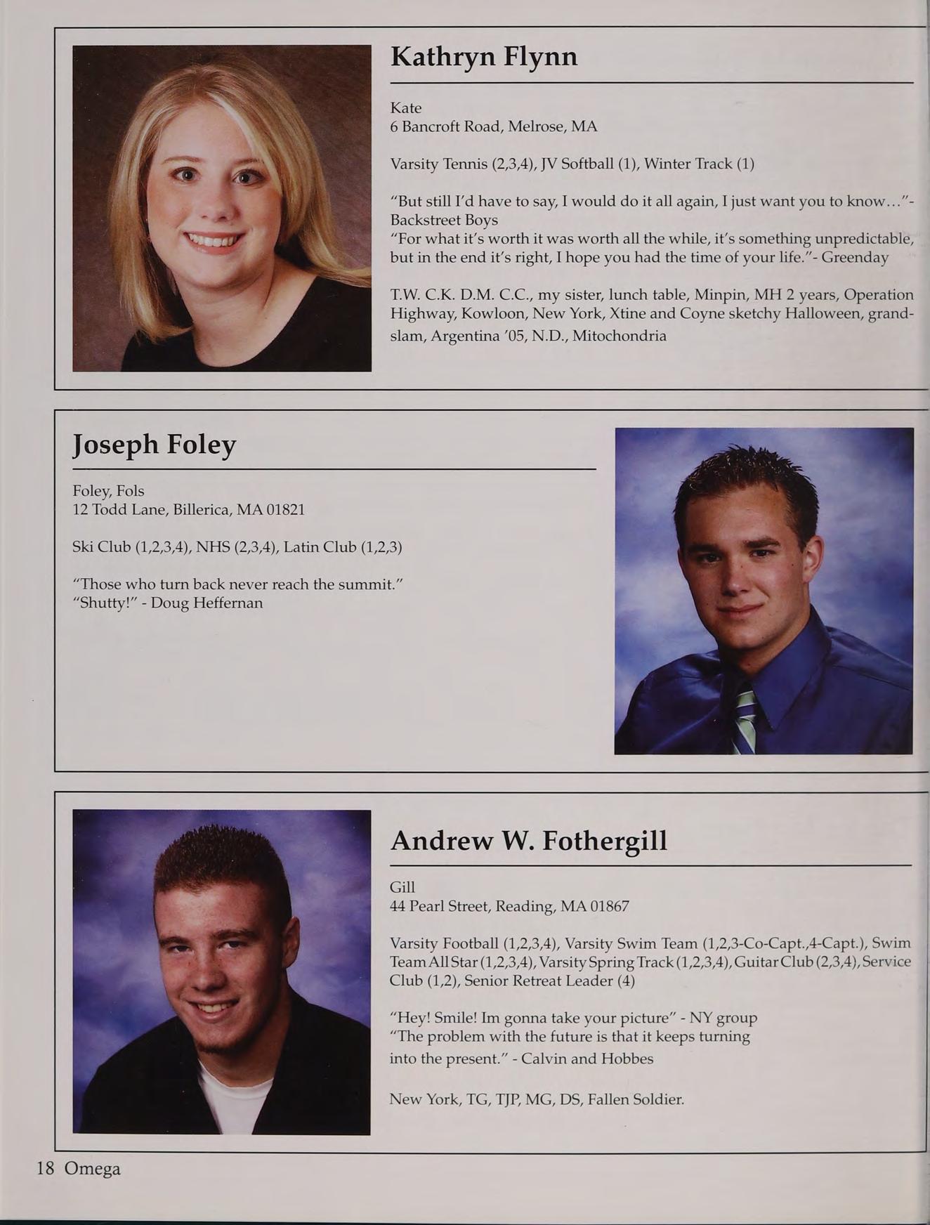 ¢ Katherine Margaret Farrell Meaghan M. Federico « Ana Victoria Fernandez ¢ Dustin Jon Fiore * Kathryn Donnallan Flynn « Joseph Patrick Foley * Andrew Whalen Fothergill Christopher James Freeman * Shauna Marie Freeman