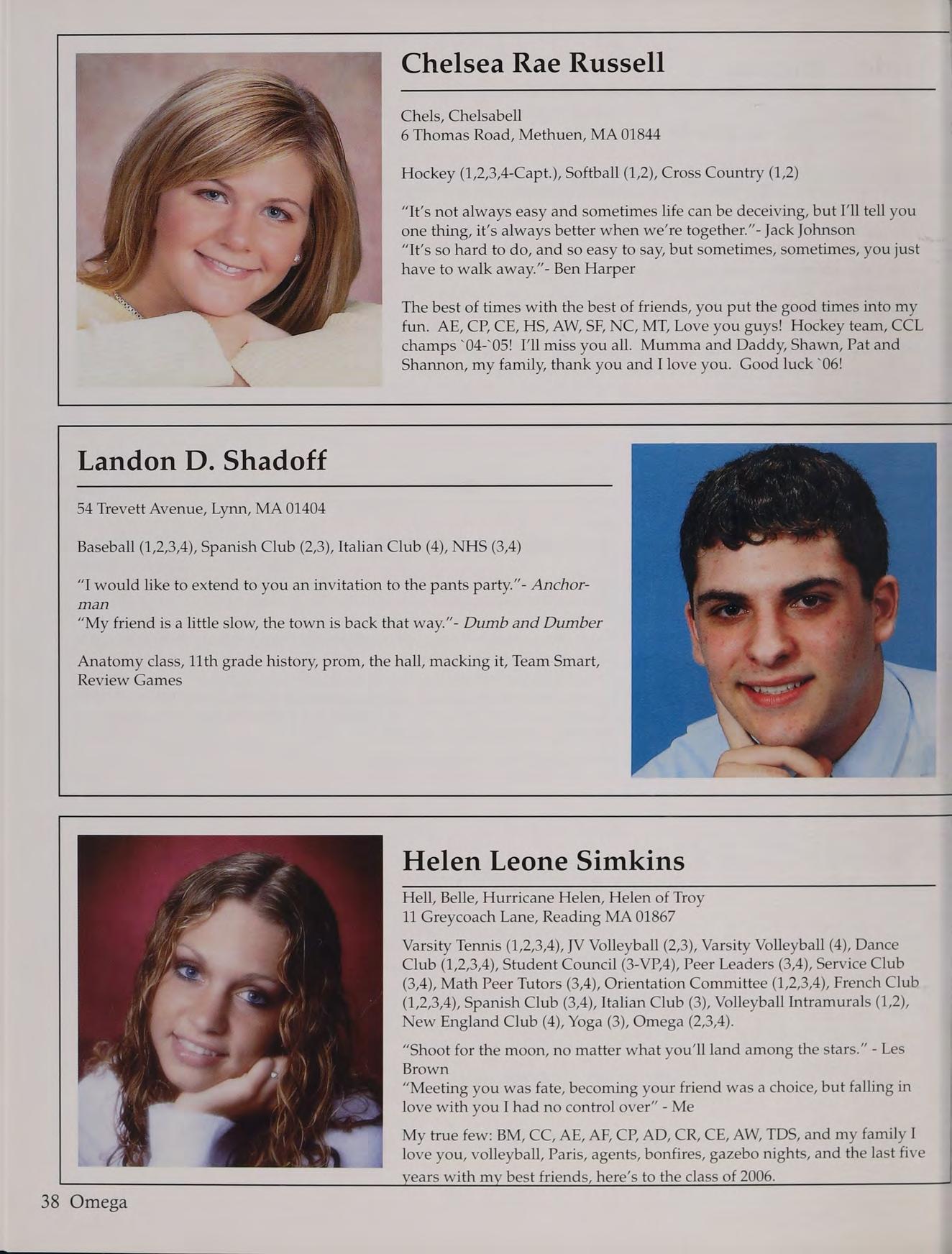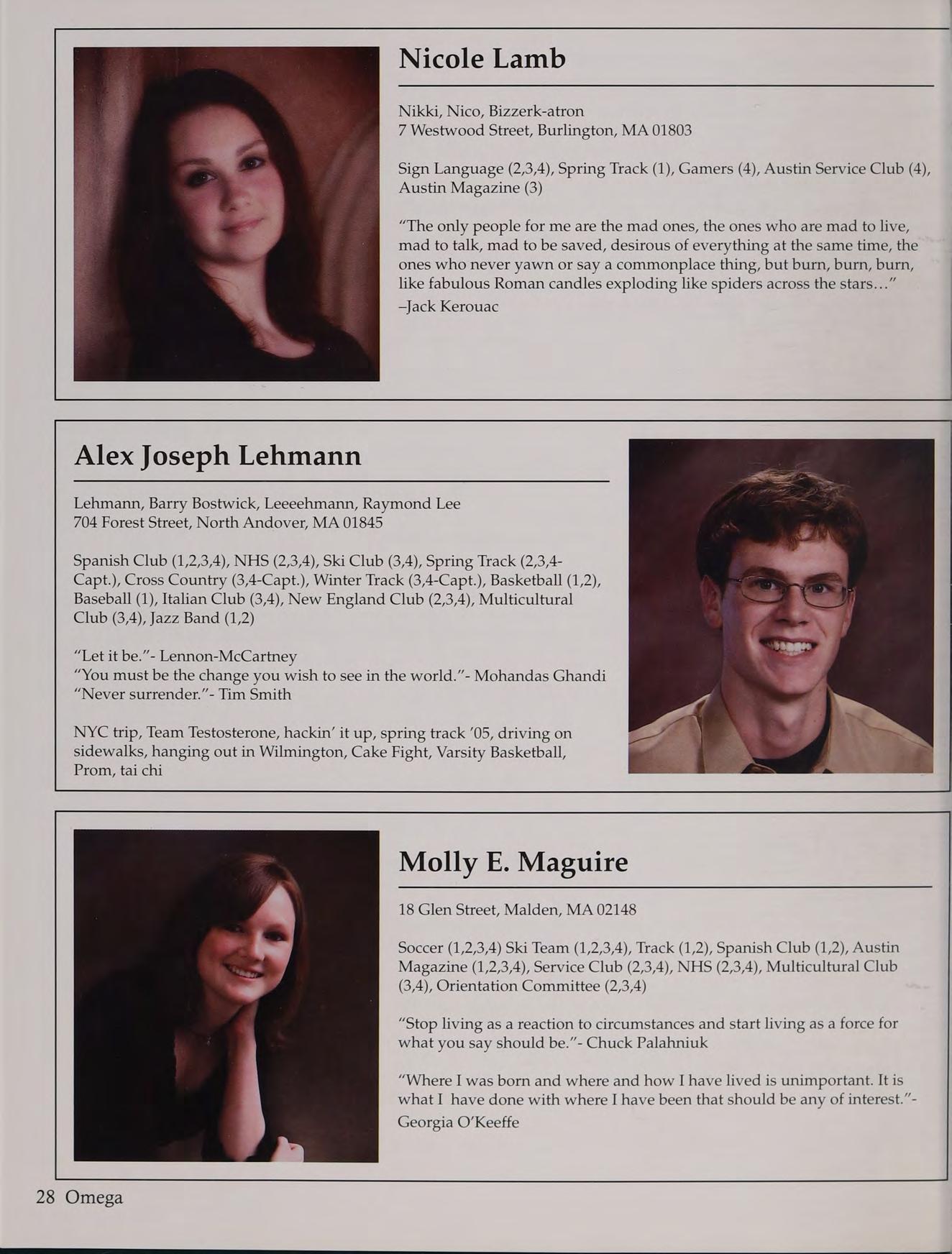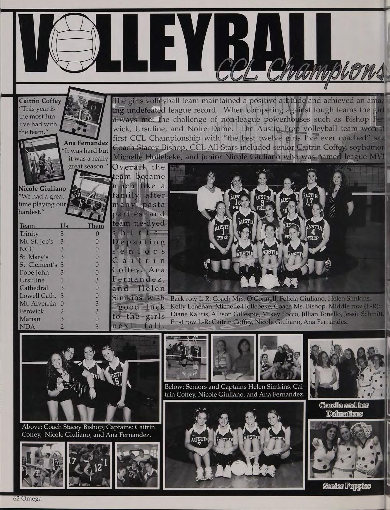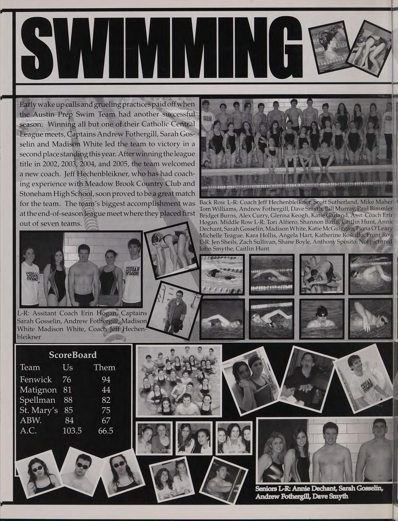 This year’s Omega Staff put their creative efforts together to produce a yearbook that showcases the class of 2006 and the Austin community. Under the direction of Ms. O’Leary and Jostens representative Kevin Dillon, the class learned to compromise and cooperate. The goal of the class was to learn hands-on computer and graphic design skills in order to produce a unique yearbook. The staff was able to interact with their peers by interviewing and taking pictures of members of sports teams and clubs. During class time, pages were drawn out, pictures selected, and decisions were made regarding what font was to be used, which superlatives the senior class would vote on, and who would be assigned to cover different pages. Not only did the students work diligently during class time, but also at many activity periods, after school, and even during vacation.
