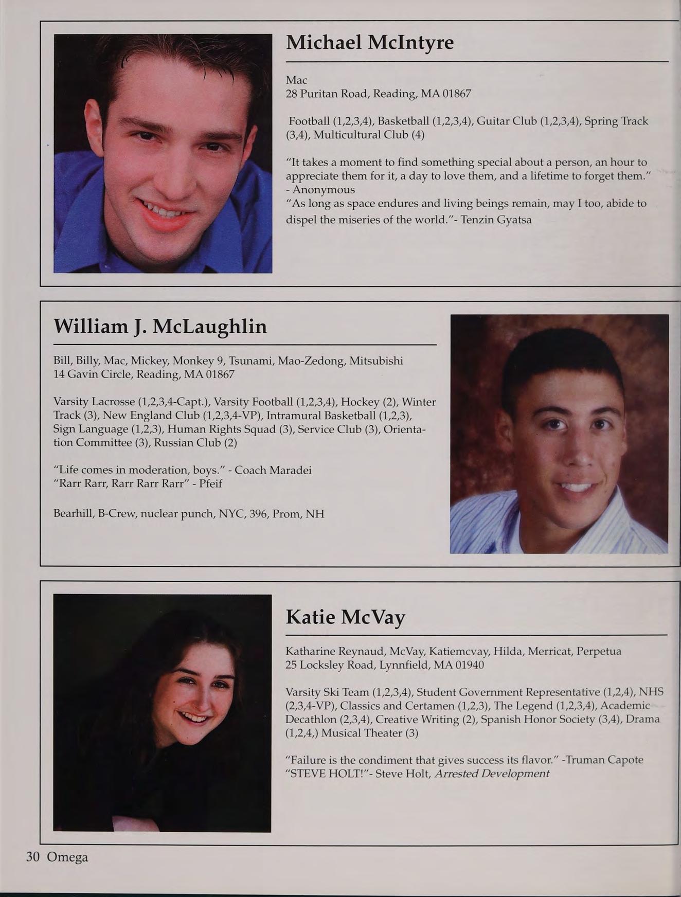 Lally « Nicole Marie Lamb « Alex Joseph Dominic Marcin * Mary Eileen McDonough Mcintyre * William J. McLaughlin » KathaDerrick Tyler Morrison * Kate Lynn Moylan