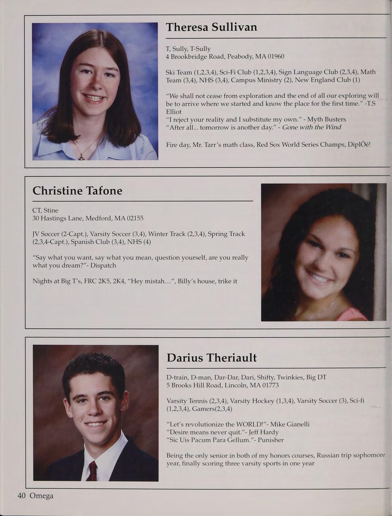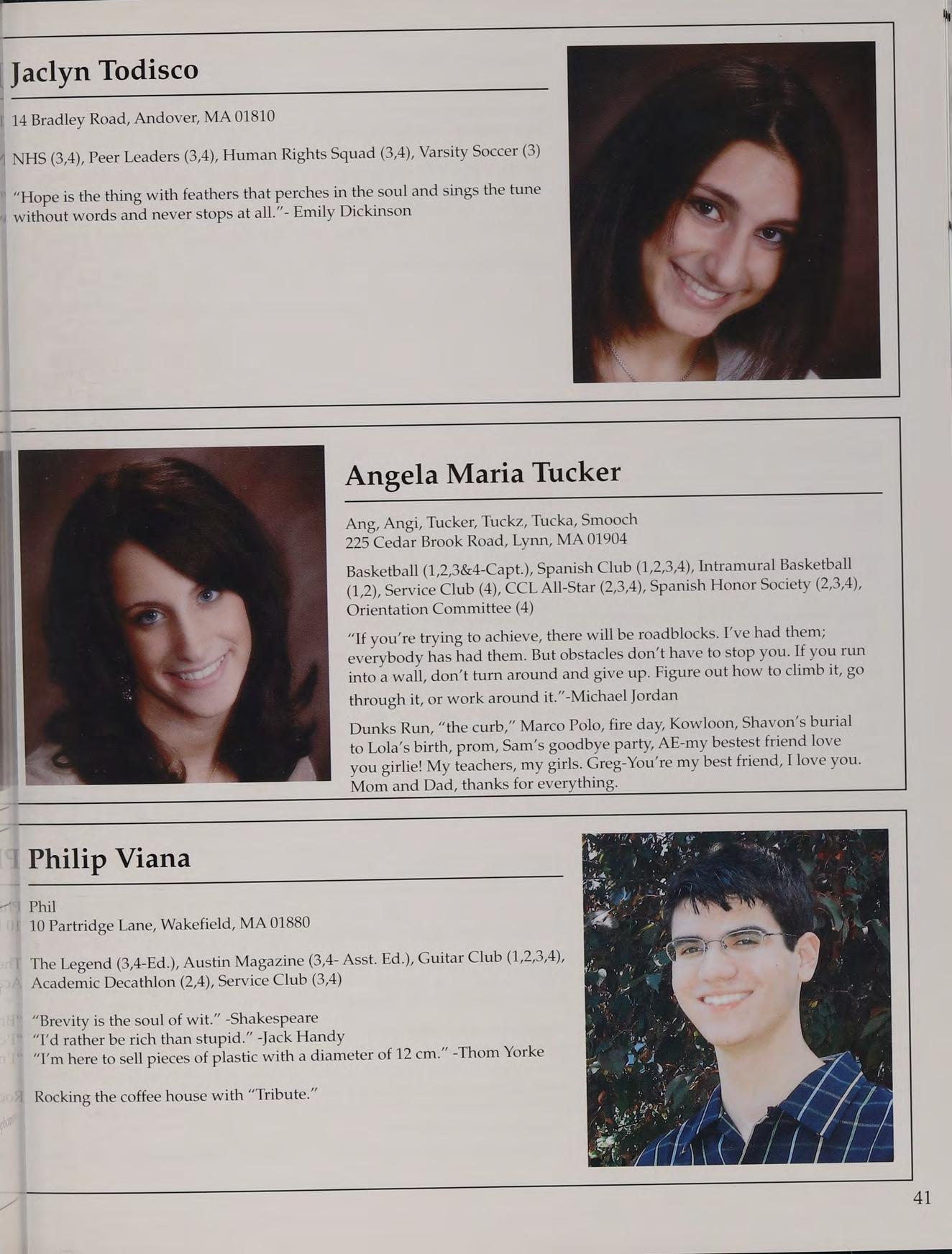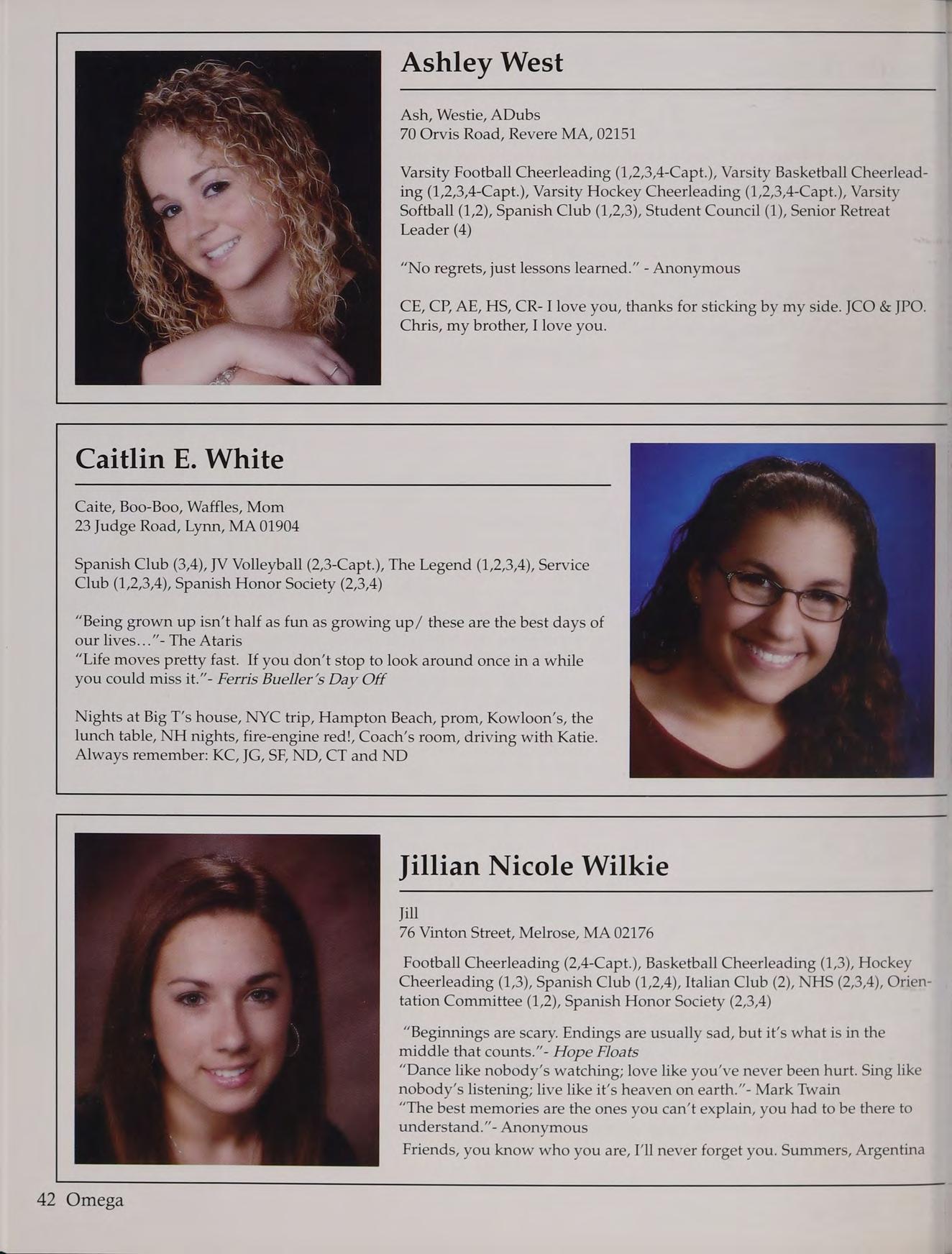 harles Rollins Chelsea Rae Russell « Landon David E. Sousa e Joseph Patrick Sullivan * Theresa Bridget Sullivan e Christine Rose Tafone « Darius Richard Theriault ¢ Jaclyn Jennifer Todisco ° Angela Maria Tucker ¢ Philip Luis Viana * Ashley Nicole West ¢ Caitlin Elizabeth White Jillian Nicole W ilkie Matthew R. Wilkie * Grant Thomas Wilson Katherine Nell Alfieri Mark Anzalone * Alison Lynn Audette ° Christopher John Barbas » David Edward Batchelor Kunal Praful Bhakta Emily Kathleen Biberger ° Dan J. Boyle ¢ Christopher L. Bresten « Jessica Lee Brouillard * Tania Buonopane ¢ Patrick Terrence Burke « Tyler Philip Cail ¢ Erik D. Campos * Amy Elena Castellano « Caitrin Margaret Coffey * Robert Daniel Costa °