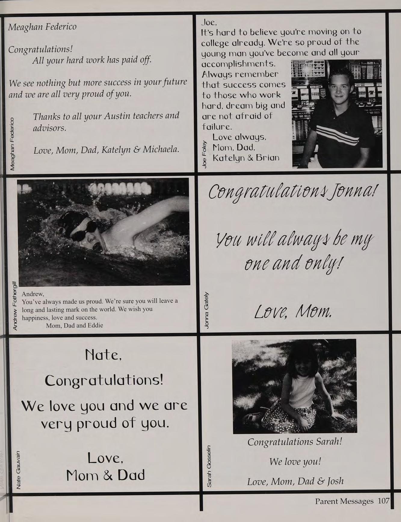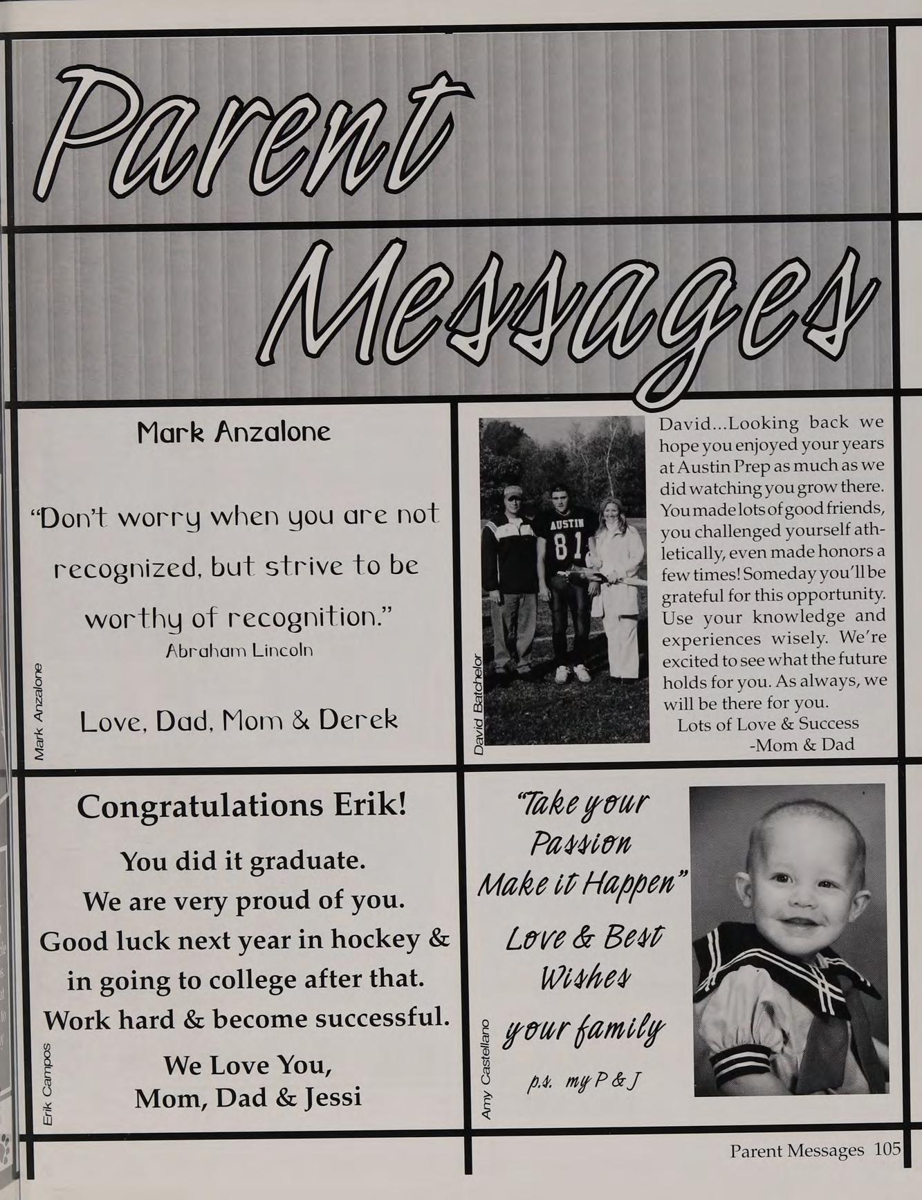 , ® David...Looking back we te hope you enjoyed your years at Austin Prep as muchas we la A did watching you grow there. “Don’t worry when you are not |
