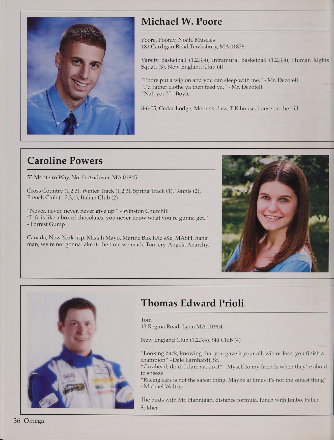 O’Neil * Daniel Timothy Owen « Nadia A. Catherine Theresa Peterson * Joseph Vincent Pfeifer ¢ Edward Riley Pisari Thomas Joseph Pompey * Michael William Poore « Caroline Elizabeth Powers * Thomas Edward Prioli ¢ Arianna Marie Rigano * Marina Patrice Rigano ¢ Christopher C Shadoff « Helen Leone Simkins * David Thomas Smyth ¢ Greg