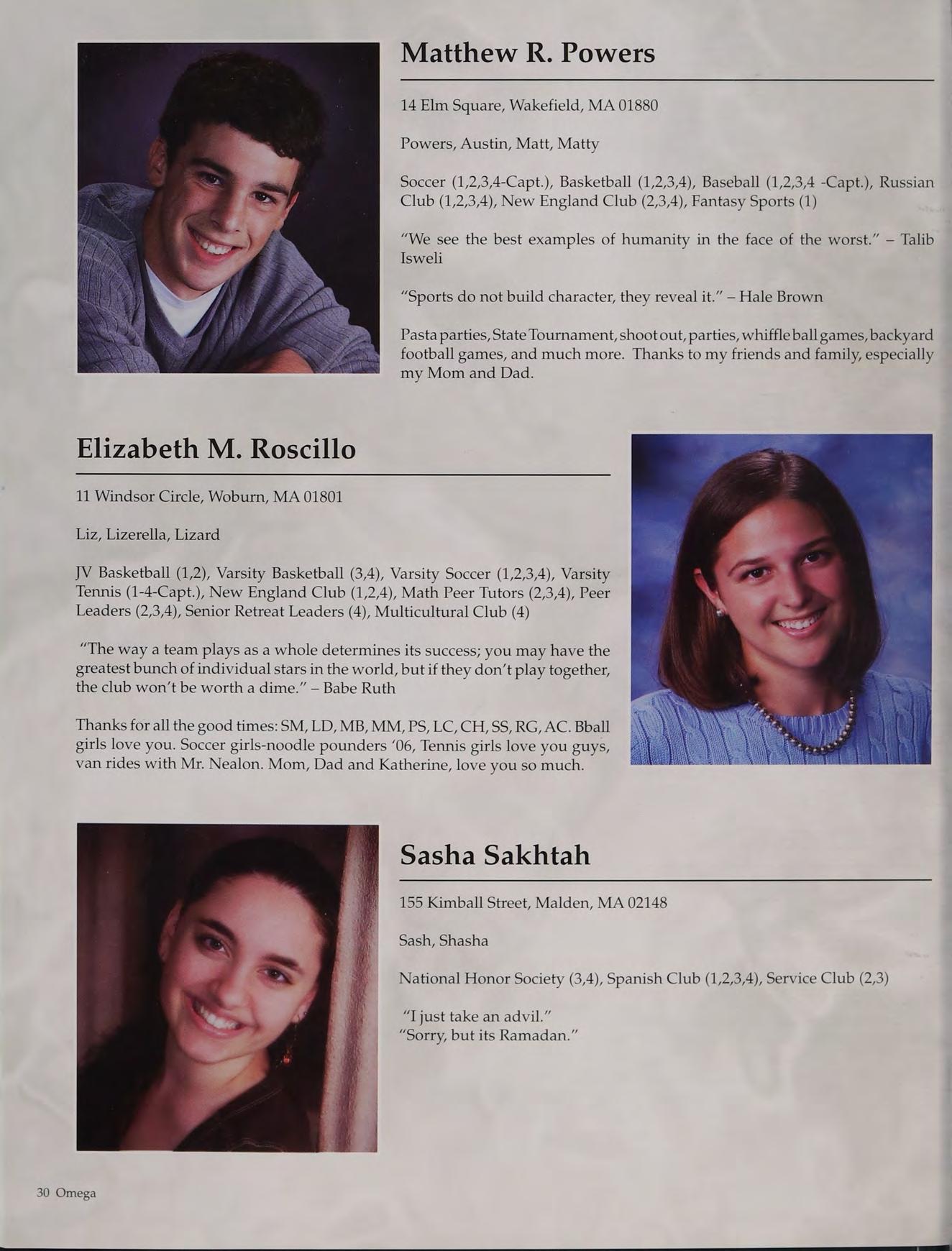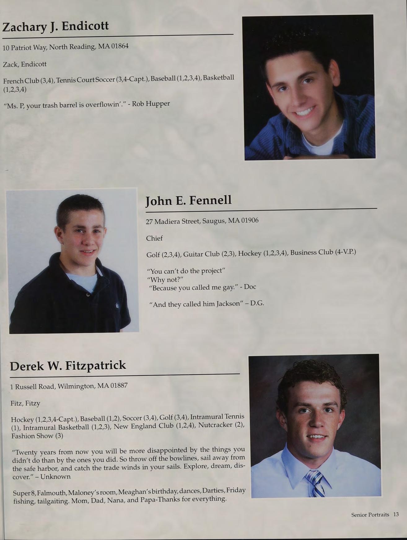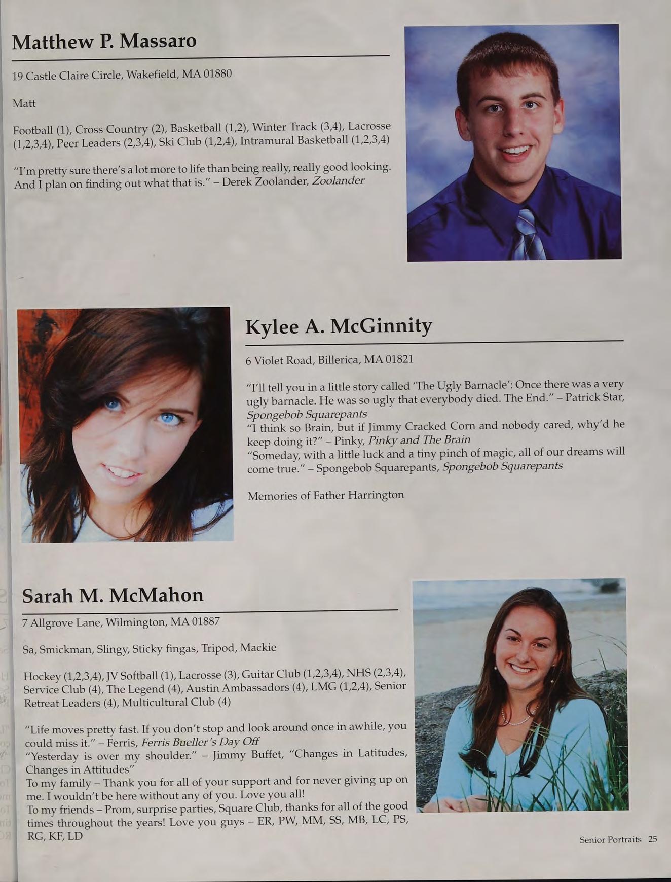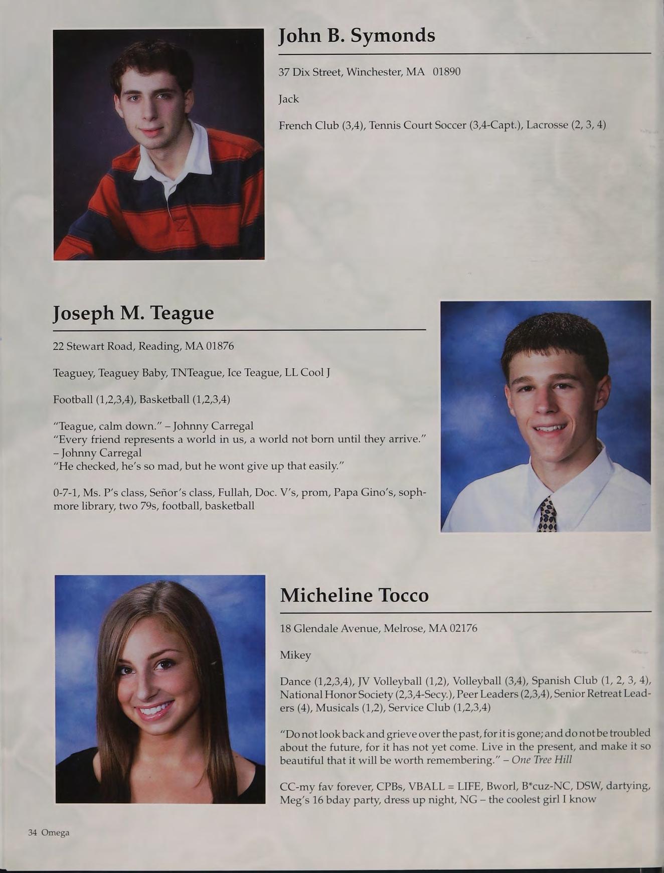 Football (1,2,3,4), Basketball (1,2,3,4), Baseball (1,2,3,4-Capt.), National Honor Society (2,3,4), Russian Club (1,2,3,4), New England Club (1,2,3,4)