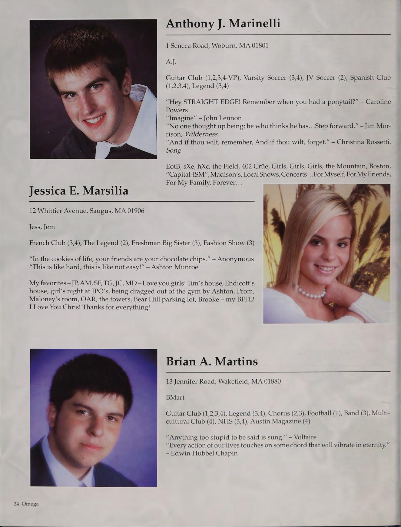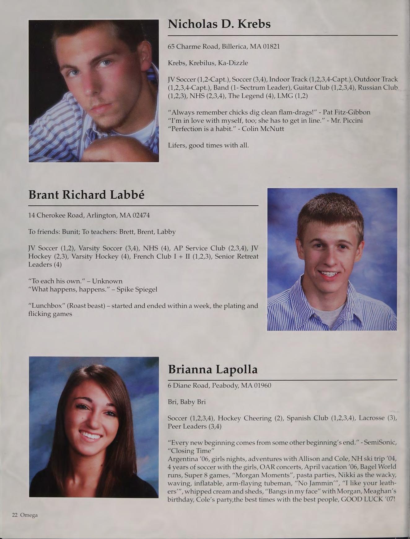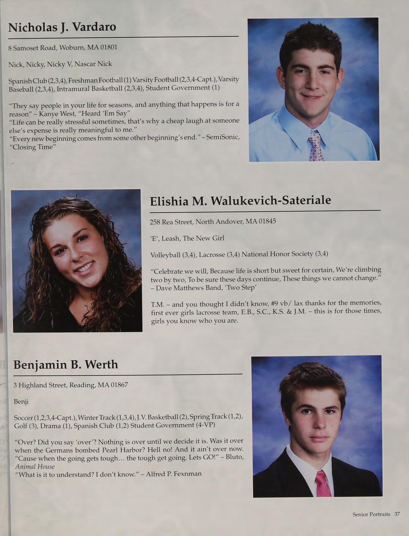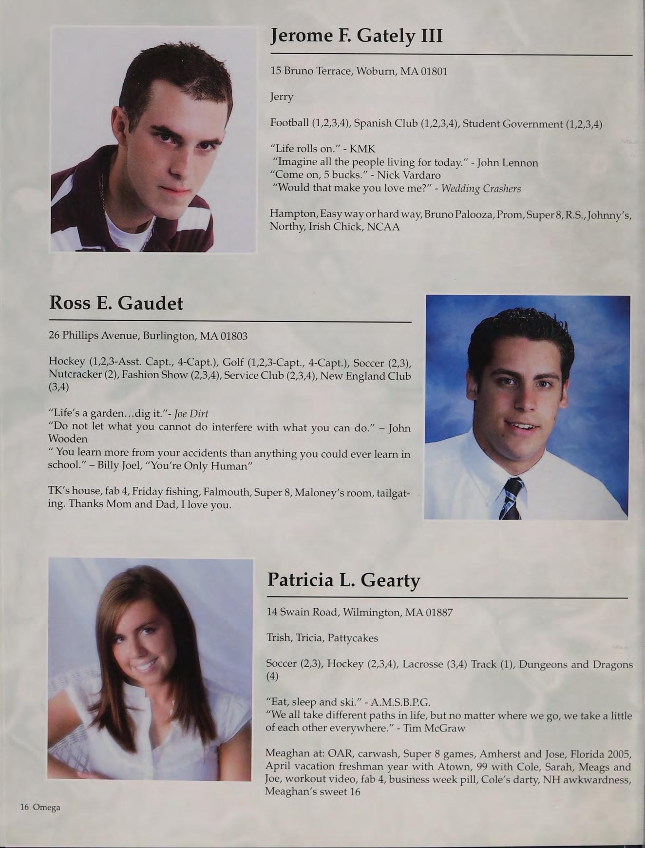 Football (1,2,3,4), Basketball (1,2,3,4), Baseball (1,2,3,4-Capt.), National Honor Society (2,3,4), Russian Club (1,2,3,4), New England Club (1,2,3,4)