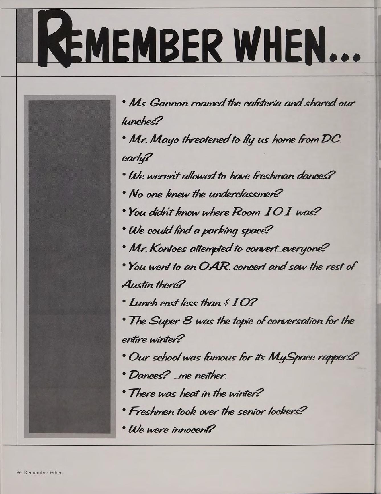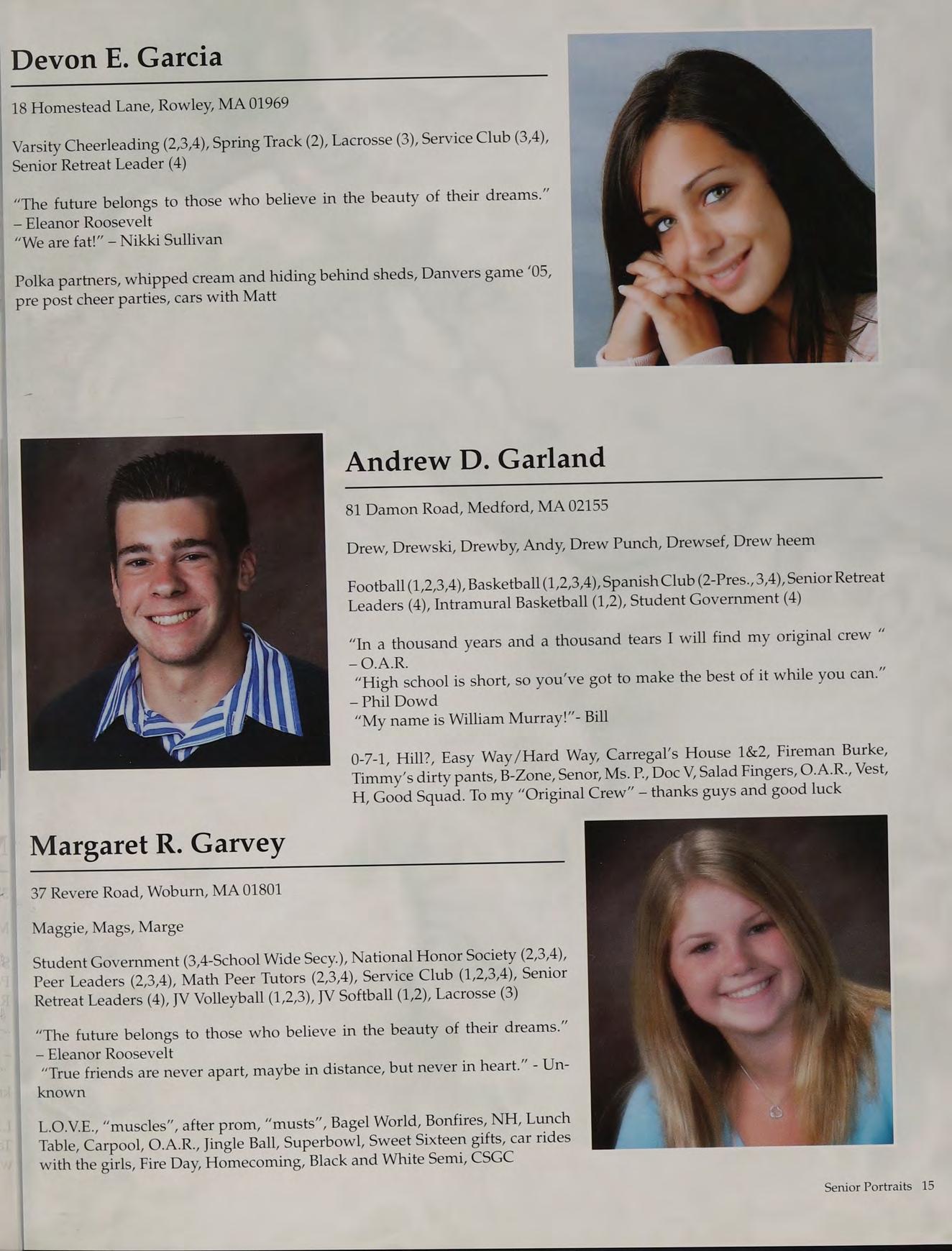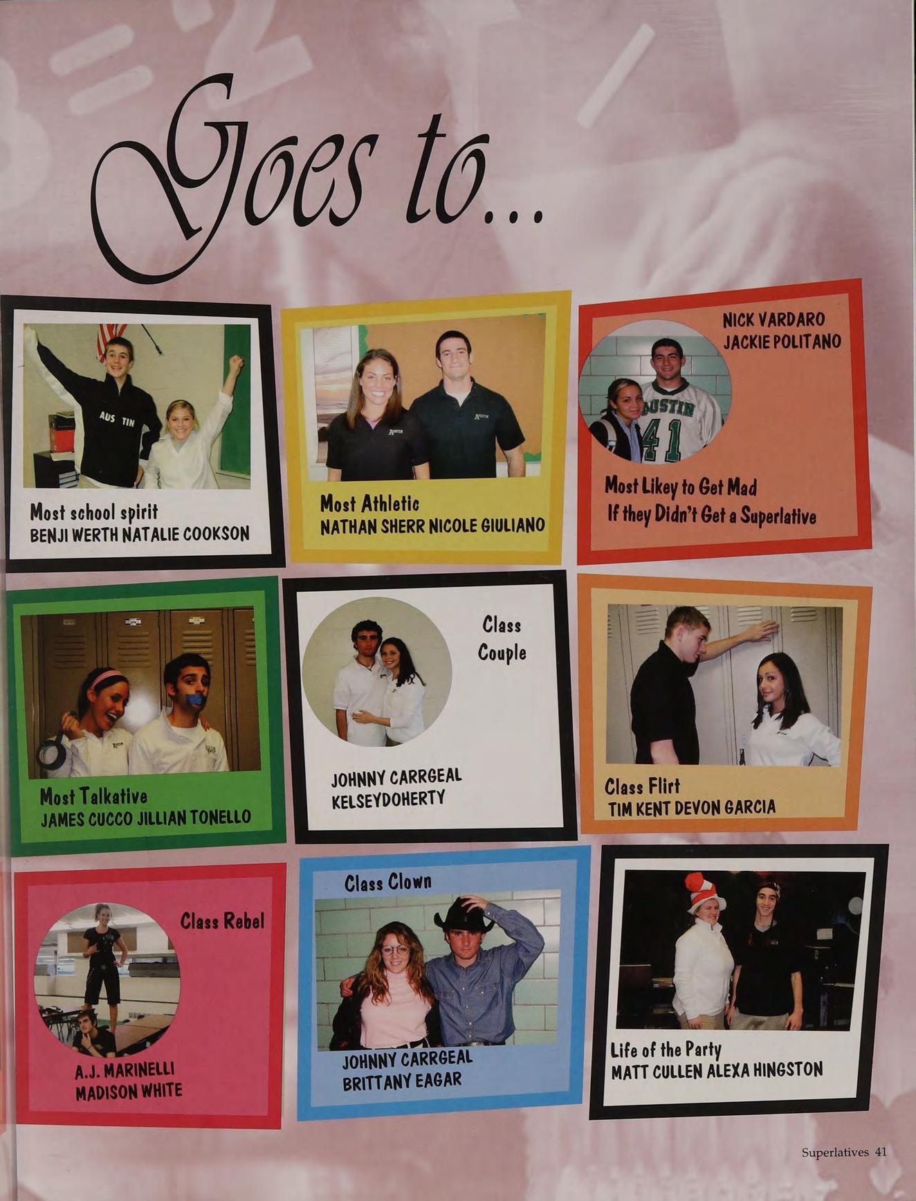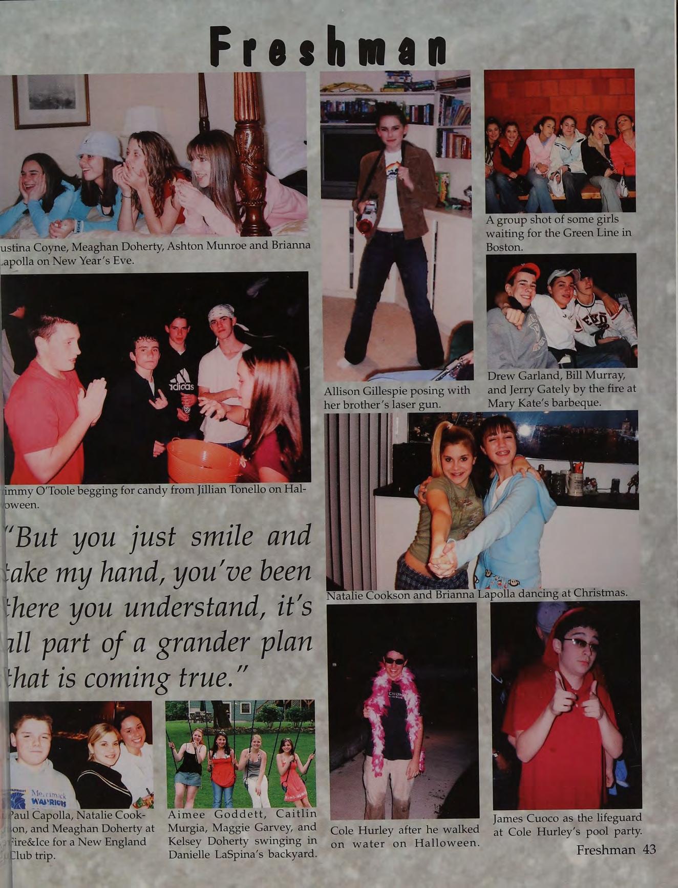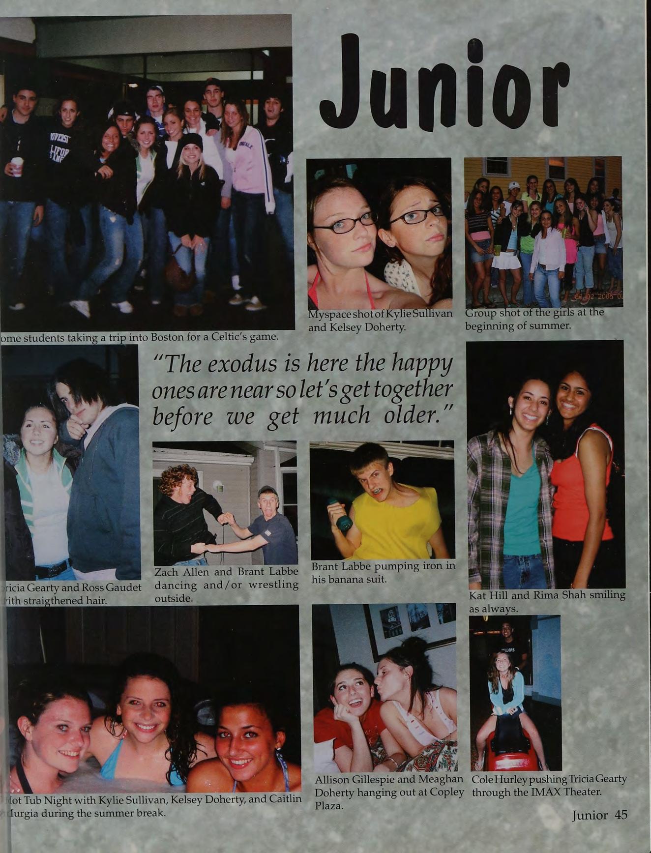 Garland + Carregal connection, #1, Fullua, Prom, Football-too much to say, The J-MAN!, Murray - what do you want!, Tod, 25, Twomey, Rogue Waves, basketball games, good times with good people, KD, Teagueee!