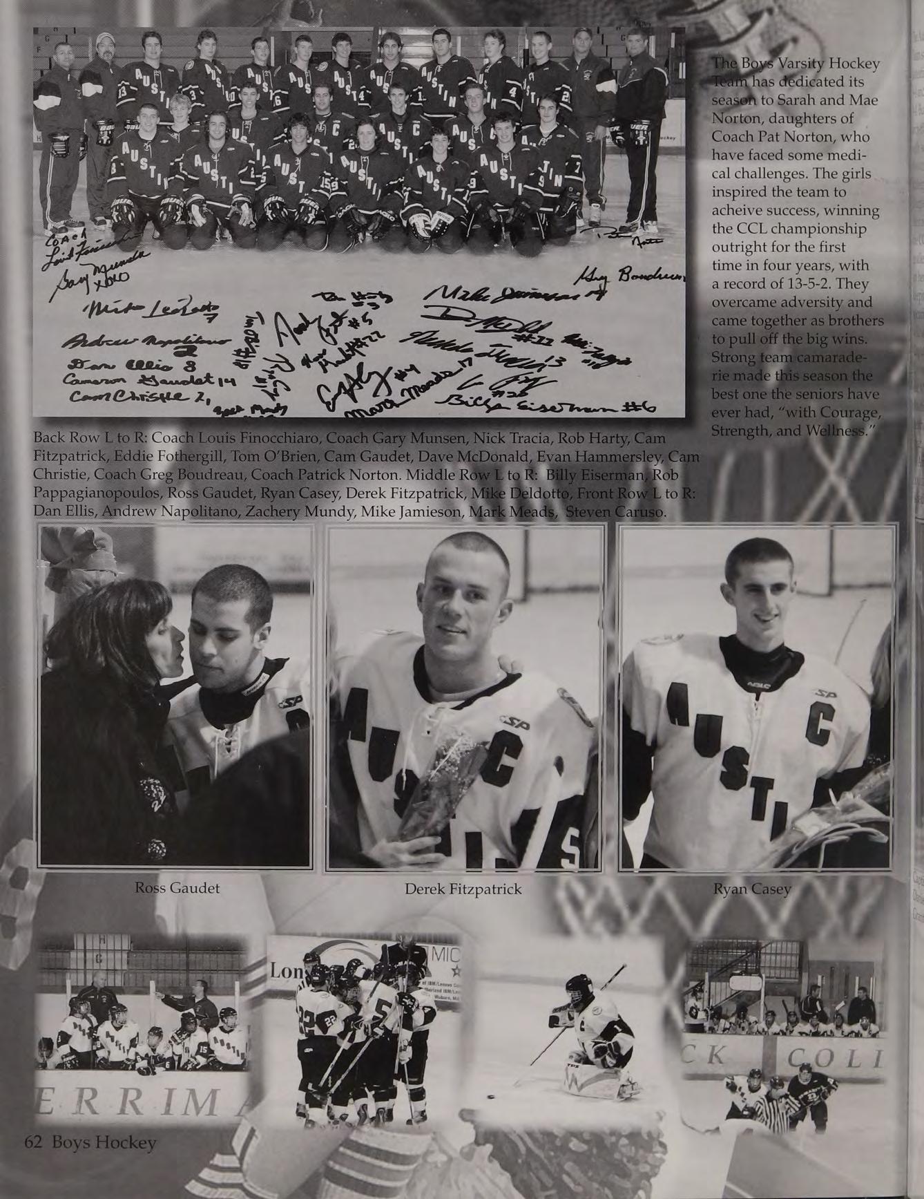 Hockey (1,2,3,4-Capt.), French Club (2,3,4), Peer Leaders (3,4), Lacrosse (1), Baseball (2), Tennis Court Soccer (3,4-Capt.)