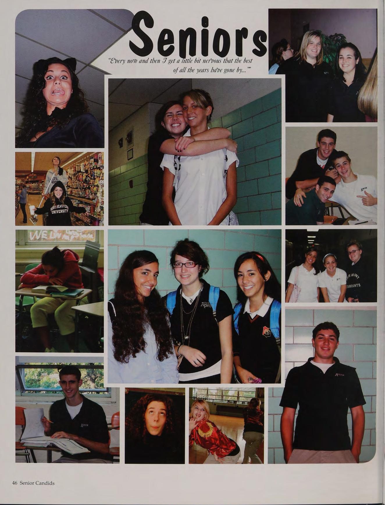 The class of 2007 started out our senior year on a warm September day, unaware of what would befall us when we arrived. Senior breakfast began our morning, the bell rang and we proceeded to homeroom as scheduled. As our teachers handed out our locker combinations, we thought we were organizing our lockers for the last time. But when we stepped out of our homeroom, we saw that our senior hallway had been invaded by freshmen taking our lockers! Choas reigned and it was only the beginning to a very long day. “Detention” became a new vocabulary word for us as Ms. Gray took the helm. We were immediately swamped with homework and college applications were on everyone’s mind. Senioritis was wishful thinking.