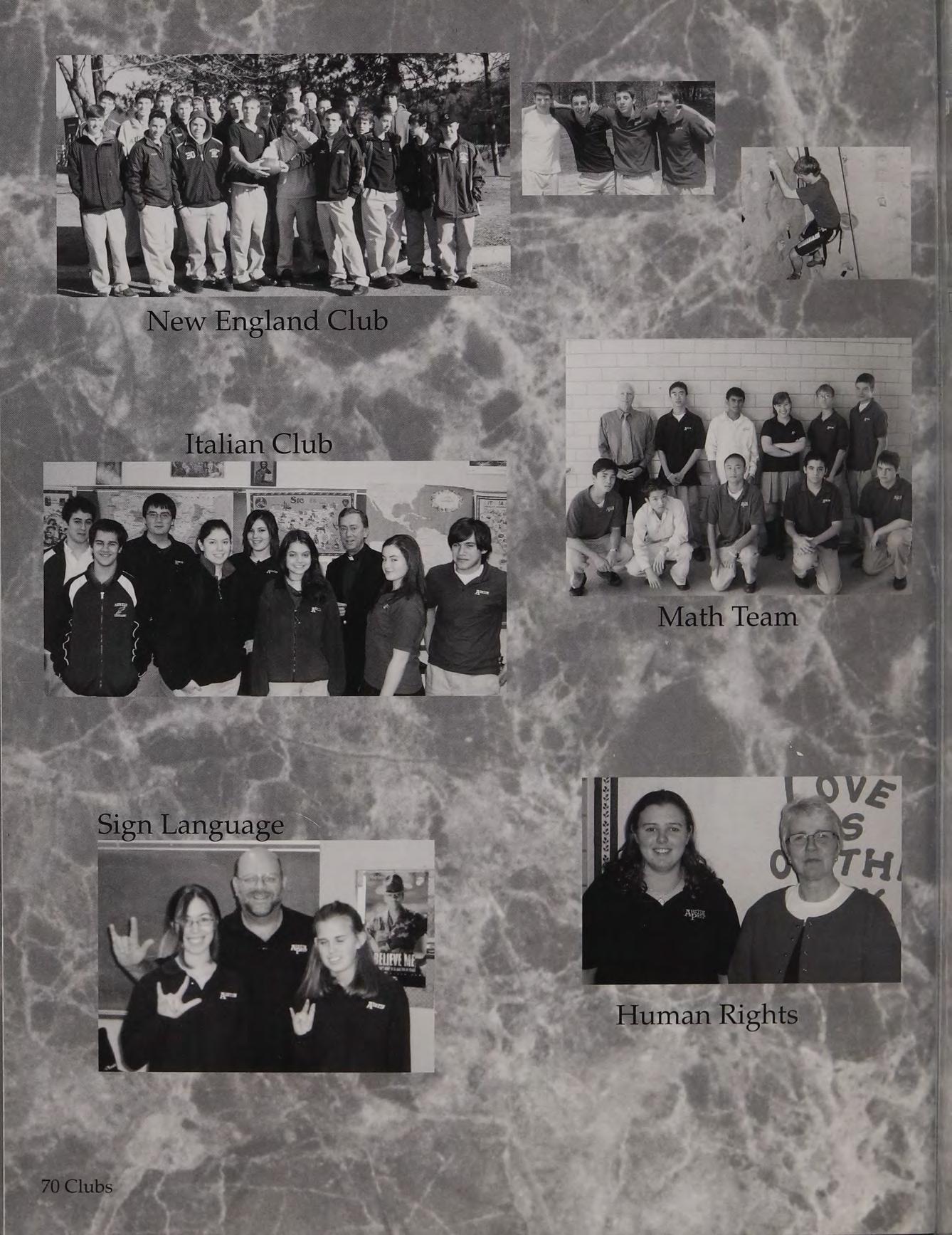 National Honor Society (2,3,4), Peer Leaders (3,4), New England Club (1,2,3,4), Football (1,2,3,4), Basketball (1,2,3,4), Spanish Club (1,2,3,4), Service Club (1,4), Yoga (3,4)