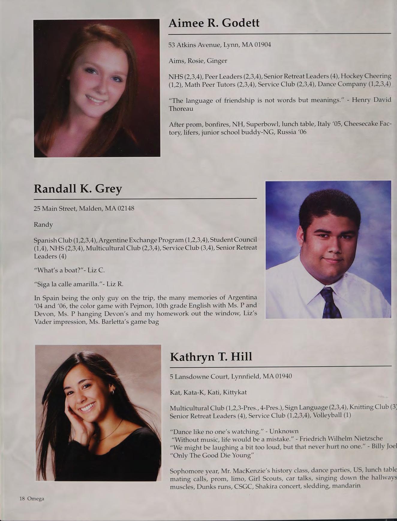 Dance (1,2,3,4), National Honor Society (3,4), Classics Club (2,3-Secy., 4-Del.), National Latin Honor Society (3,4), Drama (1,2,3,4), Knitting Club (3,4), Multicultural Club (3,4), Art Club (4)