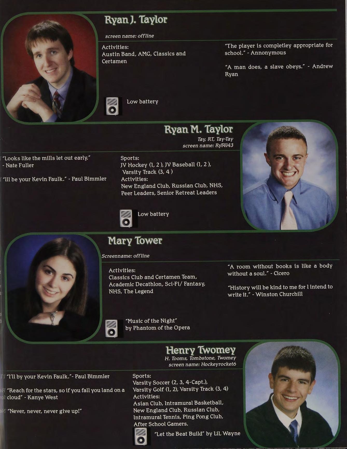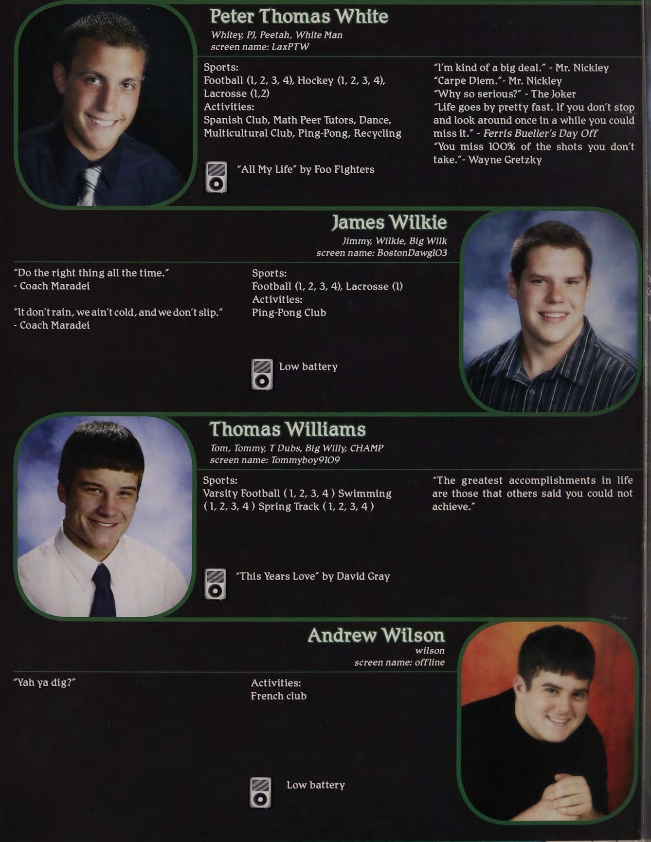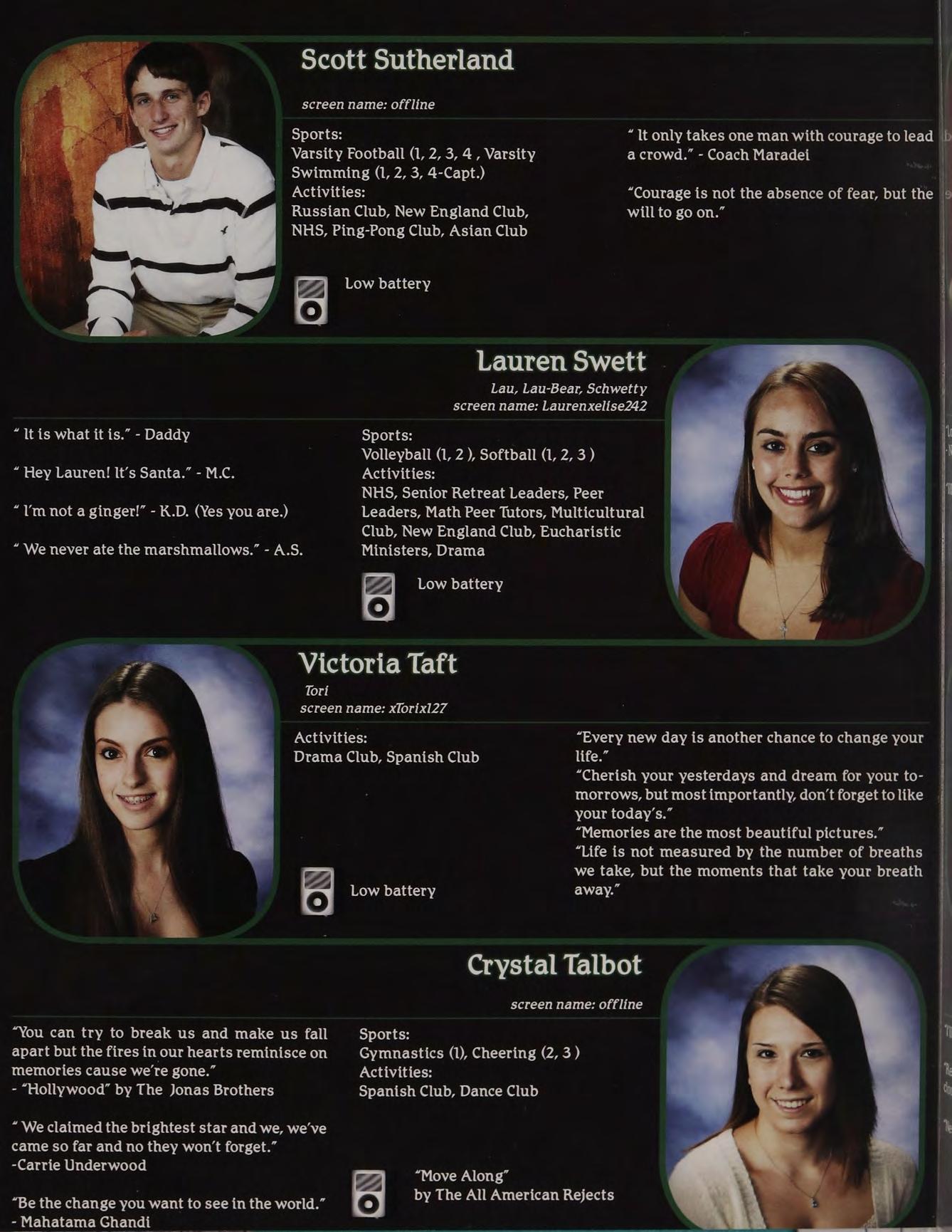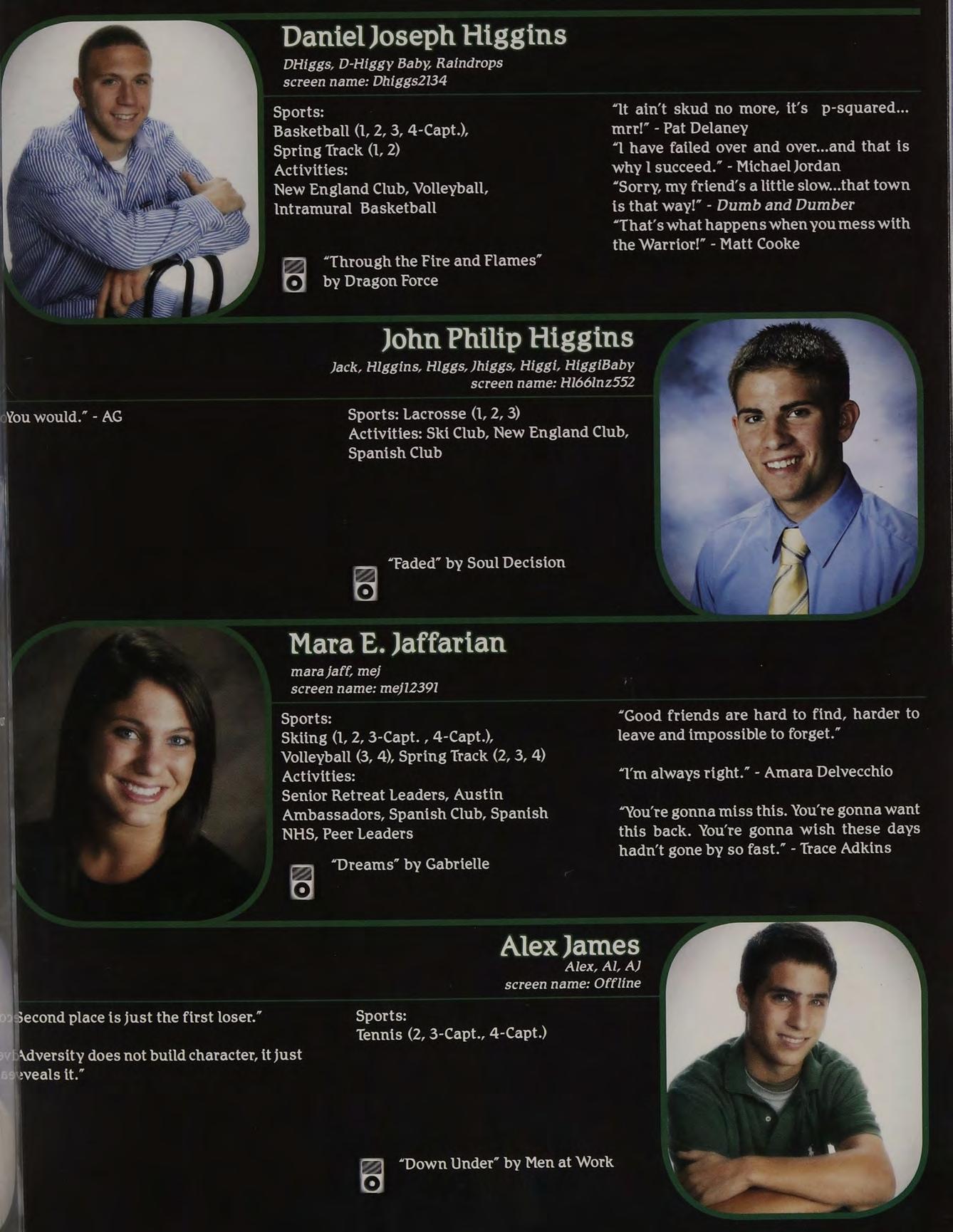 “Yeah, | called her up, she gave me a bunch of Intramural Sports, Peer Leaders, Senior crapabout menotlisteningtoher orsomething. Retreat Leaders, New England Club ldon’t know, l wasn’t really paying attention.”
