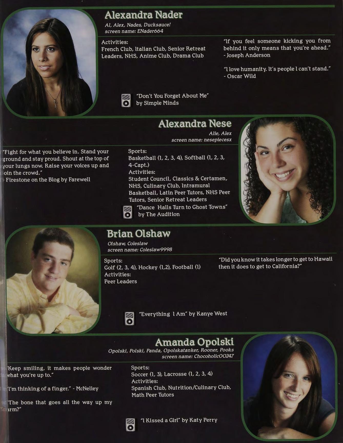 Activities: Spanish club, Service Club, Senior Retreat Leaders, NHS