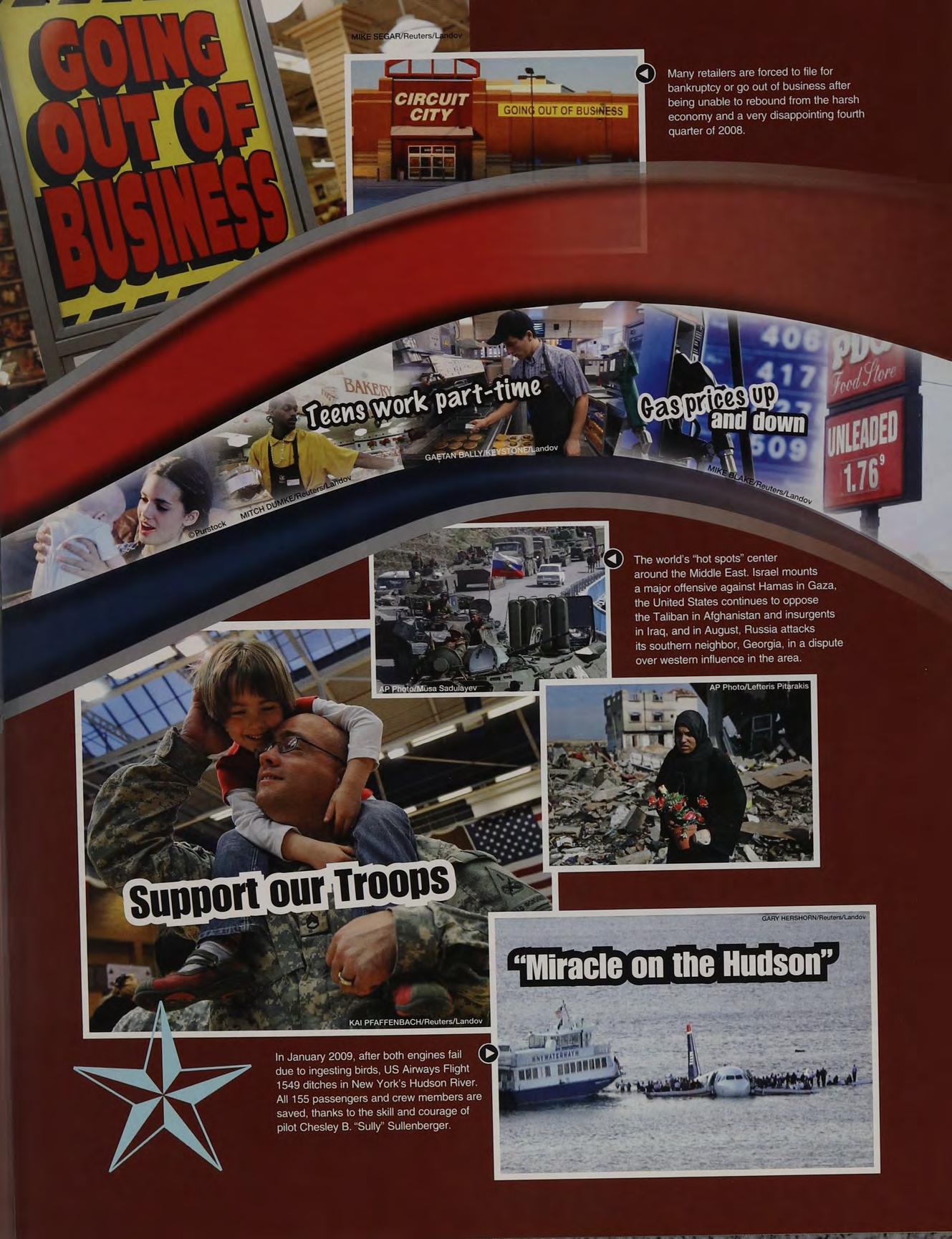a (<4) The world’s “hot spots” center around the Middle East. Israel mounts a major offensive against Hamas in Gaza, the United States continues to oppose the Taliban in Afghanistan and insurgents in Iraq, and in August, Russia attacks its southern neighbor, Georgia, in a dispute over western influence in the area.