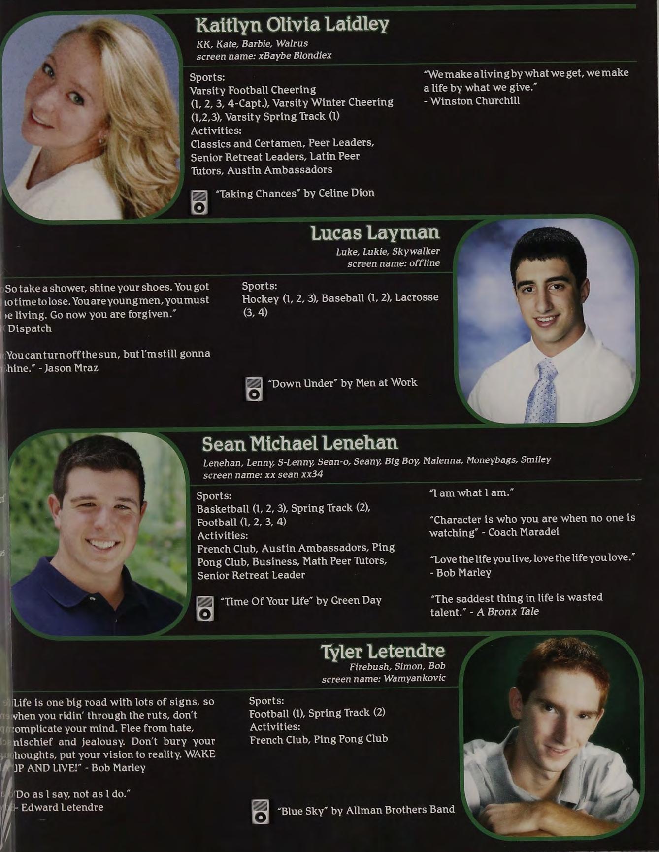 - Yogi Berra Classics and Certamen, Austin Ambassadors, “My way of jokingis to tell the truth. That’s Senior Retreat Leaders the funniest joke in the world.” - Muhammad Ali