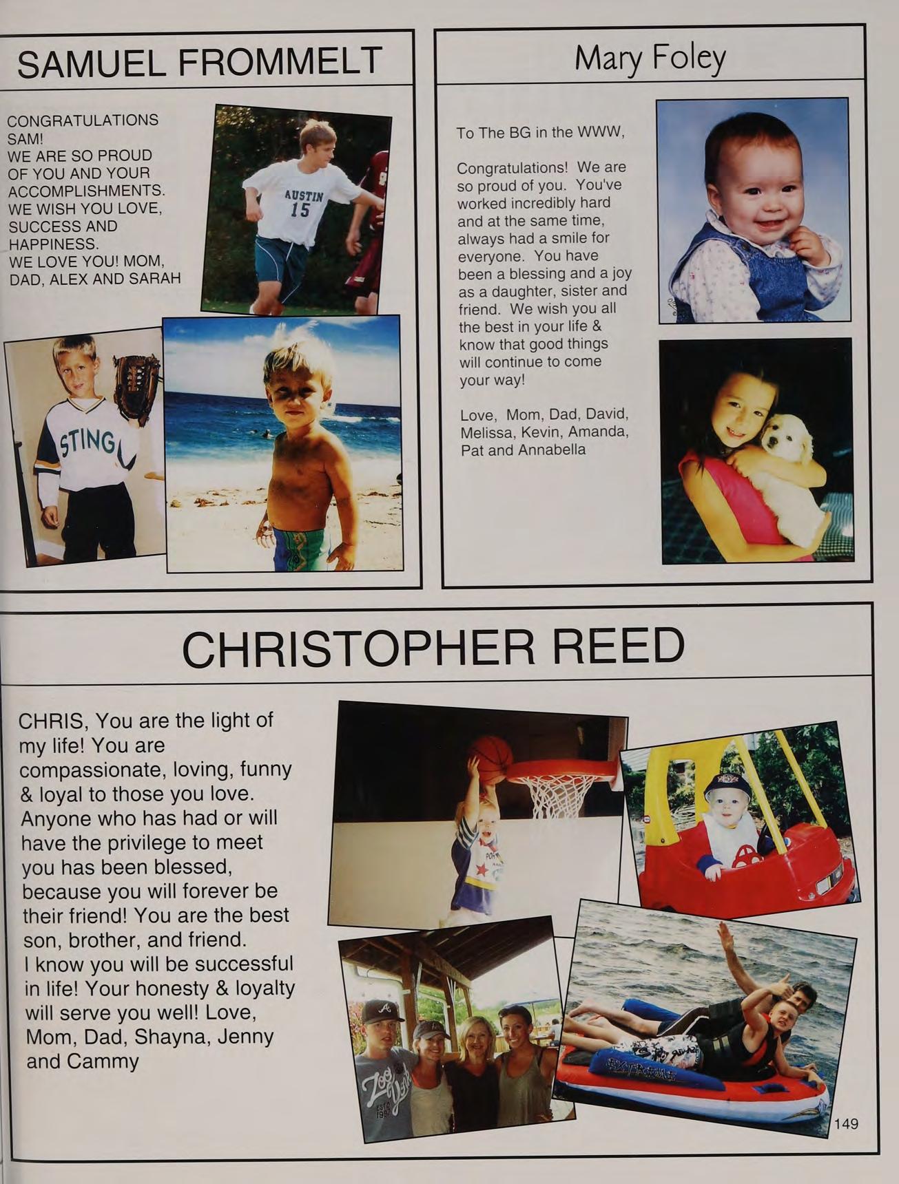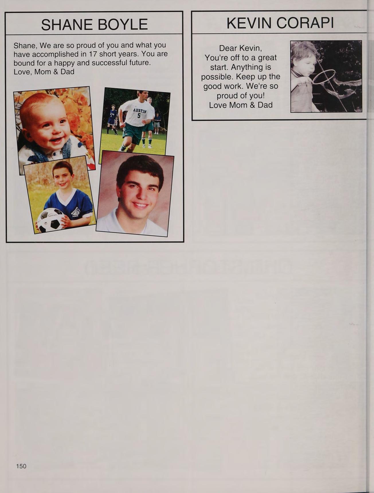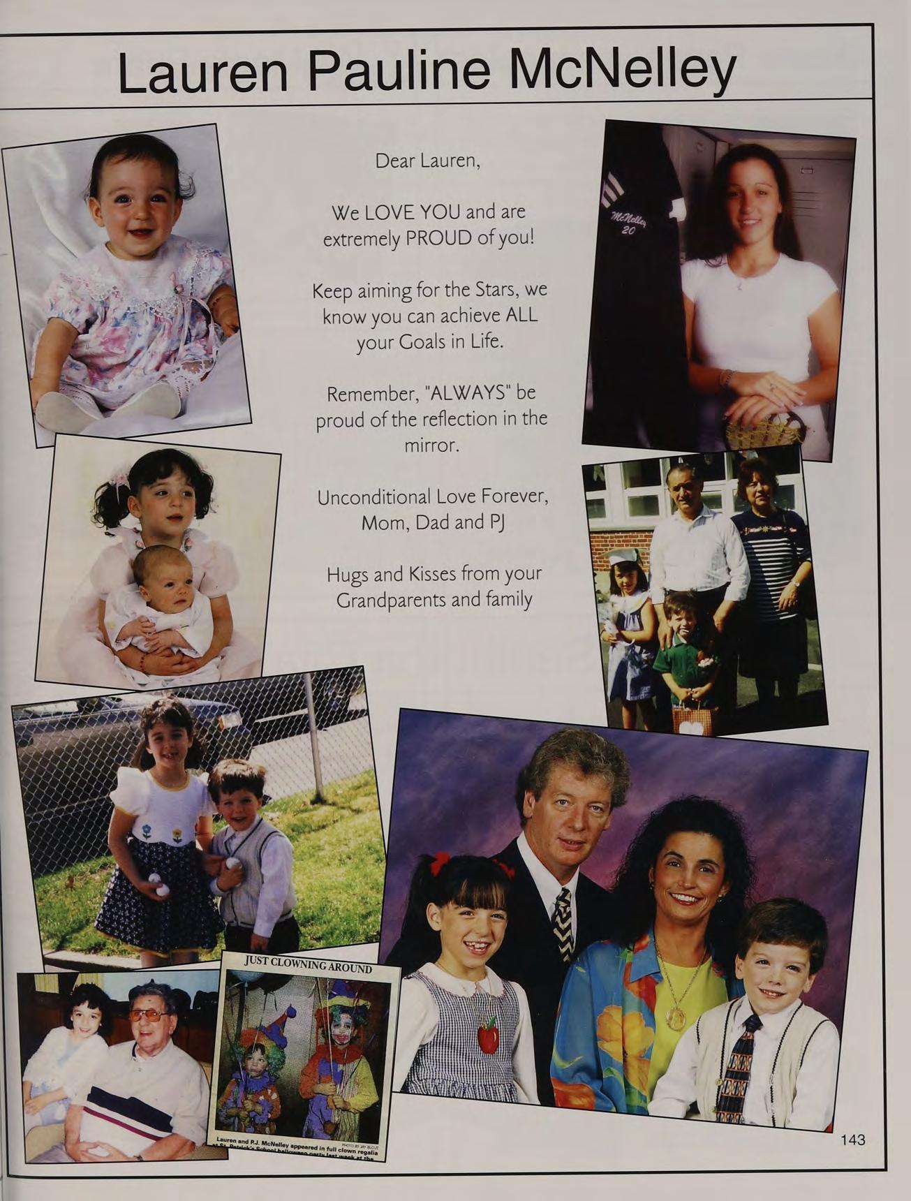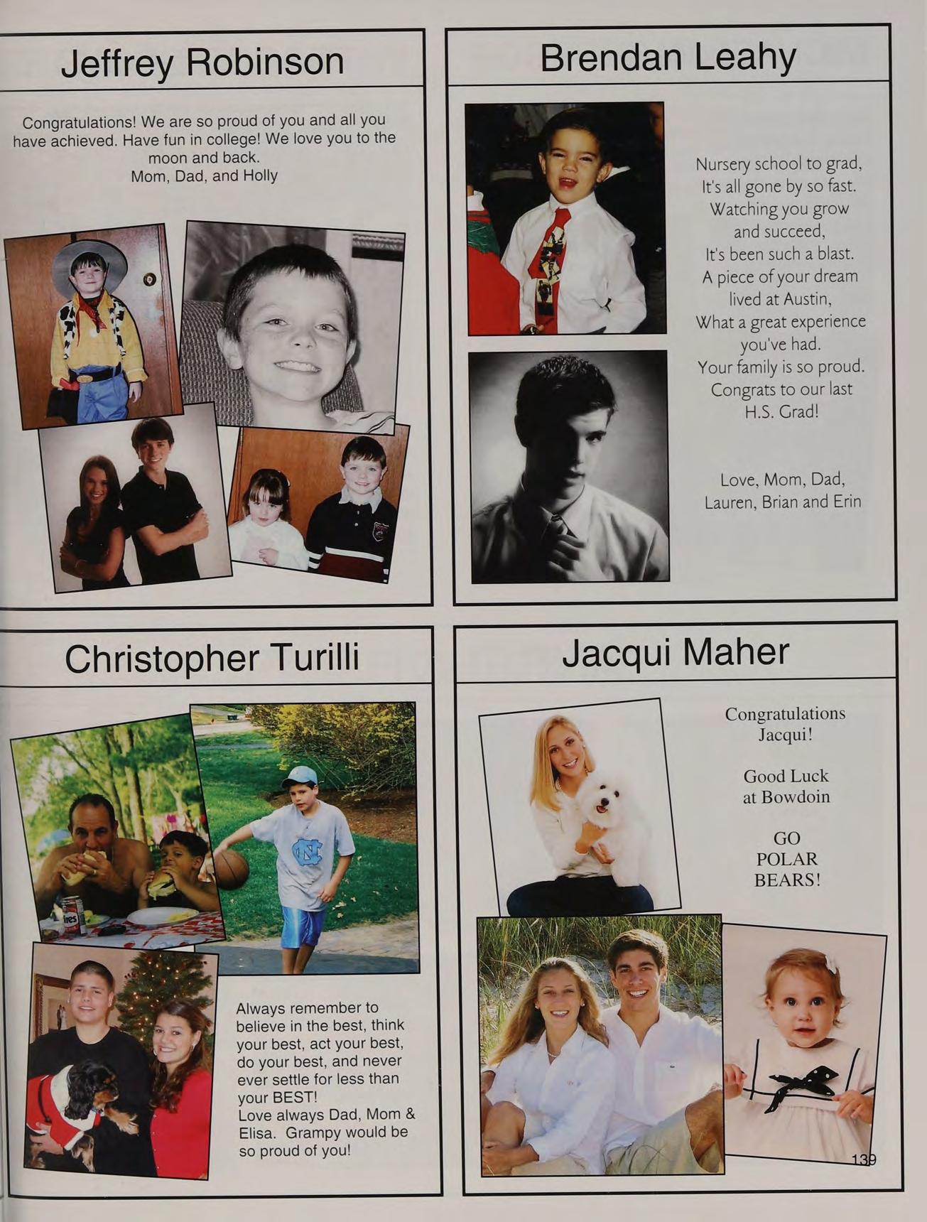 That one time freshman year, toss, mafia, ng's house, EQ SD <3, rap battle '08, respect or regret, after prom, summers, ocean breeze, MB, wheelchair, silly sacs, kayaking, Mr. Maloney, Ms. Gray, soccer managers, kitty, the stained paints, questioning everything, McDonald's, burn our feelings, MK SM JP, my gurlz. Mom, Dad and John, thank you for always being there. I love you!