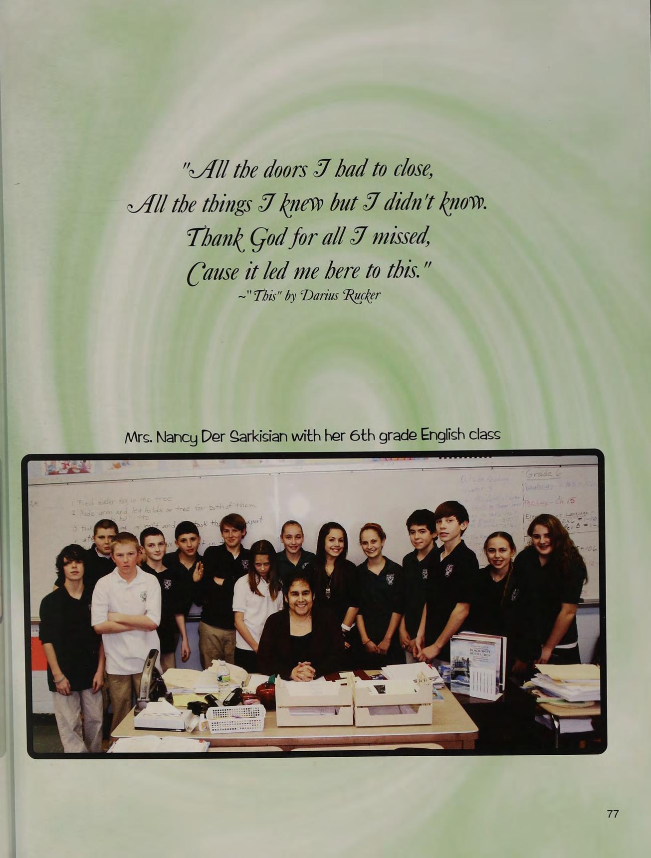 Your passion and breadth of knowledge easily keeps our attention through each class period. Your teaching constantly challenges us and helps us realize our potential. We are better, more informed students because of you. The honesty and kindness you have shown us has created the fondest of memories.
