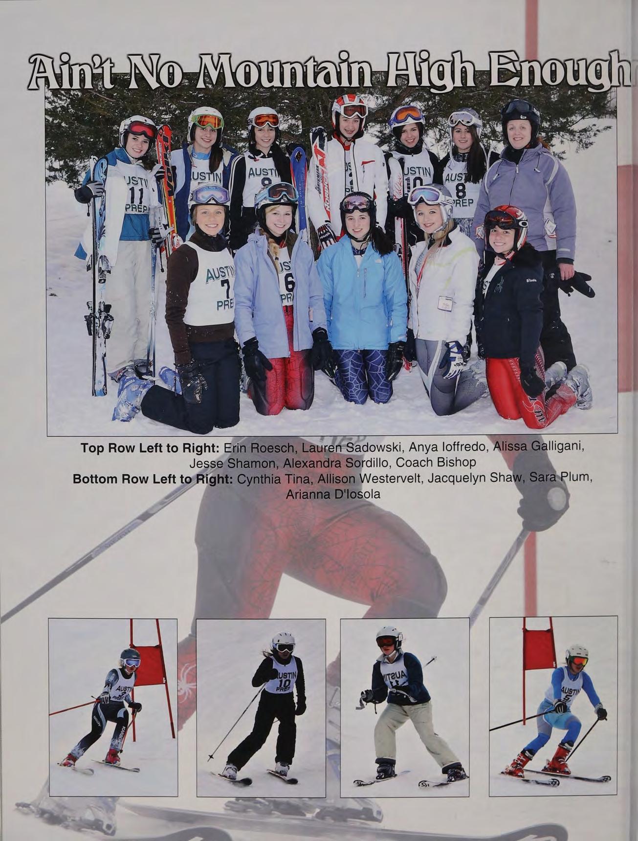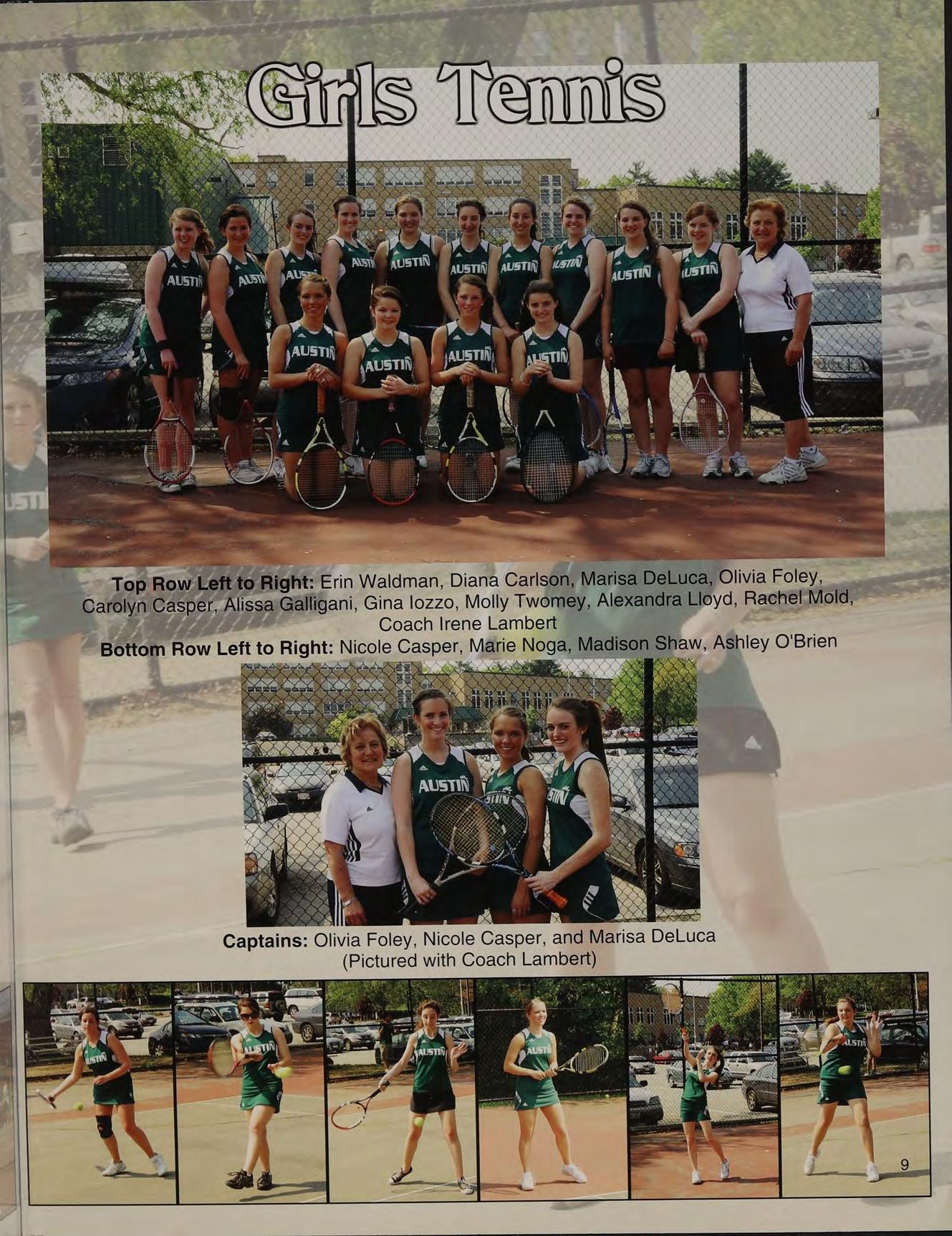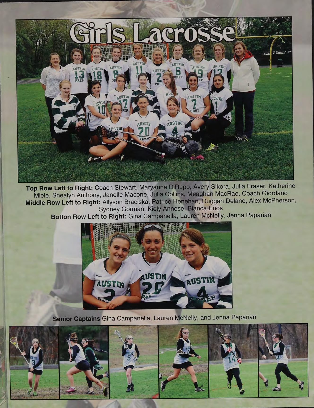 Top Row Left to Right: Coach Stewart, Maryanna 0, Avery Sikora, Julia Fraser, Katherine Miele, Shealyn Anthony, Janelle Macone, Julia Col ns, Meaghan MacRae, Coach Giordano