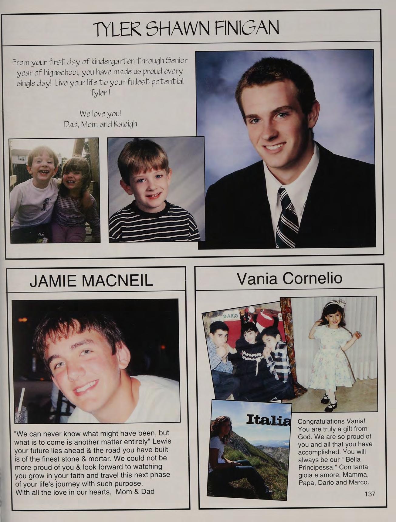 DeLuca's class (twice!), nature walks in Russian, Freshman baseball. Saturday practices, Mayo's at activity, lunch table. Mom and Dad, thanks for everything.