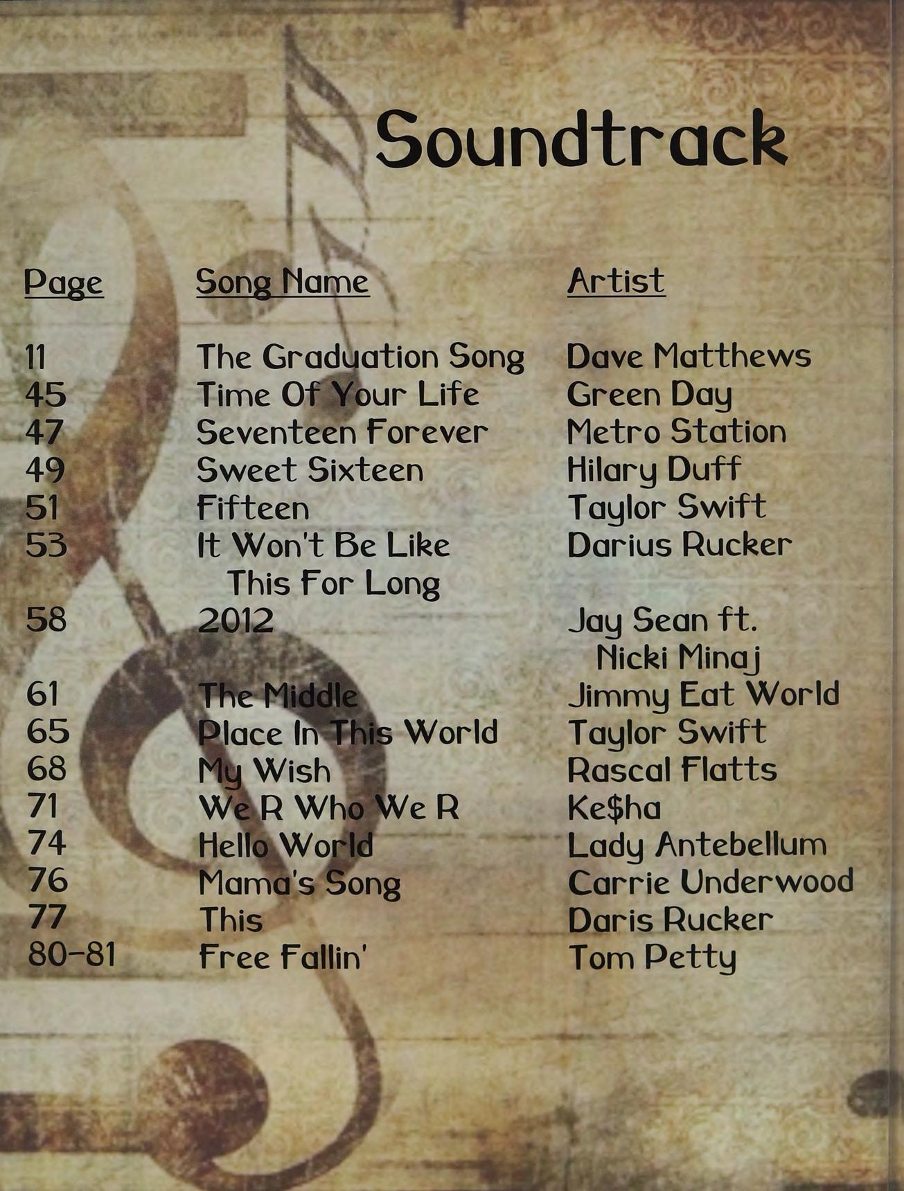 f Lunch table, BL SC TL JA AS RM RQ, Super 8, Falmouth, locker talk, Miller's room, a \ Mobil Moore, Glo '10, no regrets, prom '10, Tik Tok, deuces, XP, rides to practice. A Thanks Mom and Dad, love you and I couldn't have done it without you.