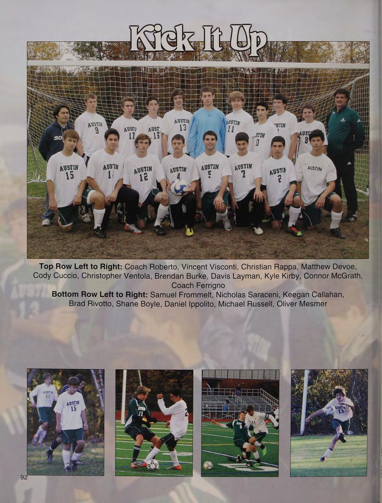 Top Row Left to Right: Coach Smyth, Philip Cappello, Shane Hurley, Scott Corcoran, Anthony Bruce, Domenic DiRupo, Derek Mikula, Patrick Alviti, Steven Jepeal, Cody Cuccio
