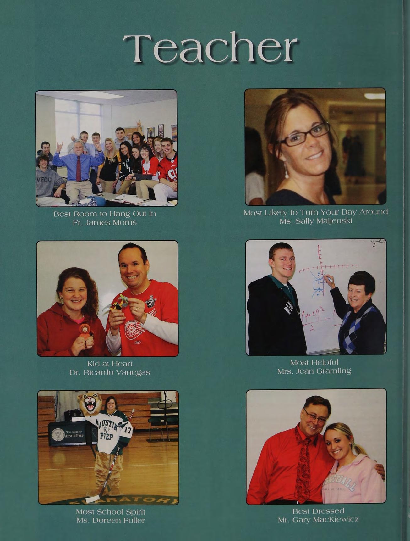 As Salutatorian for Austin Prep's graduating class of 1999, you have a unique perspective understanding us. Whether we have been lucky enough to have you for sophomore Modern World History Il, or as seniors for American Government, we all know and appreciate you. For your service as co-moderator of the Academic Decathlon and Academic World Quest teams, we thank you. Your energy and enthusiasm never waiver; throughout our educational journey, you stand out among the most caring and dedicated teachers at Austin Prep.