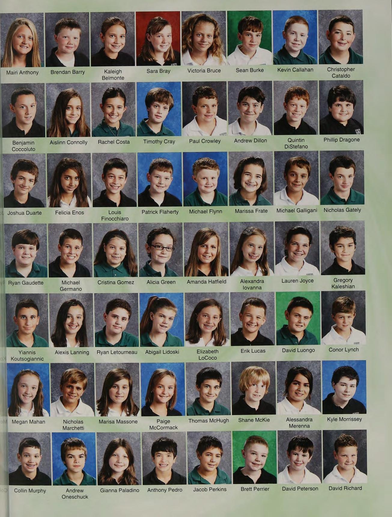 Middle Row Left to Right: Brian Callahan, Nicholas Luise, Matthew Morgan, Vincent Visconti, Samuel Morgan, Christian Rappa, Brett Mazza, John Donahoe