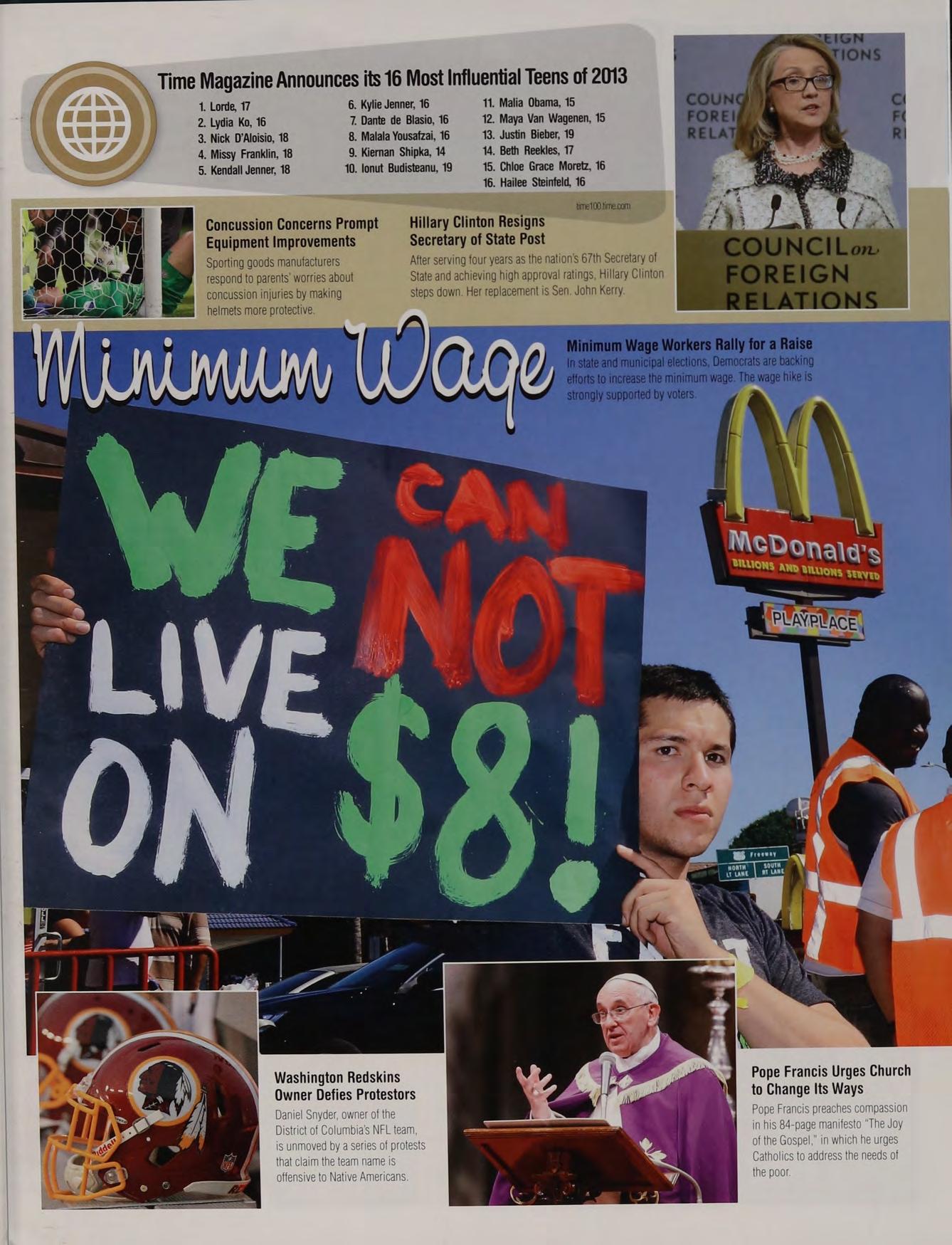 Sporting goods manufacturers After serving four years as the nation’s 67th Secretary of respond to parents’ worries about State and achieving high approval ratings, Hillary Clinton concussion injuries by making steps down. Her replacement is Sen. John Kerry
