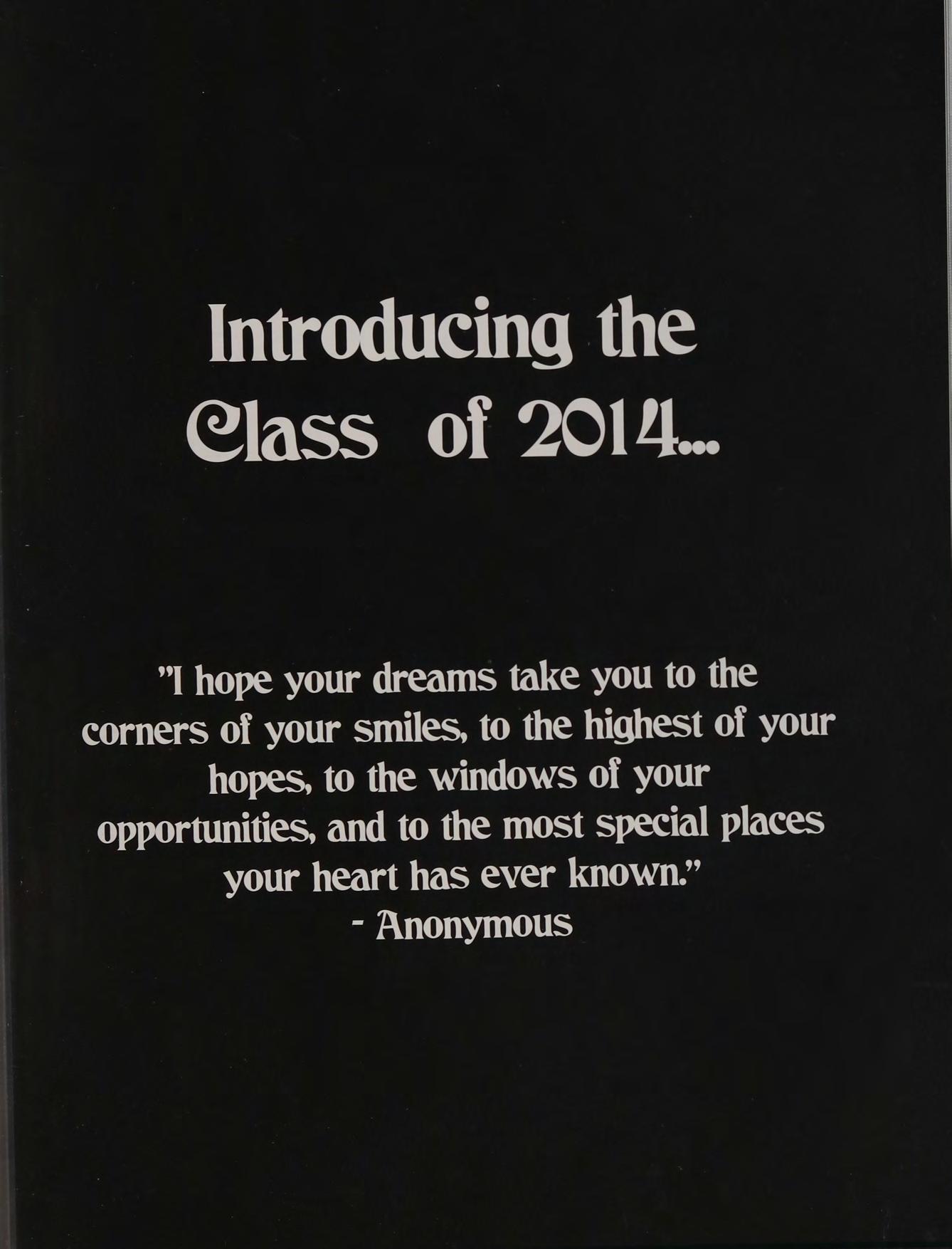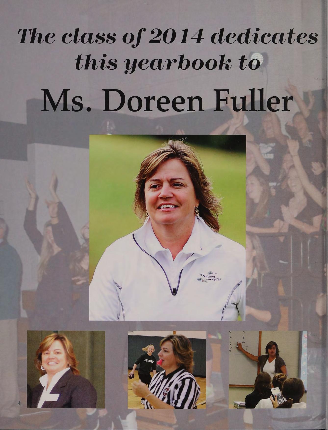 The class of 2014 dedicates. this yearbook to Ms. Doreen Fuller