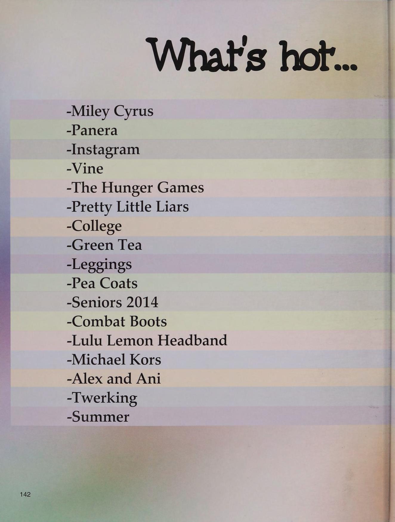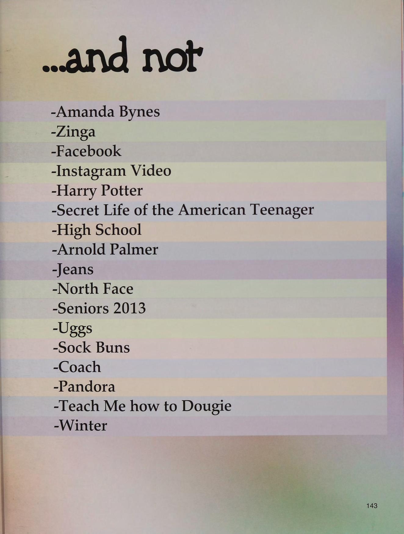 Super 8, blacklight, homecoming, lunch table, football games, being the new kid, F block circle golf soccer, the boys BL NM PS CK DD TC MR RM BC DO ND KS MD EH DM JL