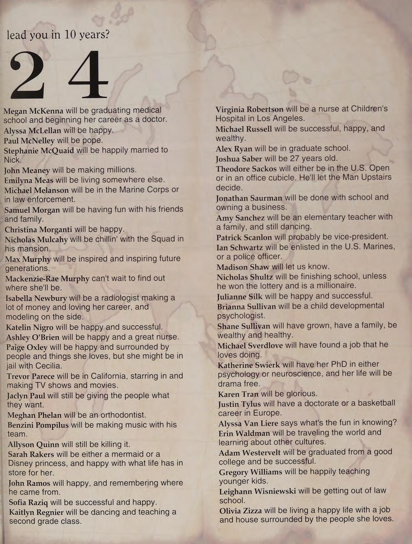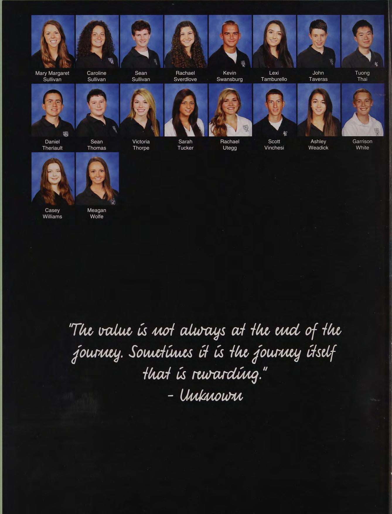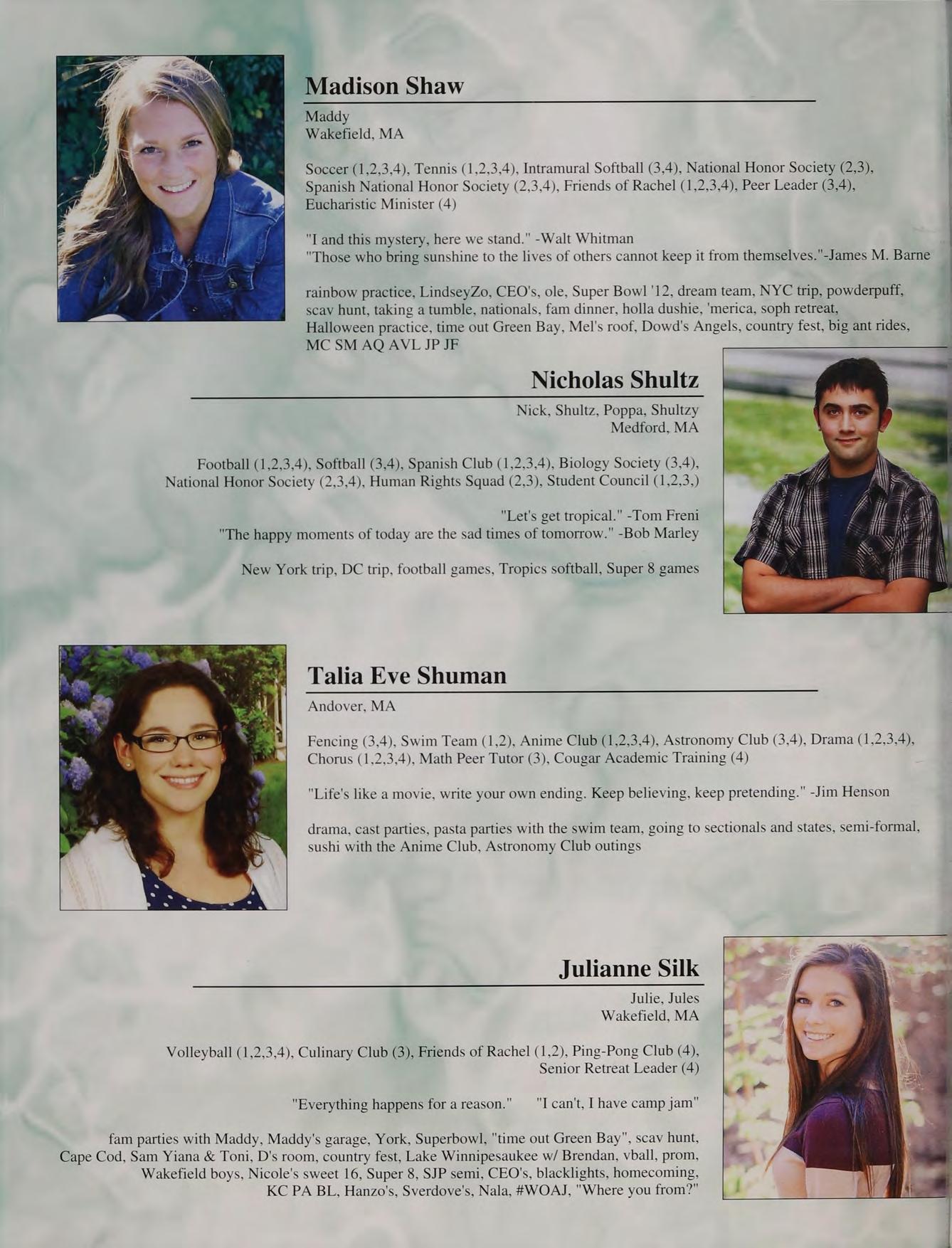 "Once you say you're going to settle for second, that's what happens to you in life." -JFK "Time you enjoy wasting was not wasted." -John Lennon trip to New York, Sverdlove's, scavenger hunt, Super 8 games at the Garden, homecoming, skipping assemblies to hang out with Mr. Miller, Ms. P's sophomore English class