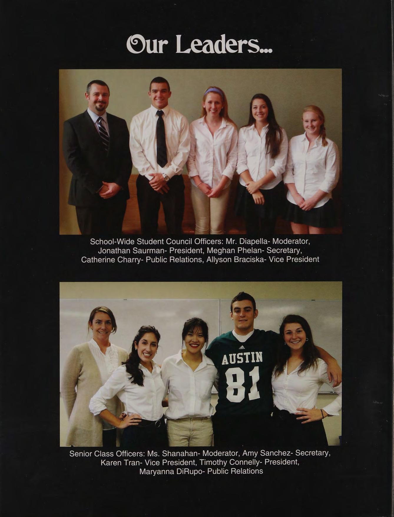 School-Wide Student Council Officers: Mr. Diapella- Moderator, Jonathan Saurman- President, Meghan Phelan- Secretary, Catherine Charry- Public Relations, Allyson Braciska- Vice President