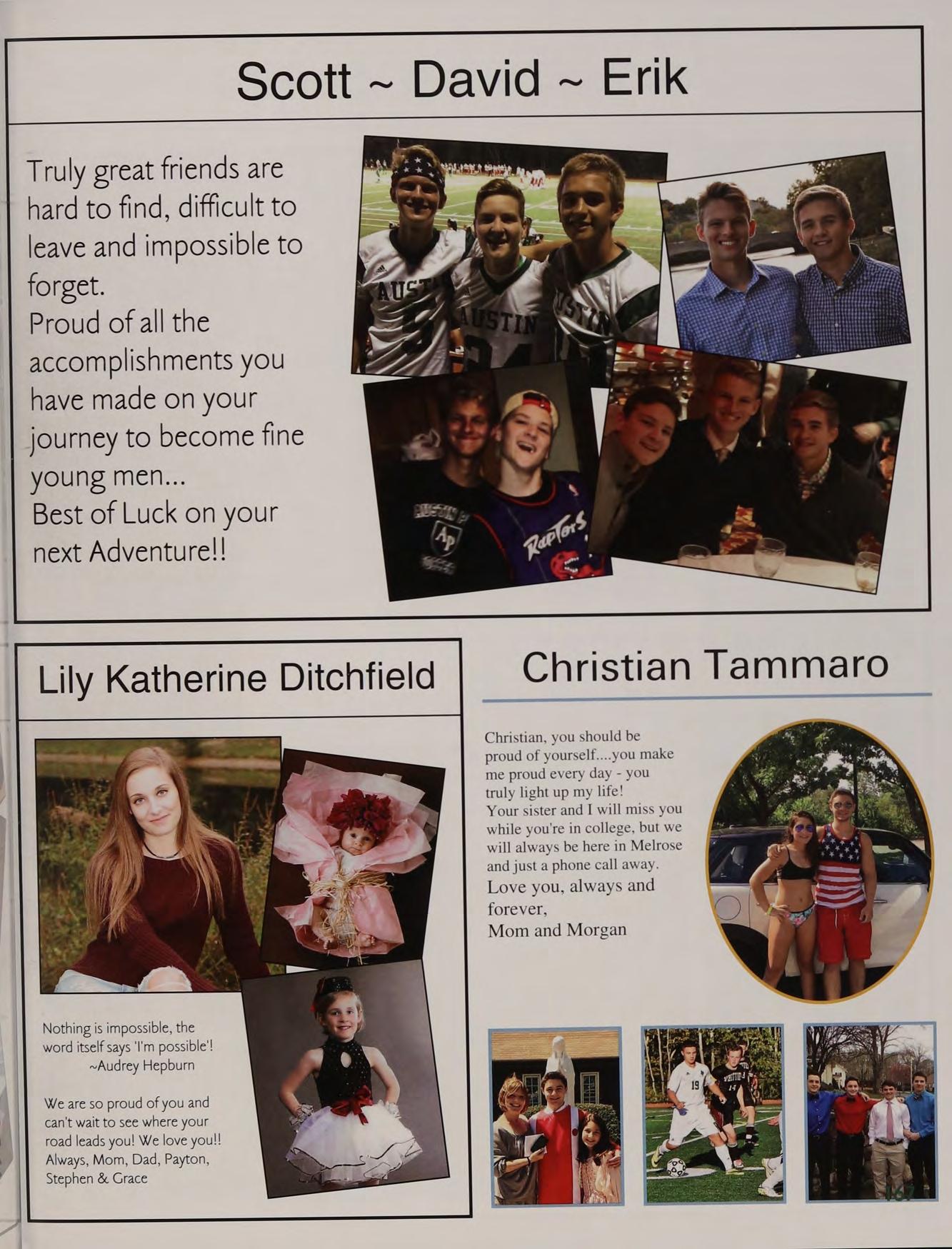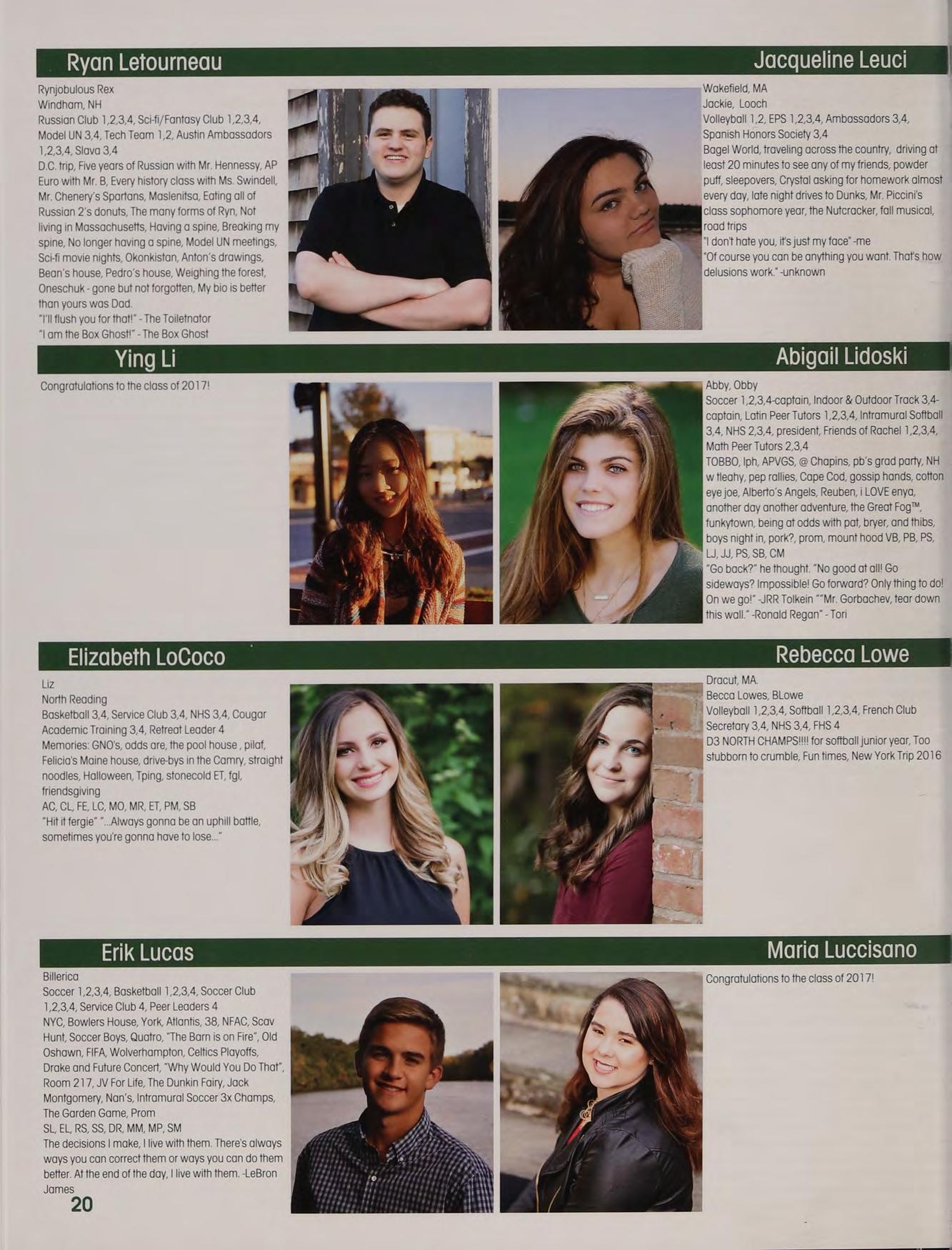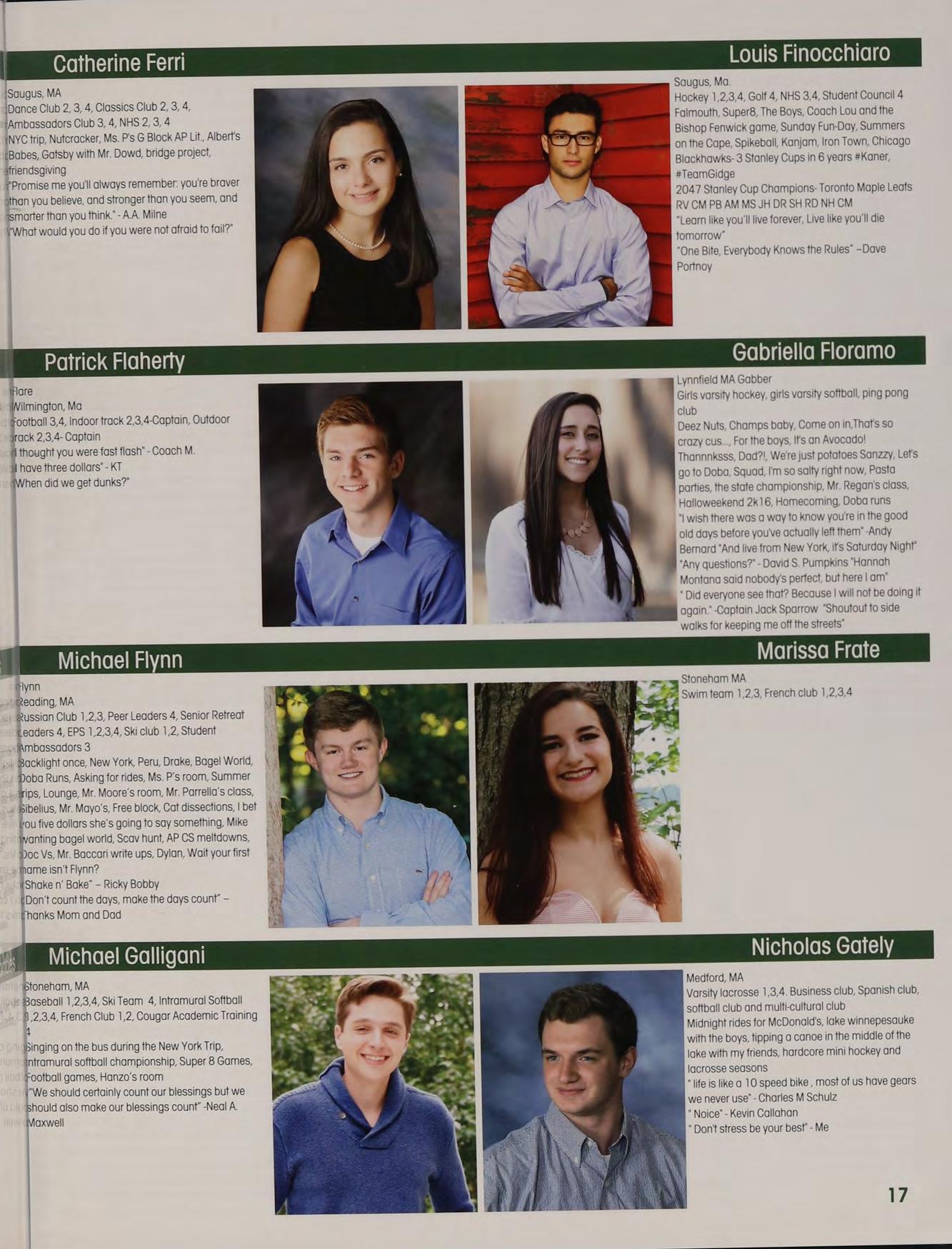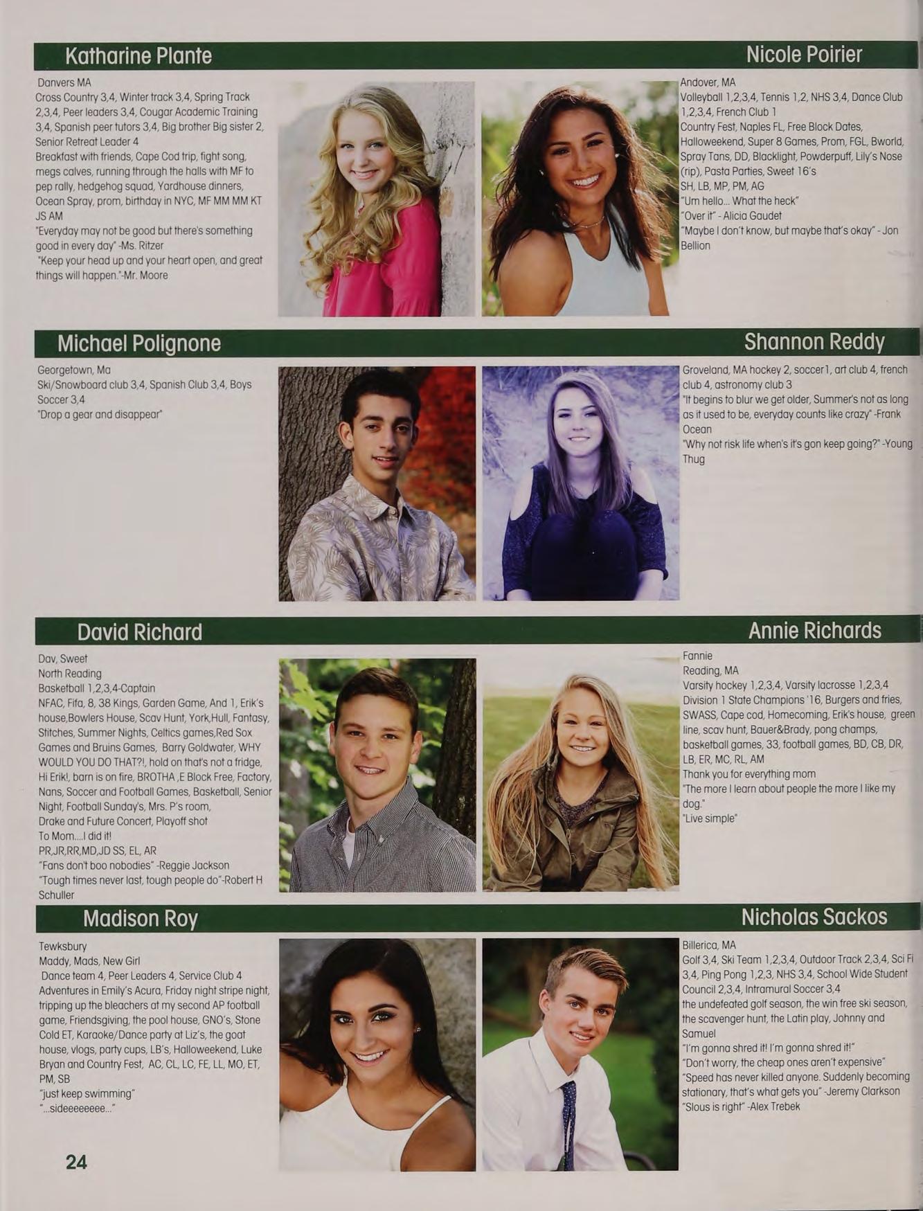 Soccer 1,2,3, Indoor Track 3,4m Lacrosse 2, 3,4 5B JJ PS LJ PS AL alpha, TCLs, Chance, cotton eyed ‘oe, Tobbo, pep rally, Great Fog, the Oz Debate jalentines, funkytown, market basket, "I'm a large’ gossip hands, JB KT PF New York trip, boys night in TOPS, capeen, Zootopia, basketball games, another day another adventure, pork?, jefe, Fab Five, tleahy's NH house, “aw thank youl”, family dinners, MFA shapins, SLTP, Norris is a secret genius, ‘theyre our Dreaking the ice at prom. Thank you to all of my boaches, teachers, and parents. Much love to you l:)
