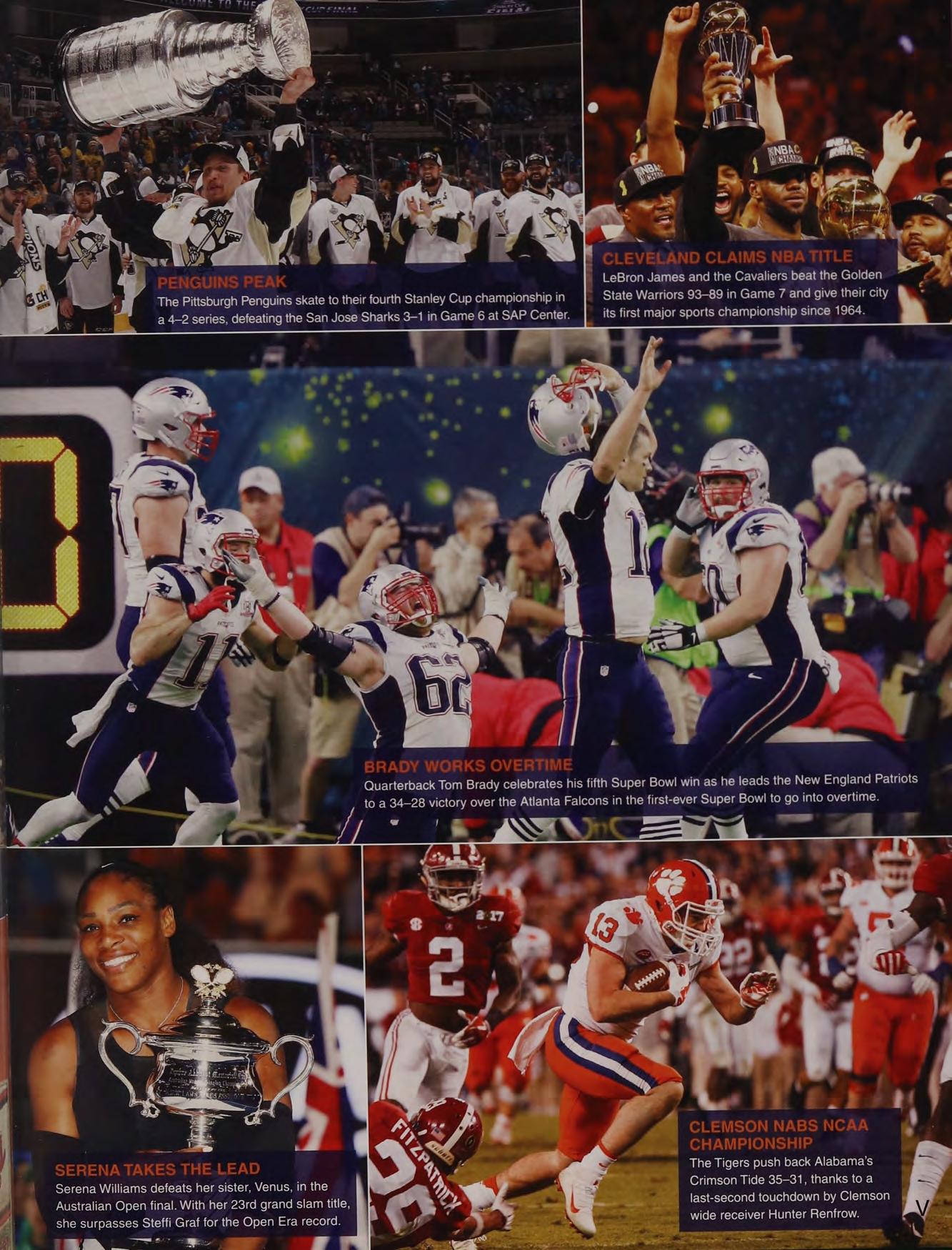 Quarterback Tom Brady celebrates his fifth Super Bowl win as he leads the New England Patriots to a 34-28 7 over the Atlanta Falcons in the first-ever — Bowl to a into overtime.